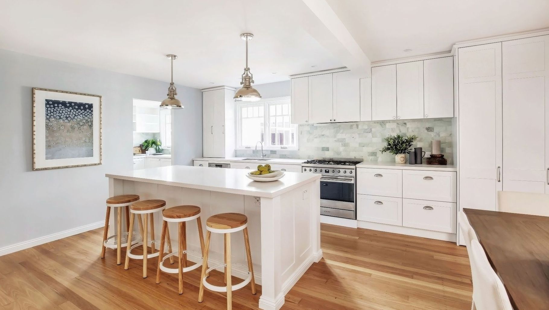 ArchiPro Project Summary - A beautifully designed Hampton style kitchen renovation in Collaroy Plateau, featuring elegant shaker doors, marble-inspired benchtops, and seamless indoor-outdoor connectivity for a relaxed family lifestyle.