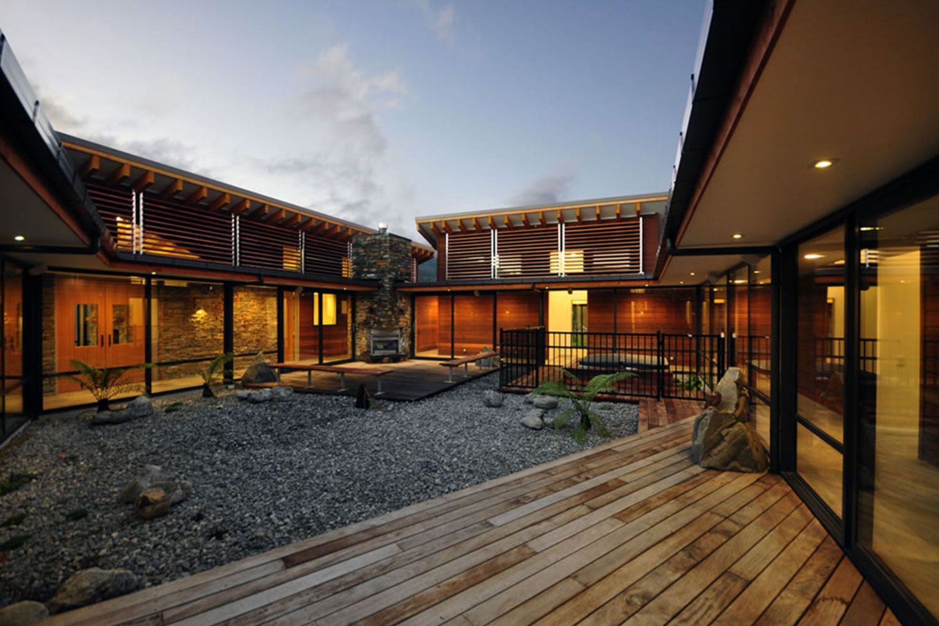 ArchiPro Project Summary - Innovative nine-bedroom health care facility in Hanmer Springs, designed to blend with the historic alpine environment using timber, glass, stone, and steel, featuring interactive gardens, therapeutic pools, and a focus on privacy and natural light.
