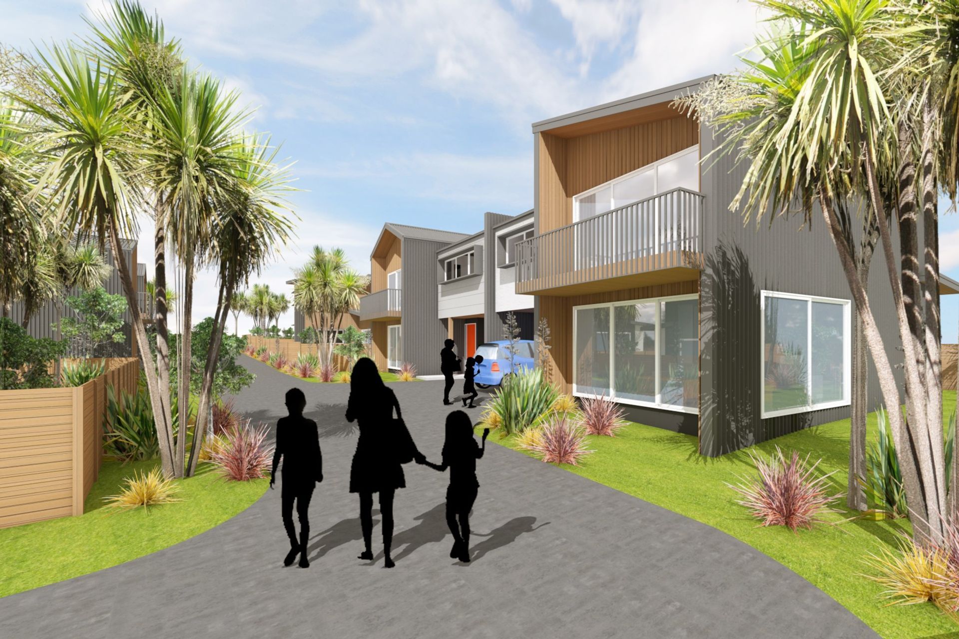 ArchiPro Project Summary - Victoria Terraces offers modern townhouses featuring open plan living, private outdoor spaces, and flexible layouts, designed to foster community and provide high-quality, affordable living solutions in Pukekohe Central.