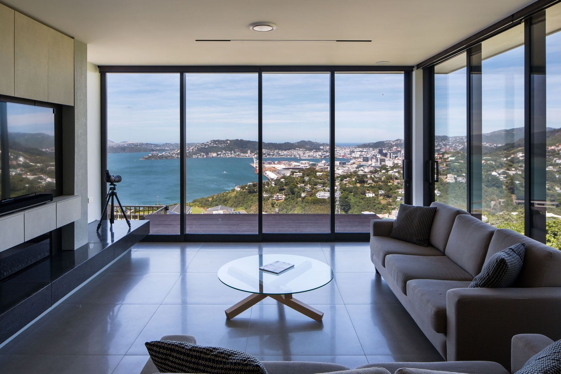 ArchiPro Project Summary - Contemporary twin houses designed for optimal views and privacy, featuring a robust glass, concrete, and cedar structure that fosters a harmonious living environment for neighbors in Wellington's Northern Hills.