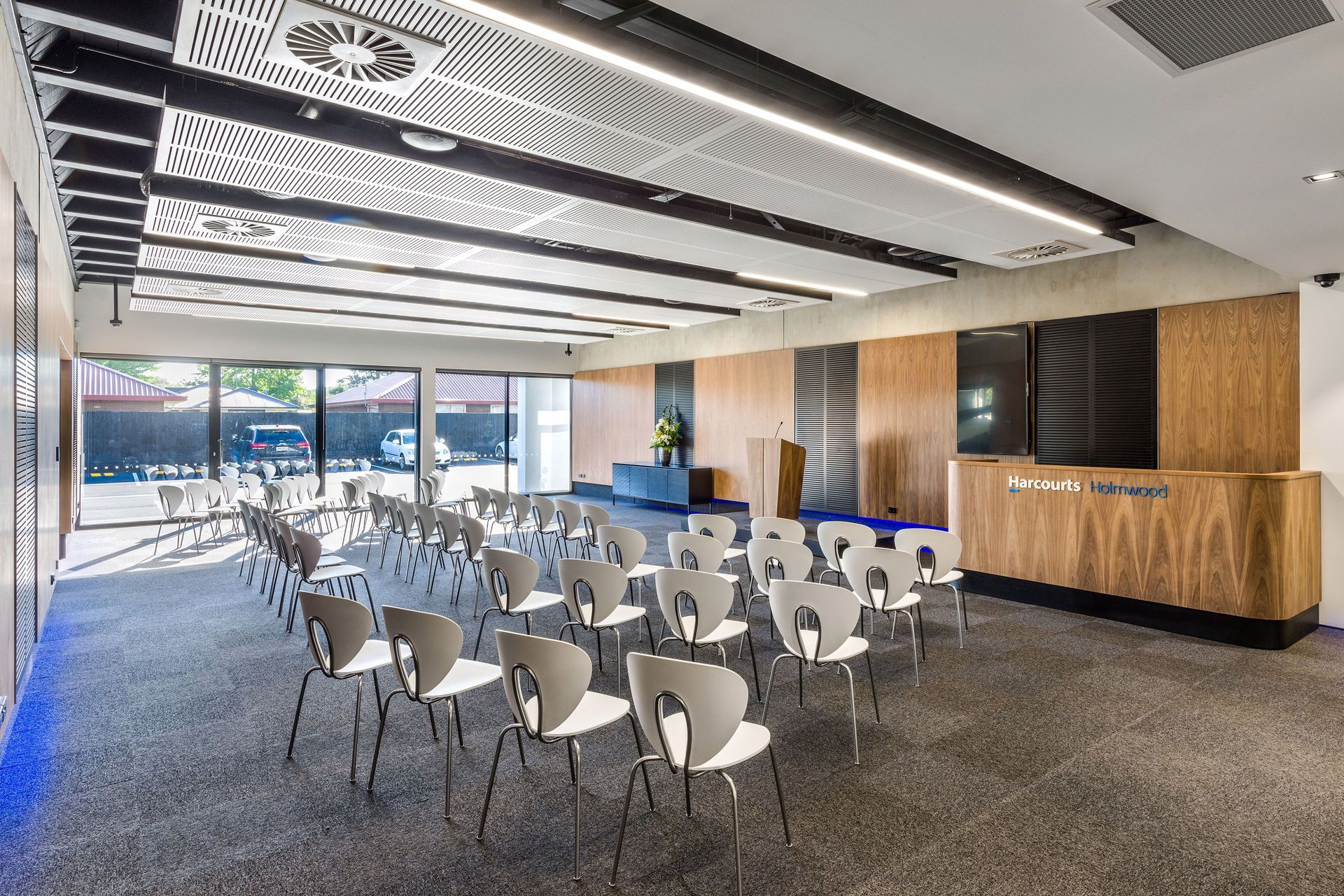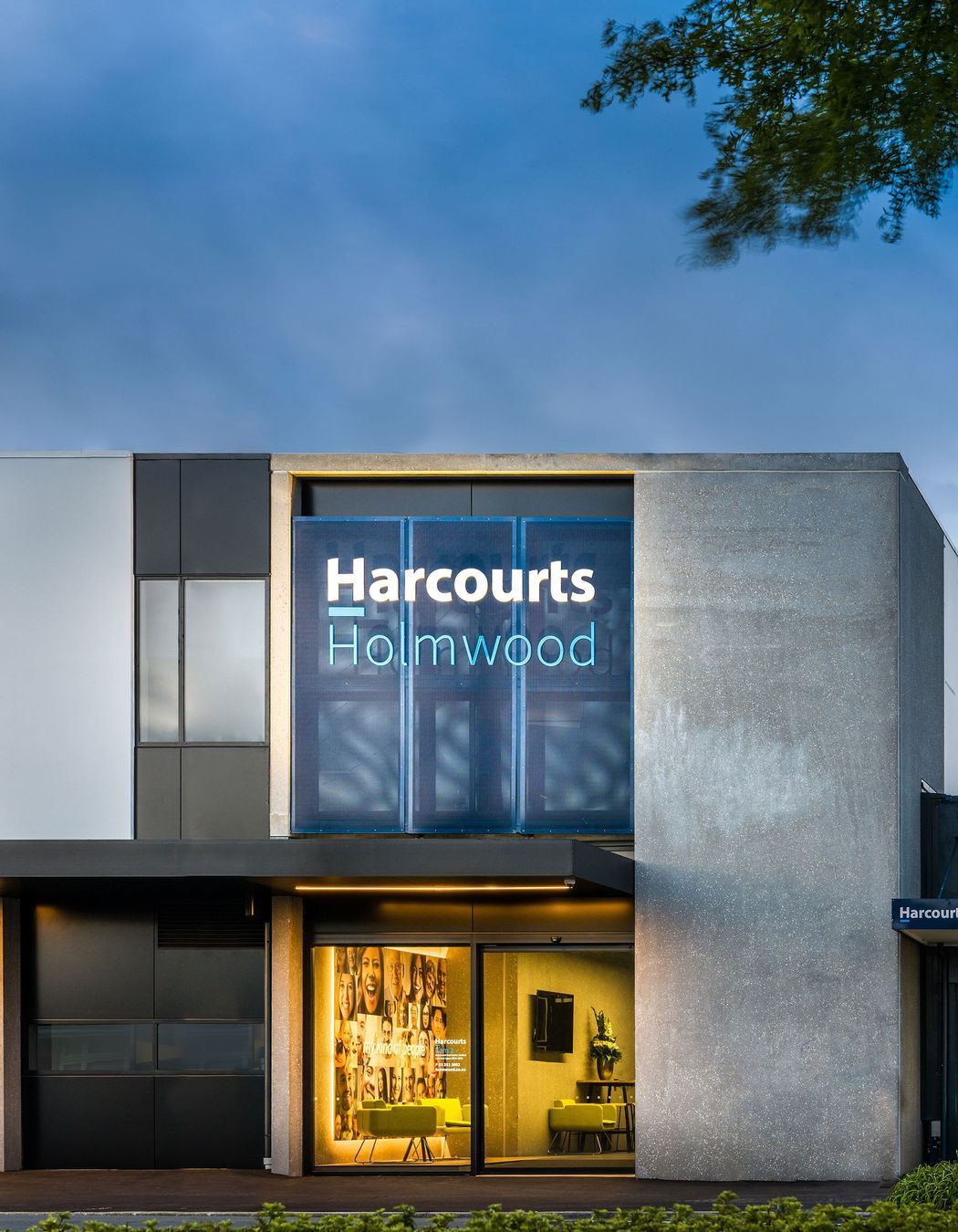 ArchiPro Project Summary - A professional and formal enhancement to Harcourts Holmwood's street presence through innovative commercial premises design.