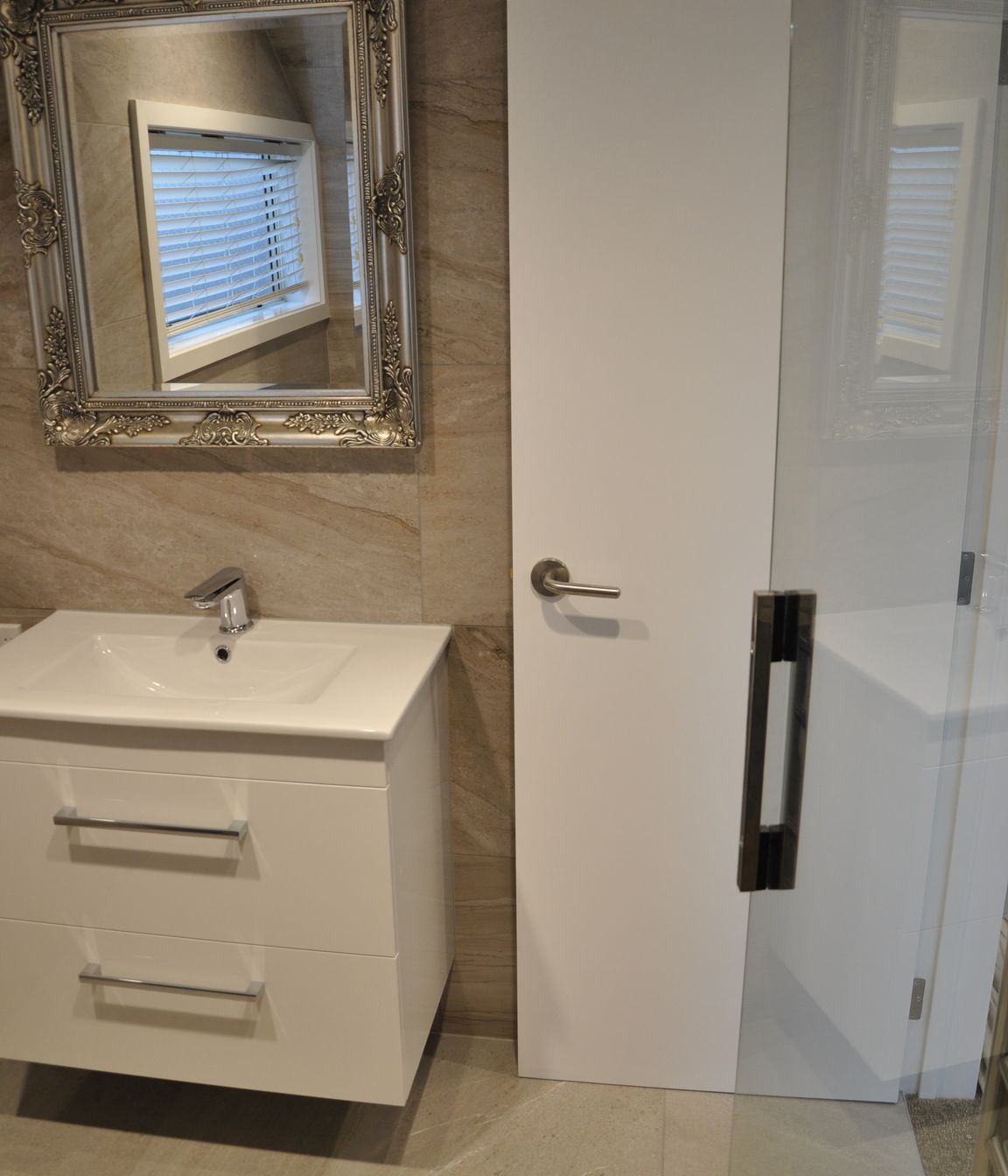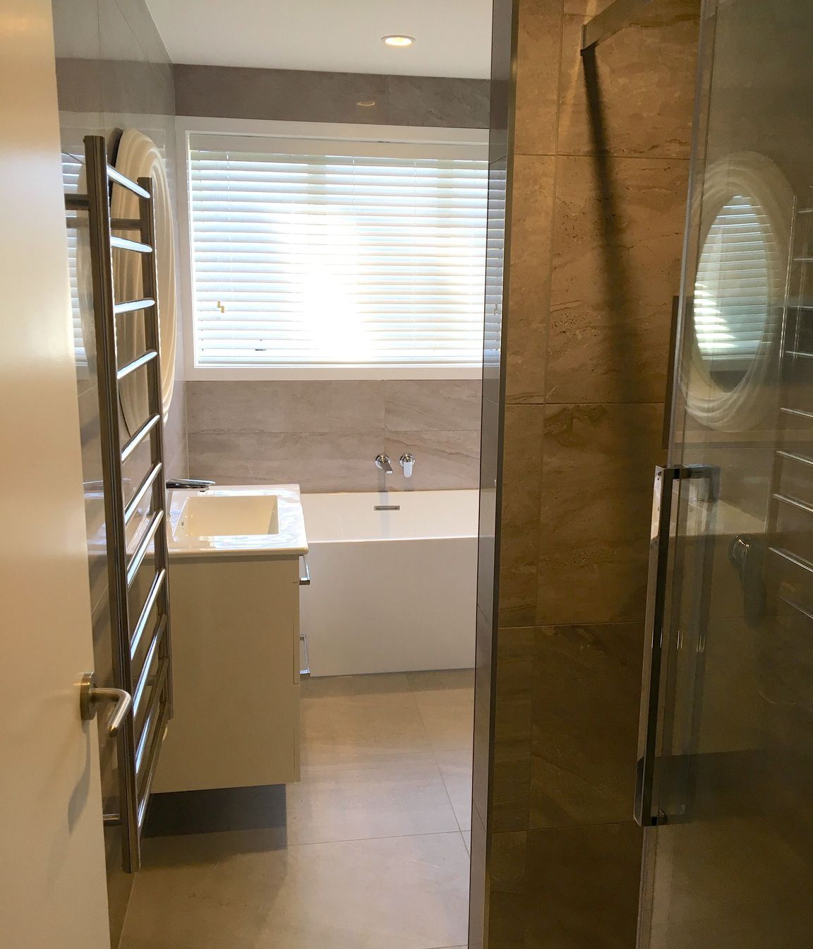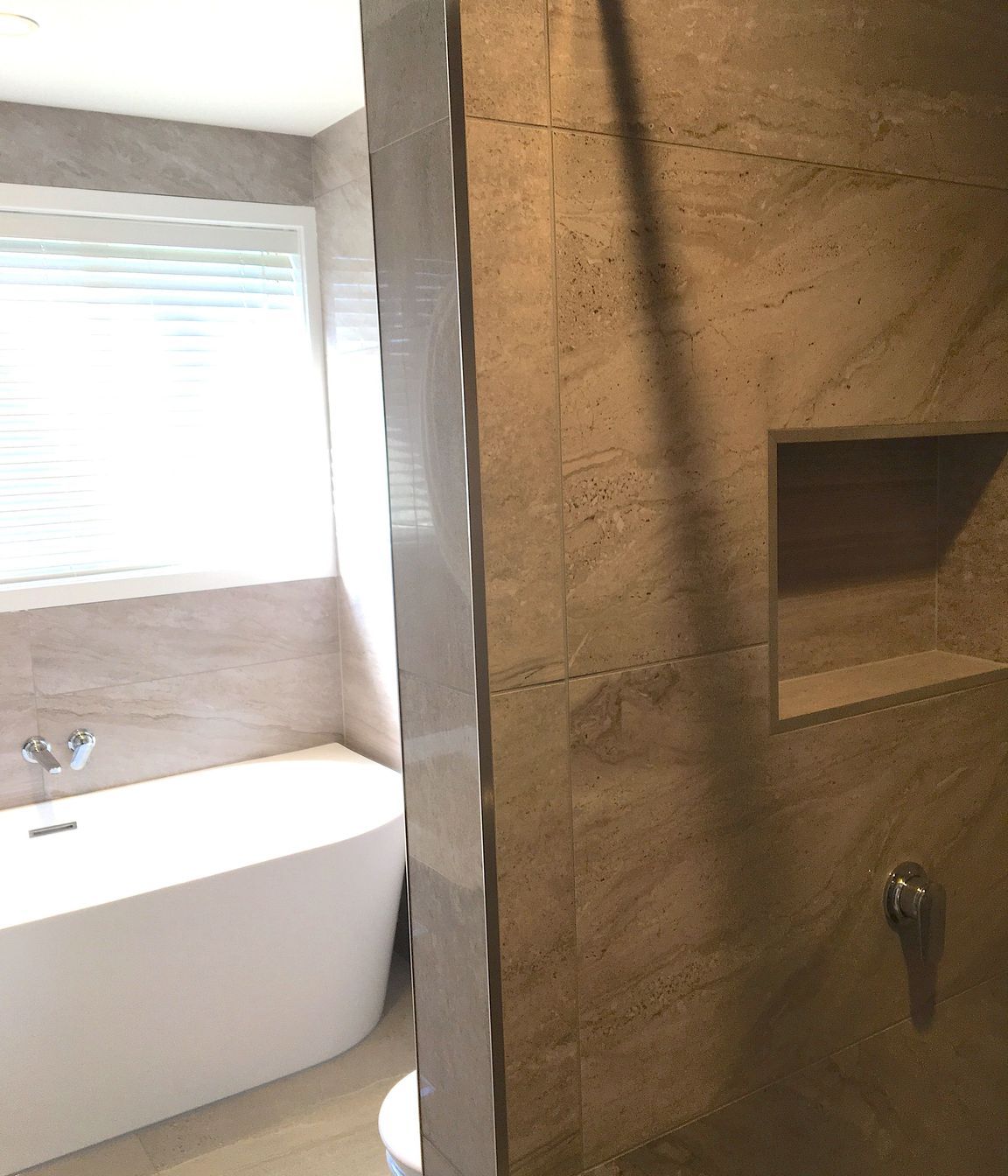 ArchiPro Project Summary - High-end renovation of a leaky ensuite and master bathroom, featuring a complete layout redesign and stylish updates including a new shower enclosure and custom cavity shelf.