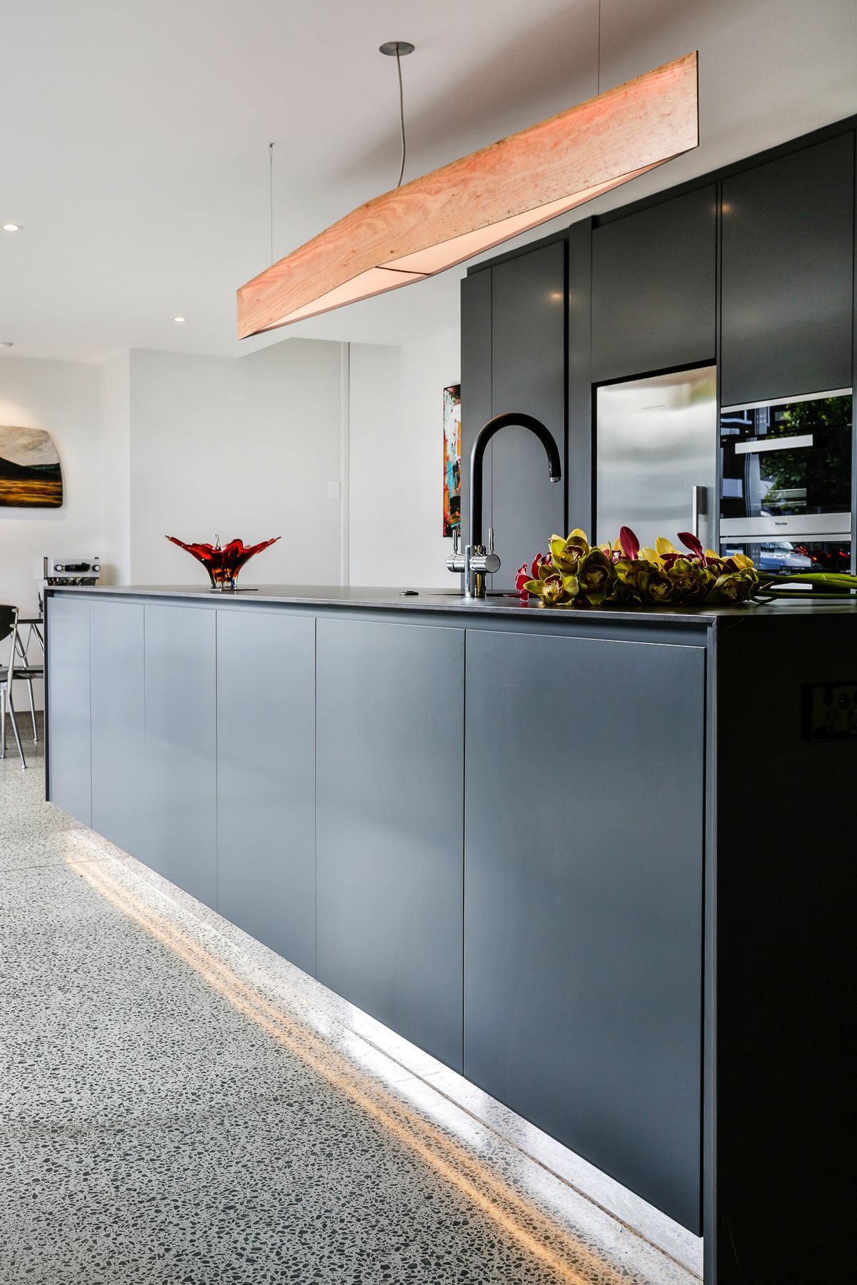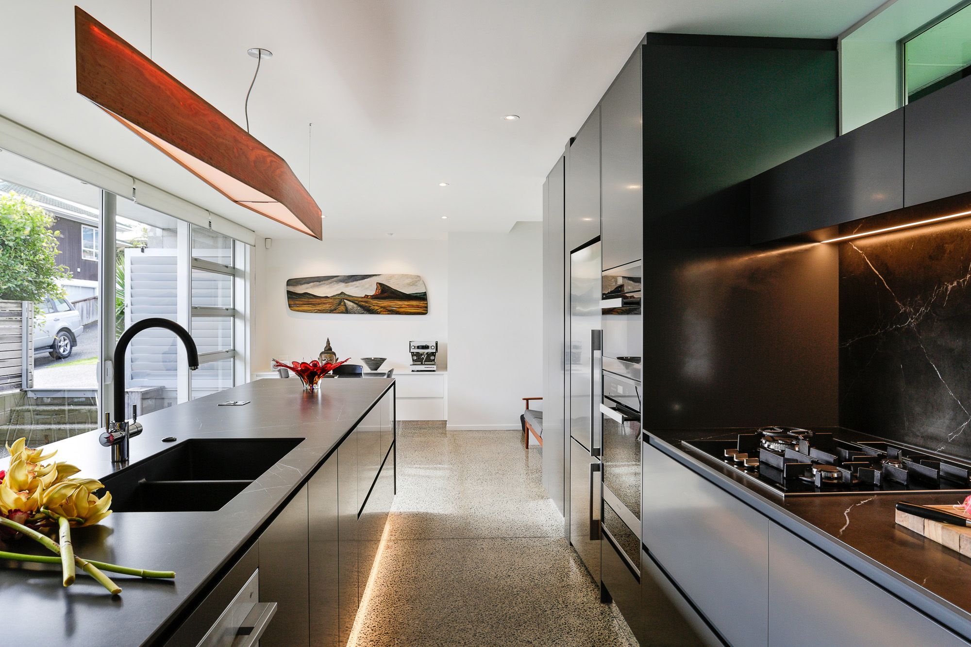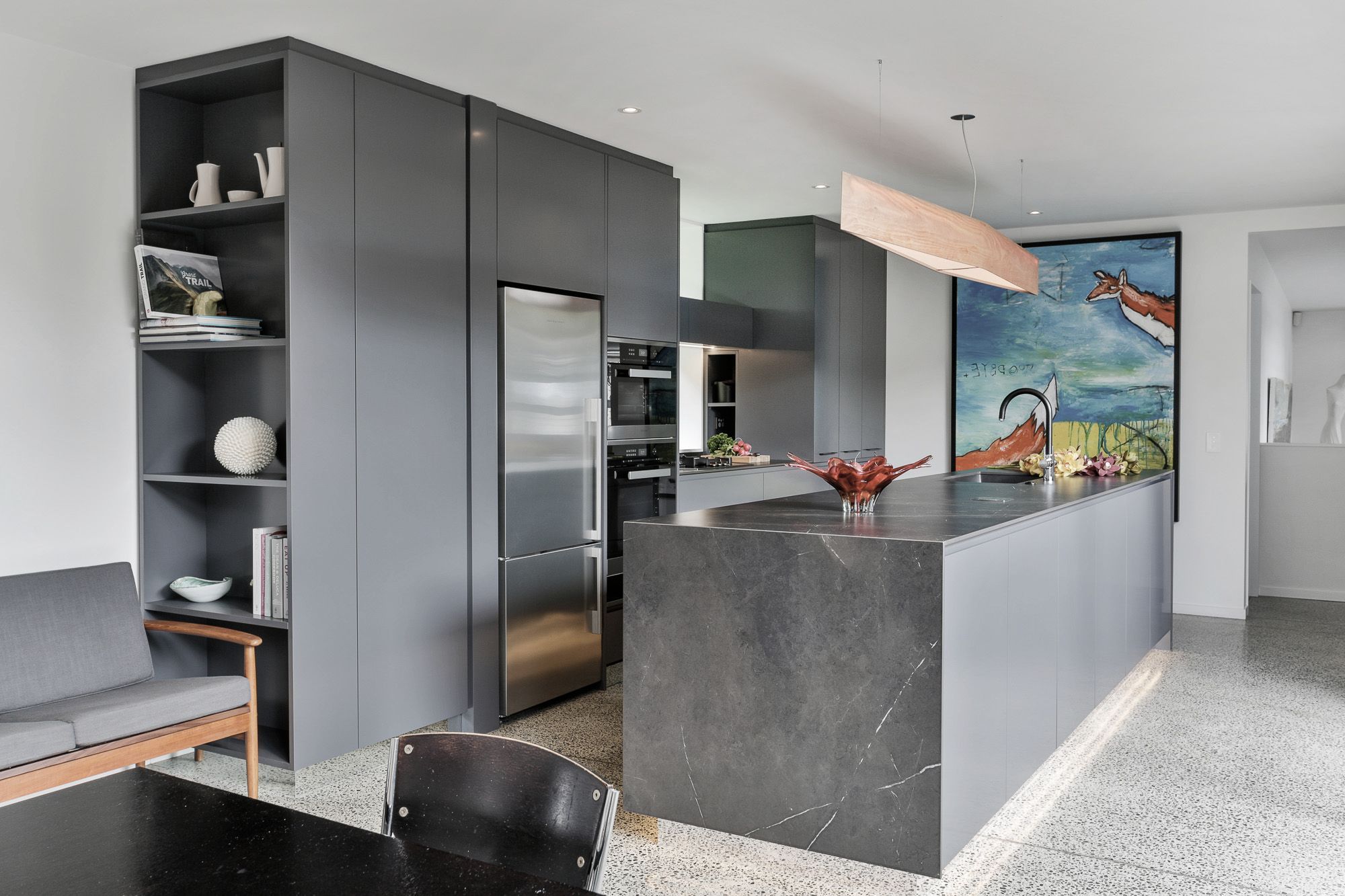 ArchiPro Project Summary - A harmonious blend of aesthetics and functionality in the Hauraki Corner Kitchen, featuring a streamlined island, enhanced storage solutions, and innovative appliances designed by Marianne Gailer for modern family living.