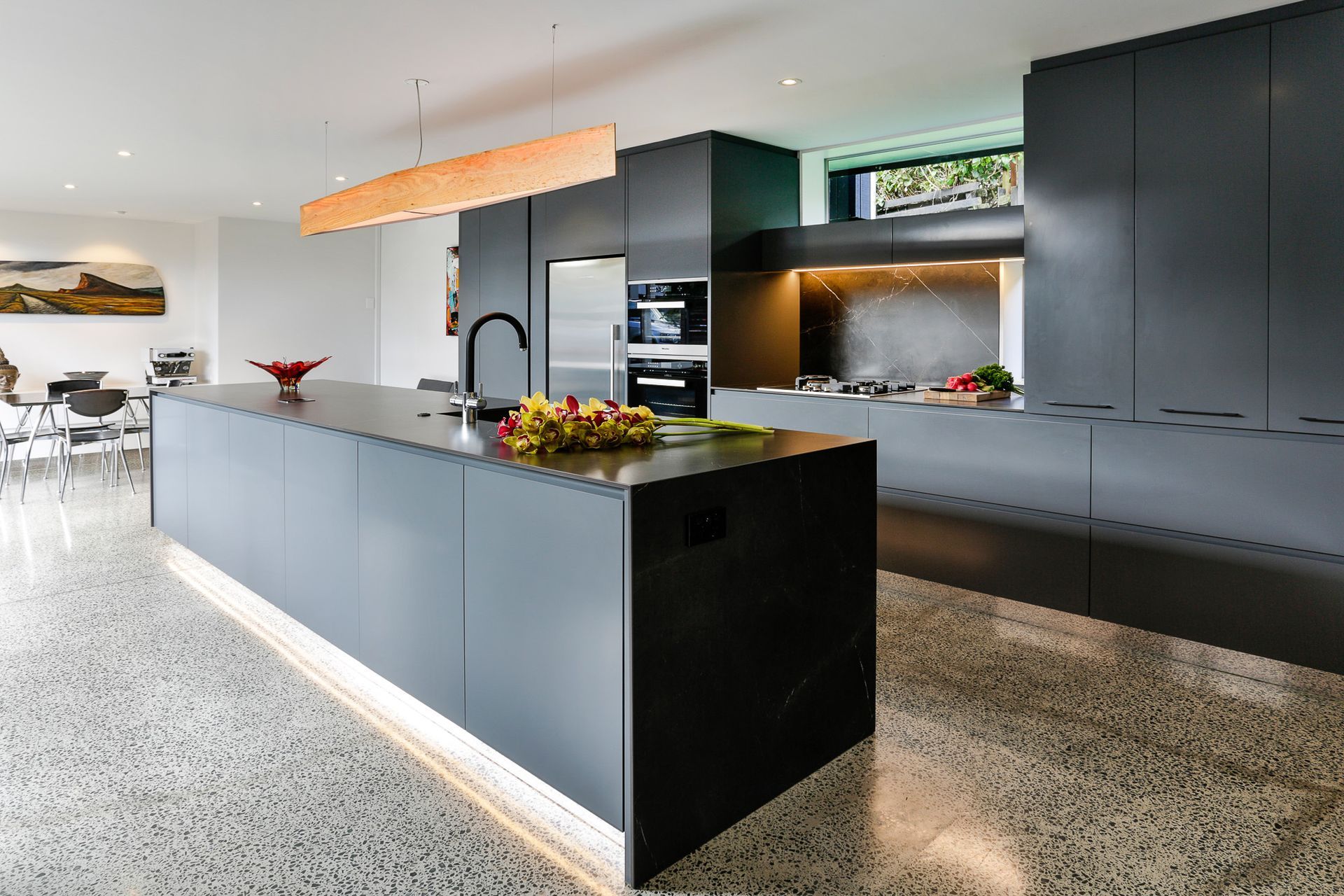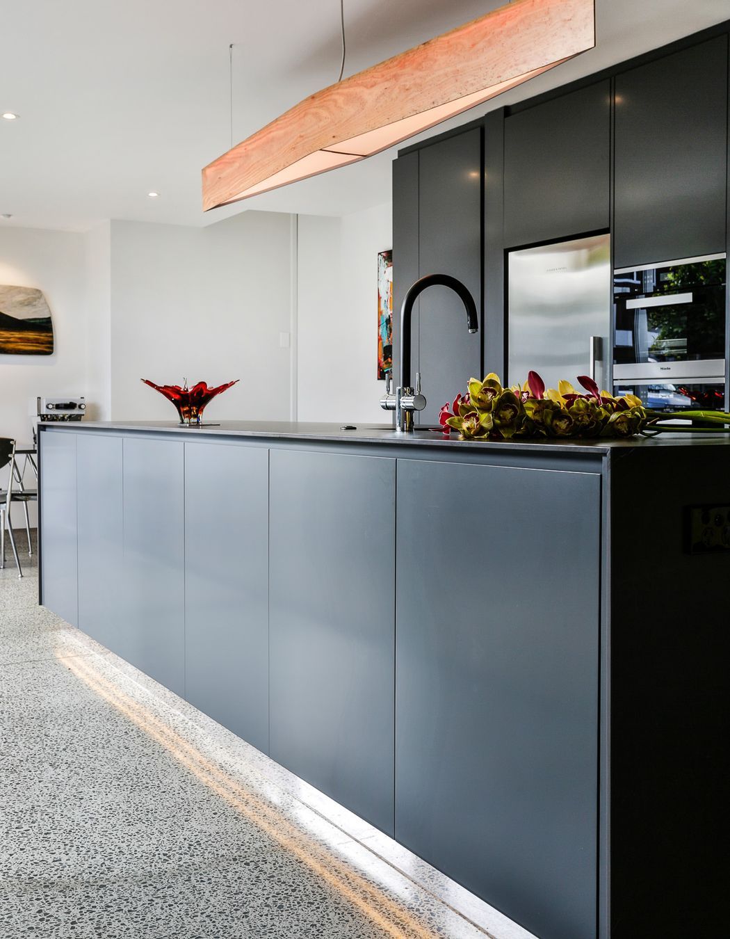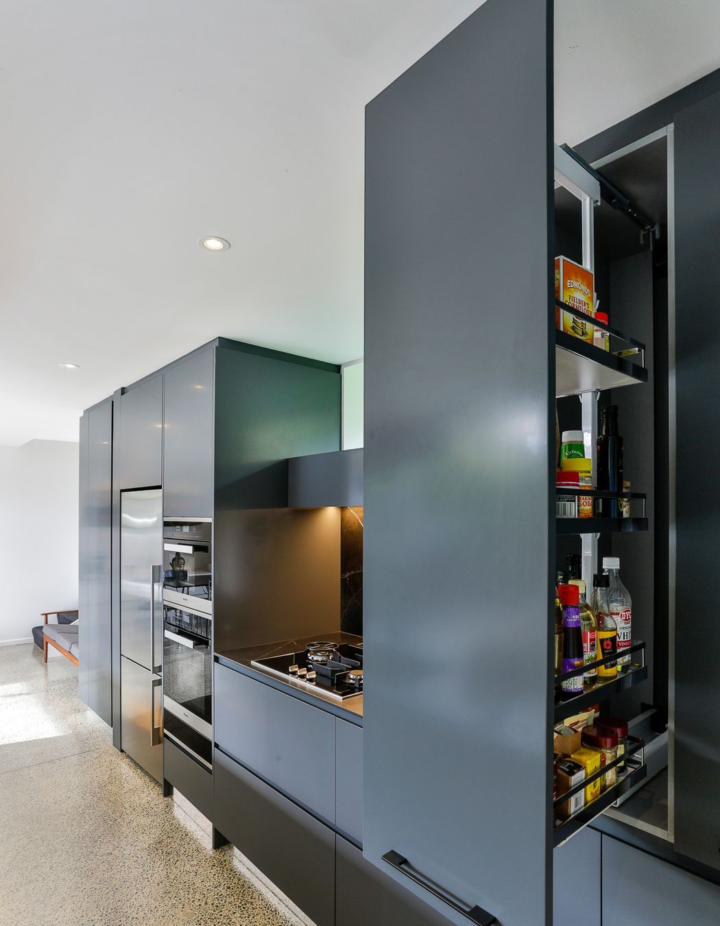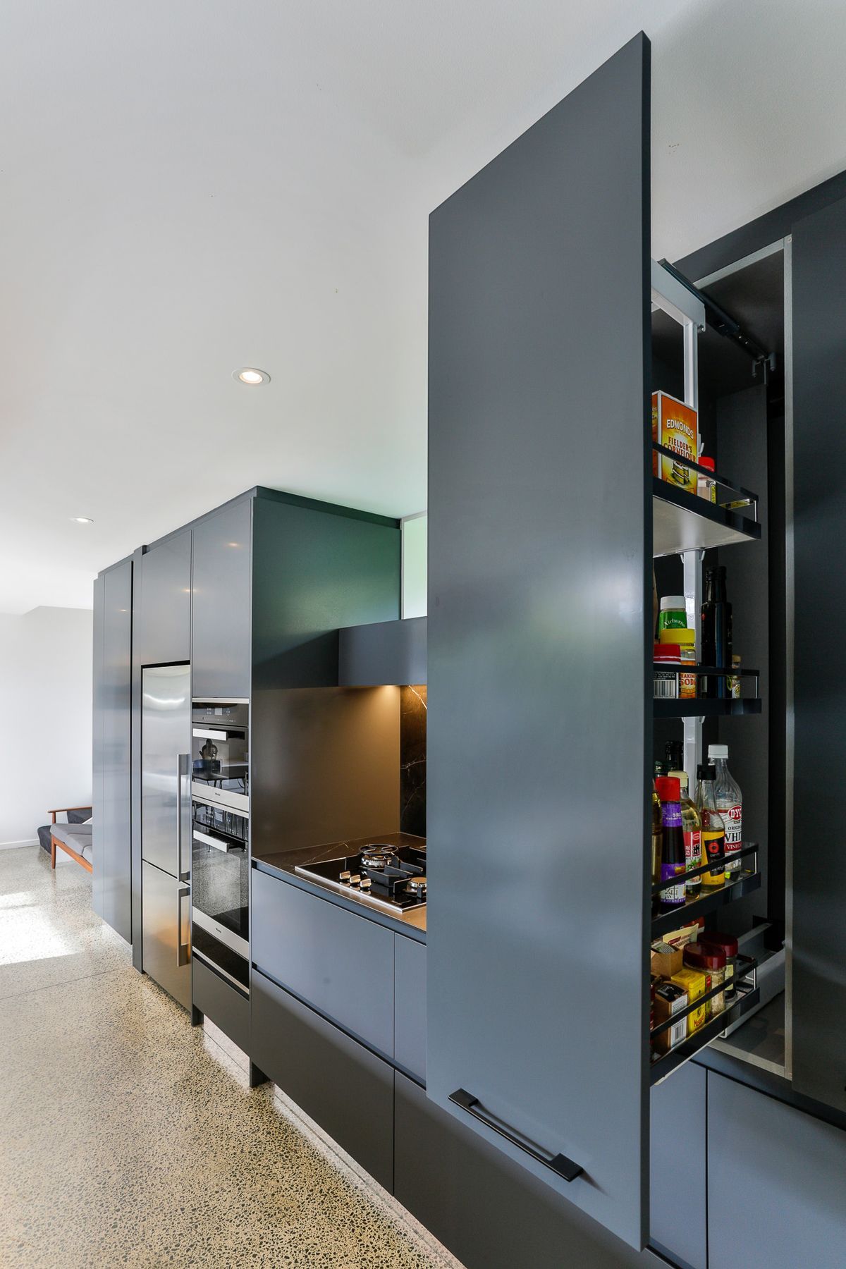 ArchiPro Project Summary - A harmonious blend of aesthetics and functionality in the Hauraki Corner Kitchen, featuring a streamlined island, enhanced storage solutions, and innovative appliances designed by Marianne Gailer for modern family living.