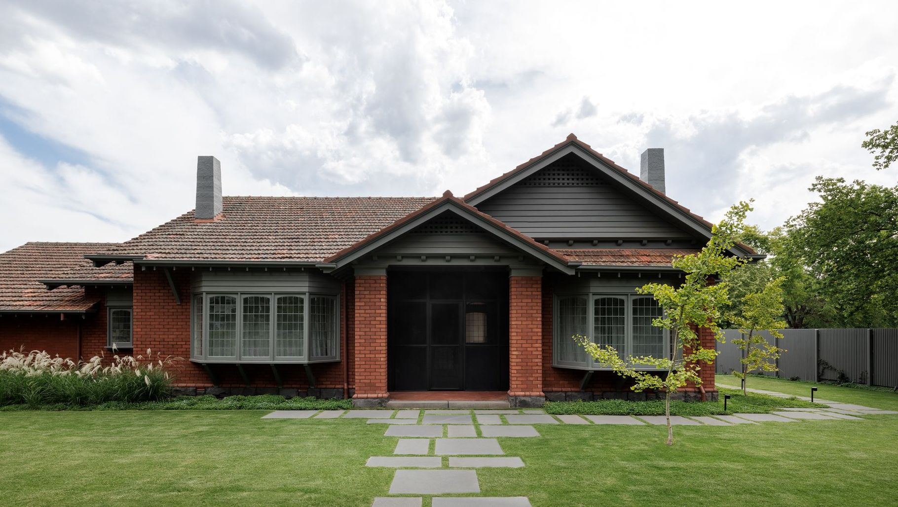 ArchiPro Project Summary - The Hawthorn project showcases modern residential architecture with a striking facade and large windows, surrounded by lush grass in a welcoming area.