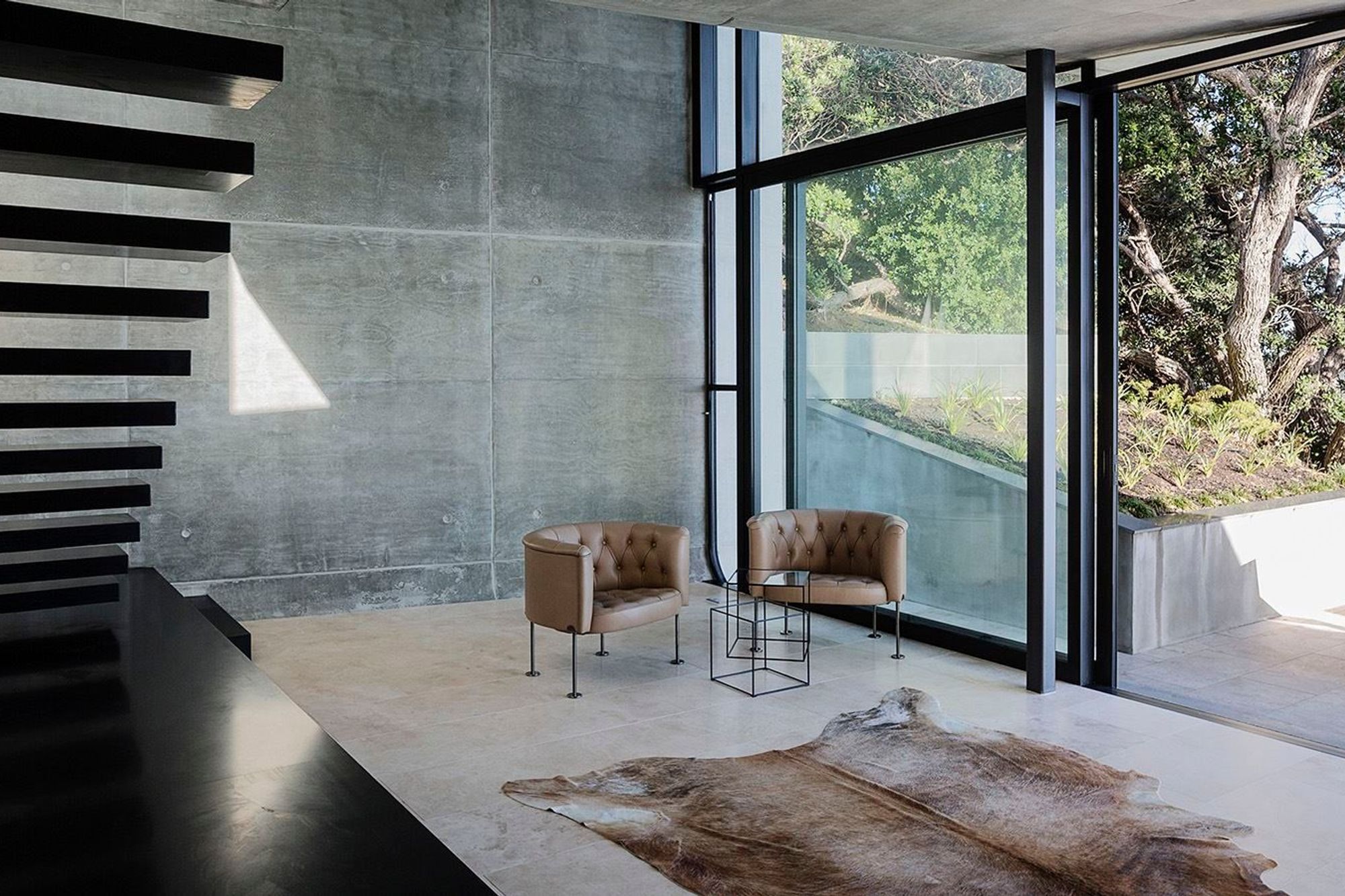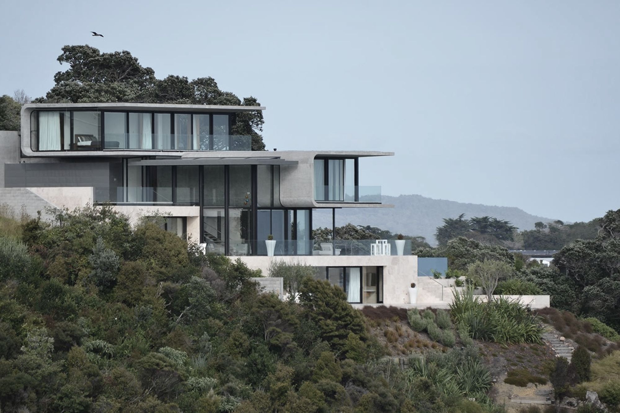 ArchiPro Project Summary - A meticulously crafted residence on Waiheke Island, harmonizing concrete and natural materials to enhance occupant experience, featuring sculptural forms and seamless indoor-outdoor living across a stunning coastal landscape.