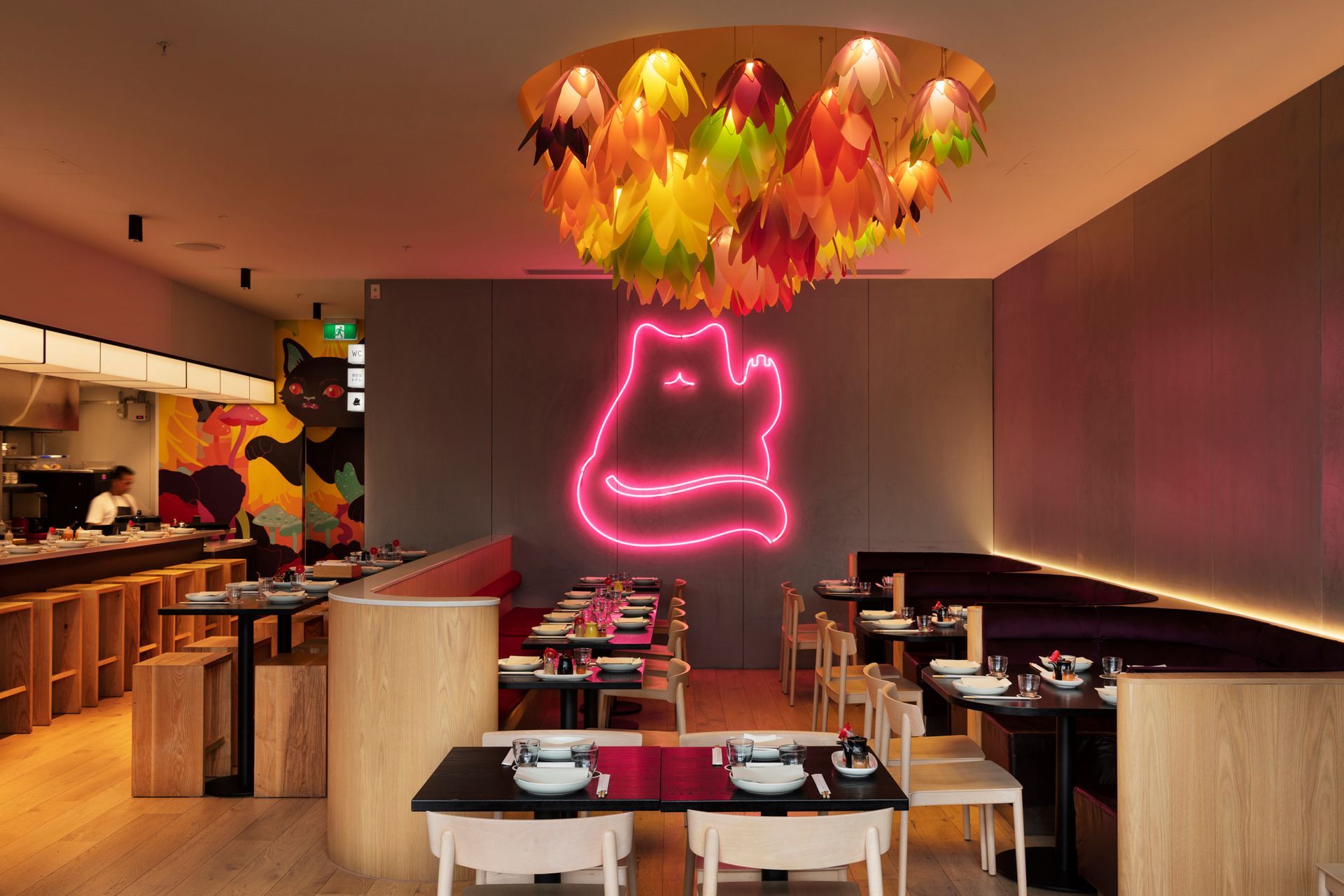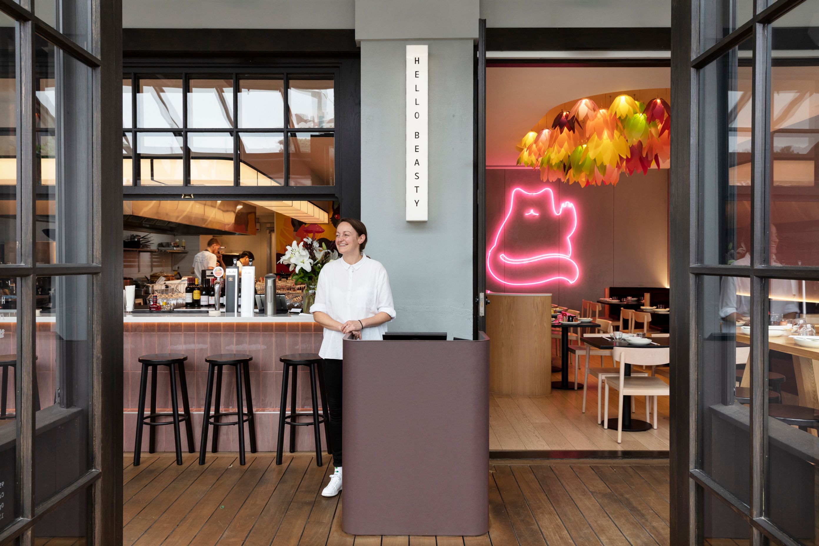 ArchiPro Project Summary - Hello Beasty is a vibrant modern eatery located in Auckland's Viaduct, featuring Korean and Japanese culinary influences served from an interactive open kitchen. The interior design is unexpected, cheeky, joyful, and authentic, creating a unique dining experience.