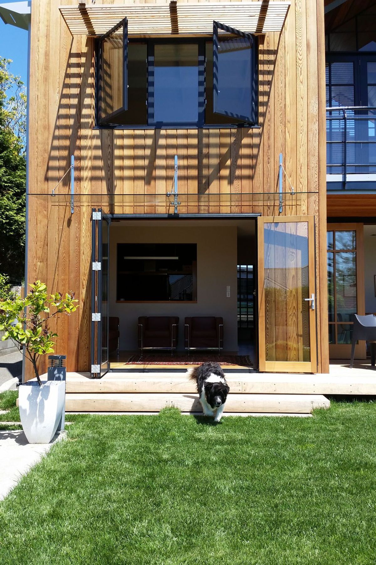 ArchiPro Project Summary - The Henderson House showcases modern residential architecture with a striking facade, elegant siding, and large windows, set in a serene residential area.