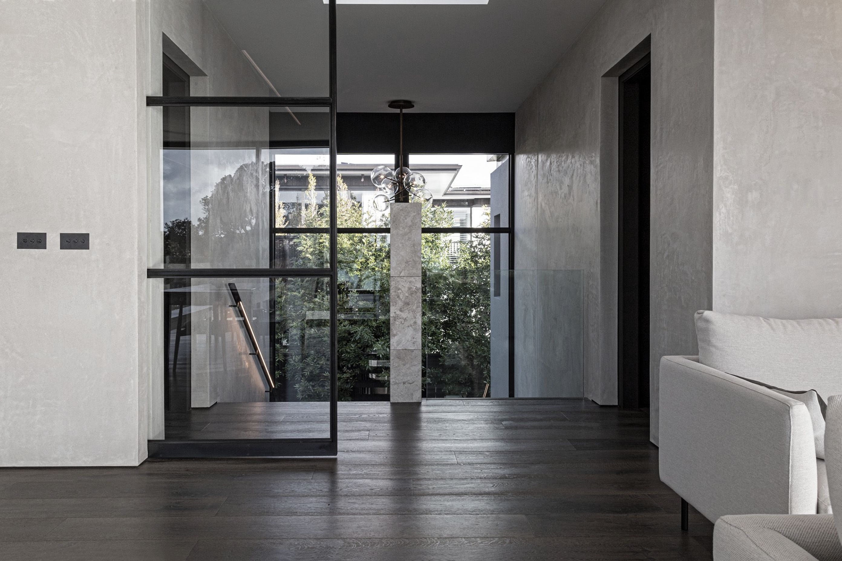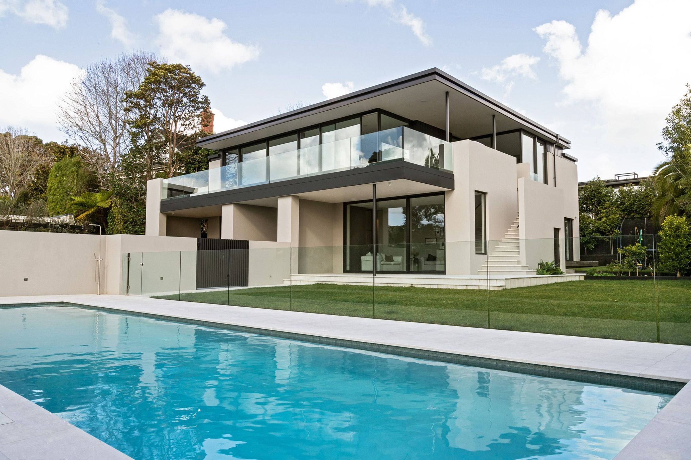 ArchiPro Project Summary - A contemporary home designed to seamlessly blend internal and external spaces, featuring interconnected masonry pods and a living pavilion that offers stunning harbour views.
