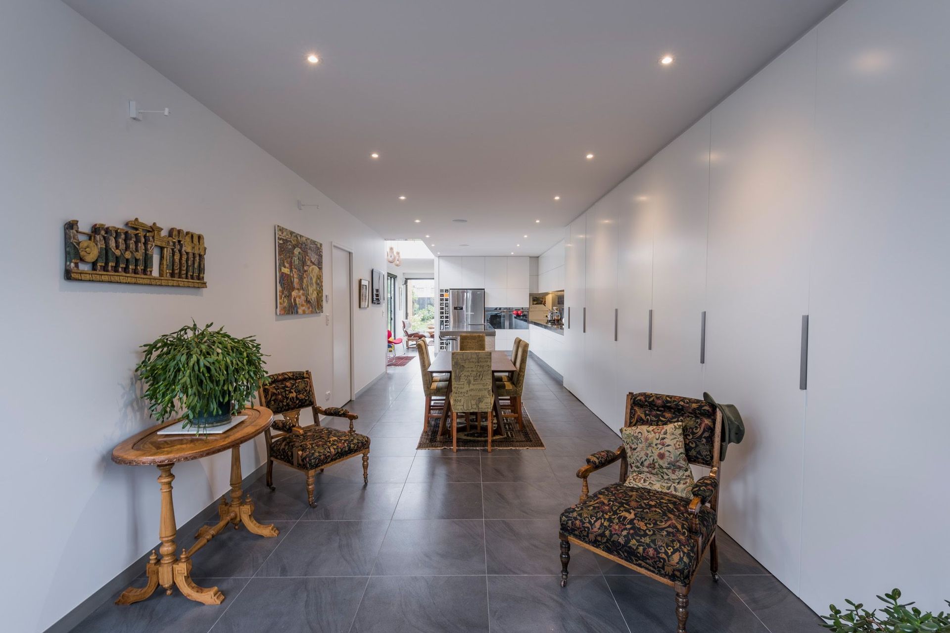 ArchiPro Project Summary - A thoughtfully designed two-story residence that harmonizes with its narrow site and established gardens, featuring a dynamic interplay of open spaces and light wells to enhance the connection between public and private areas for a vibrant family living experience.