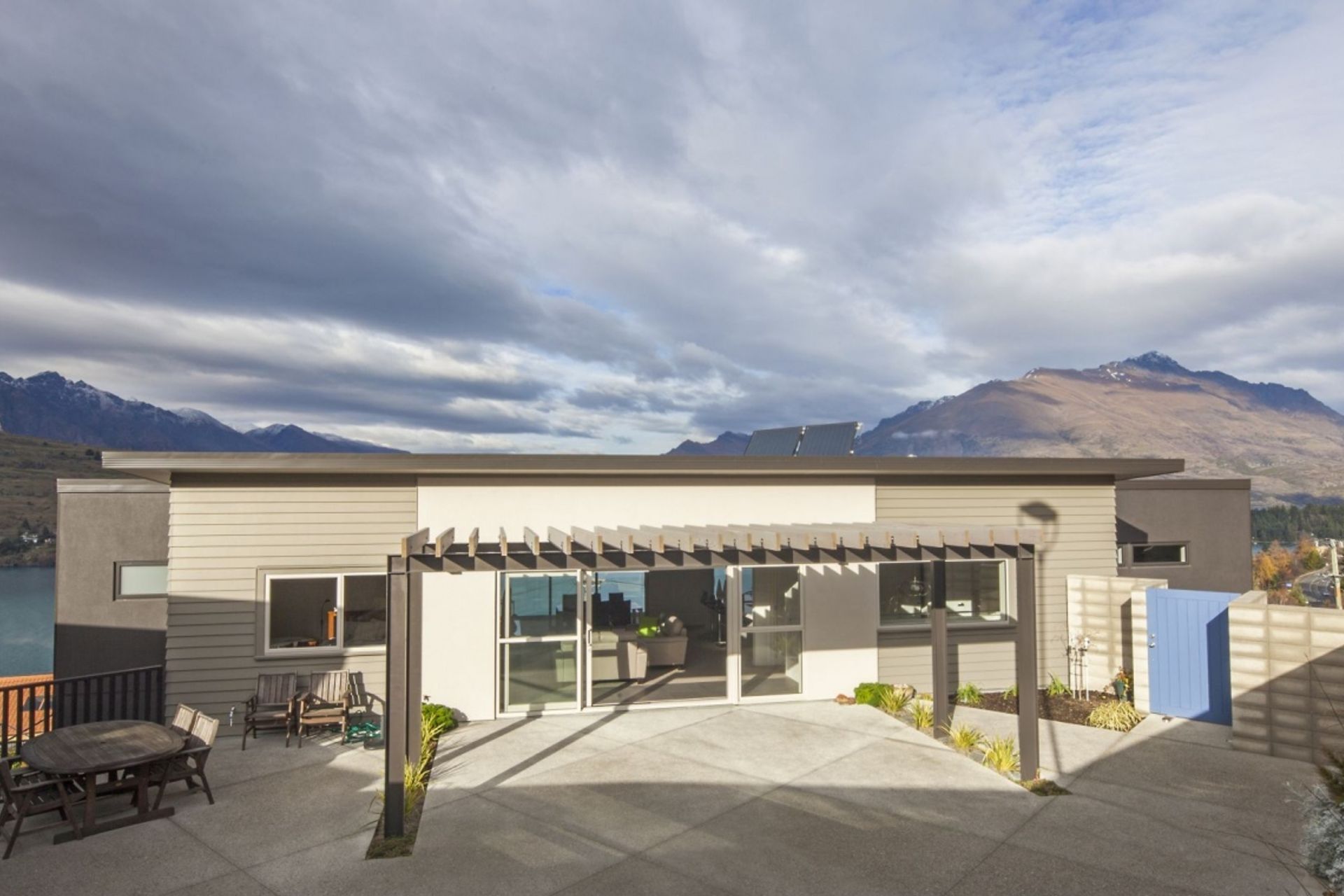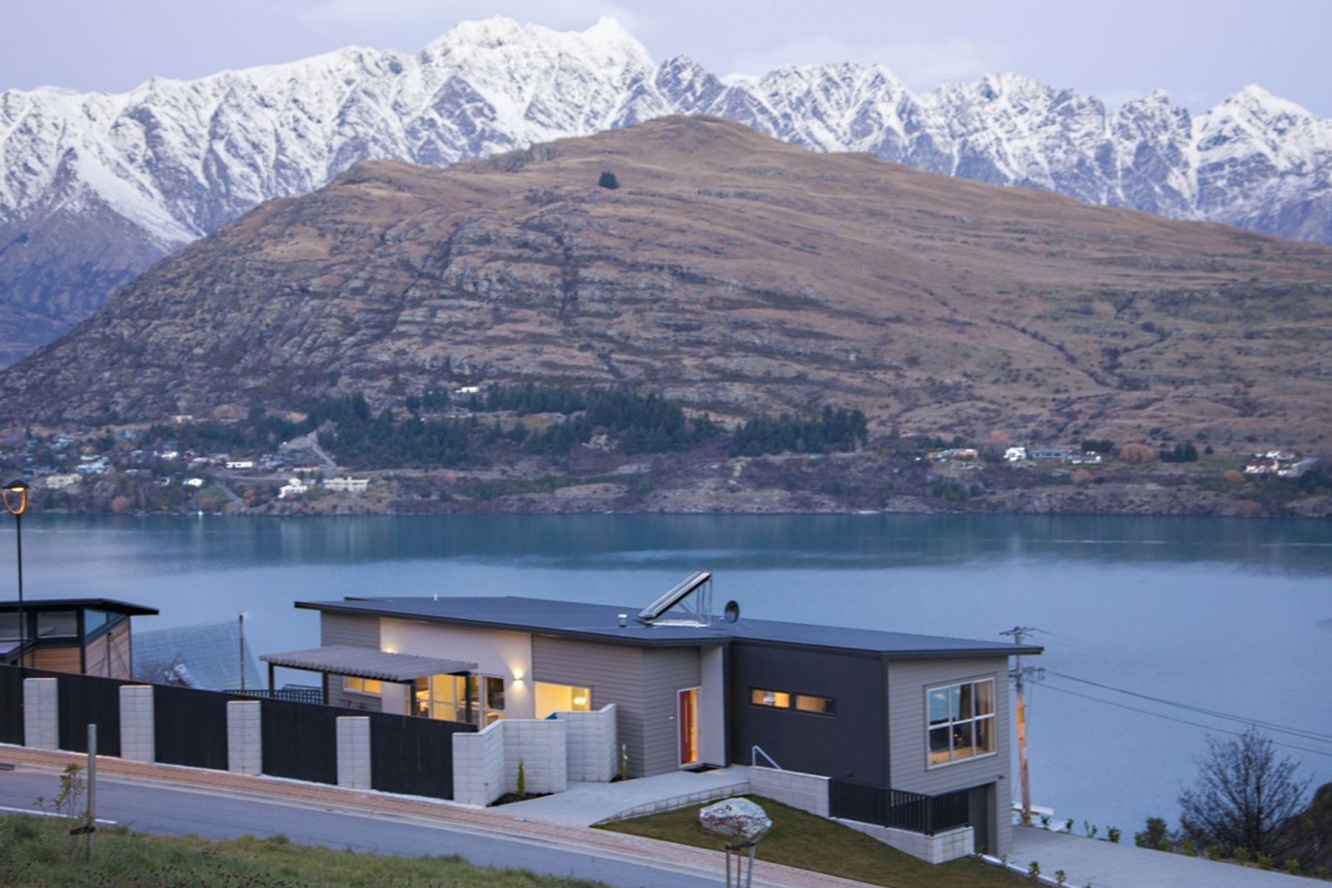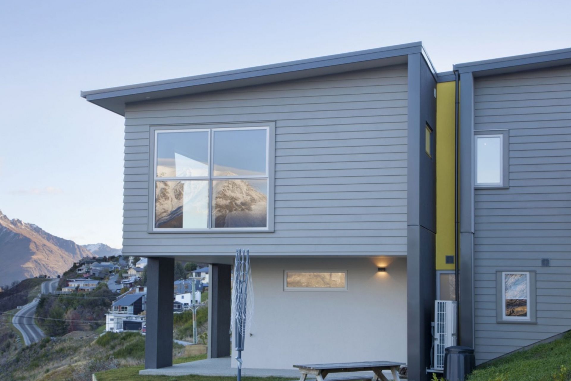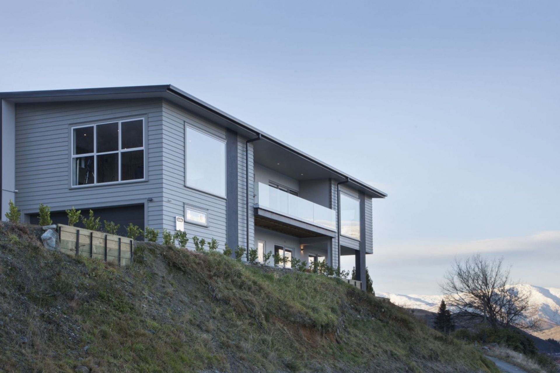 ArchiPro Project Summary - Highview Terrace House: A thoughtfully designed residence on a steep site, featuring a private living terrace and an enclosed deck that maximizes breathtaking views of Wakatipu, built to 'Evolution' standards with sustainable materials and superior insulation.
