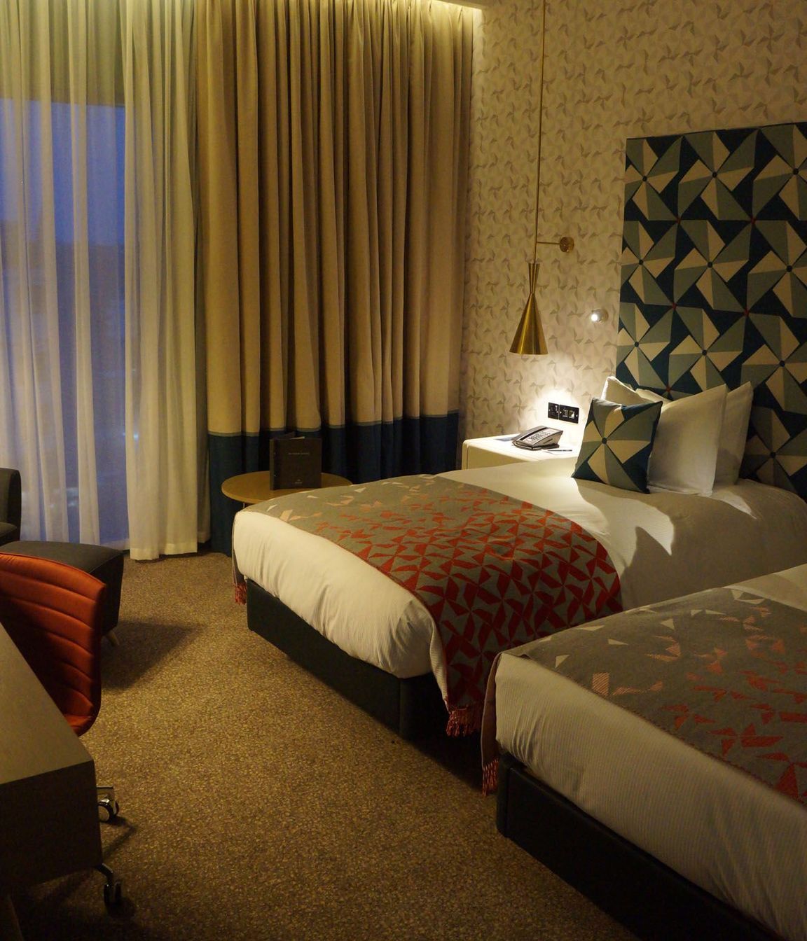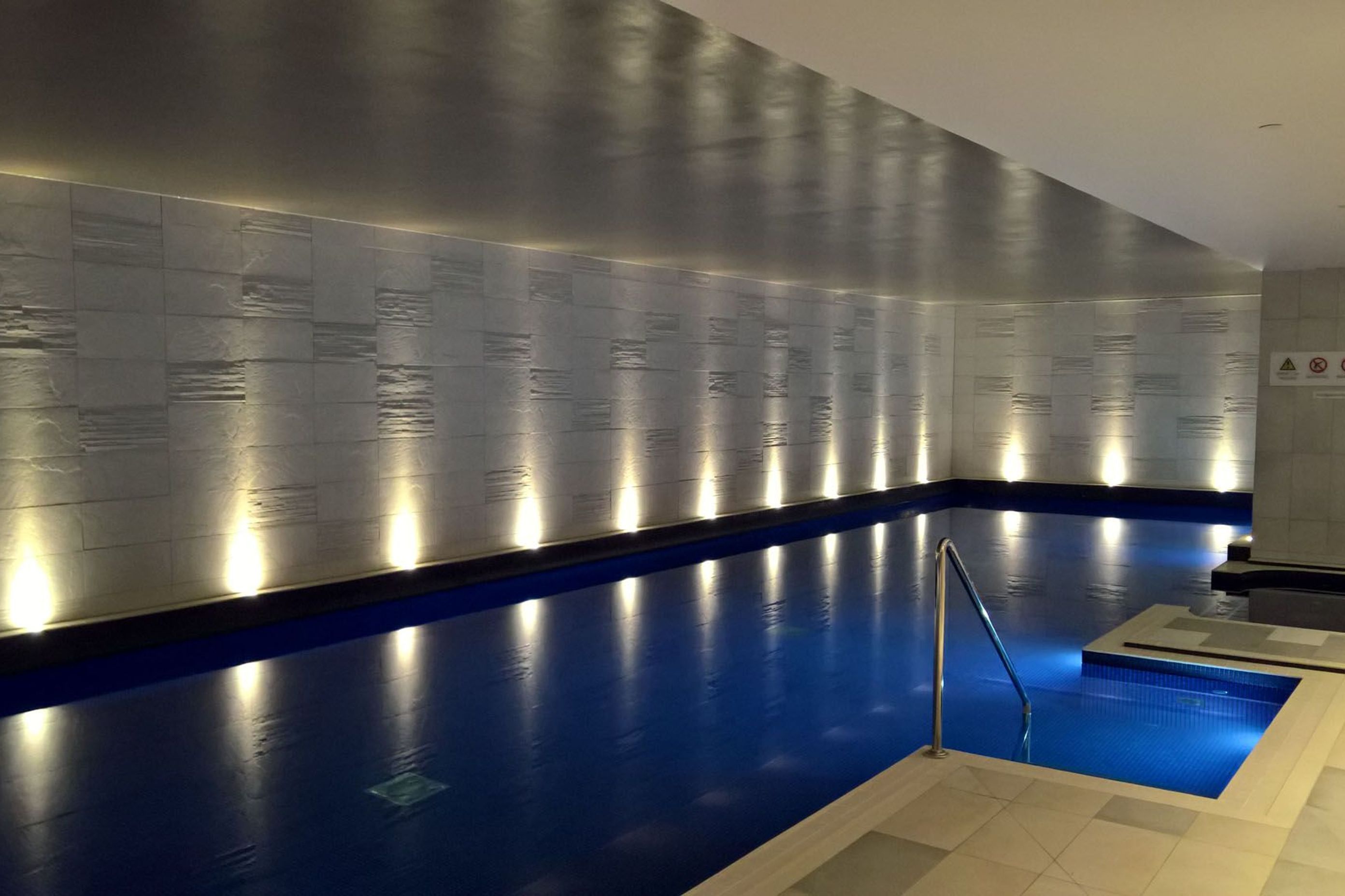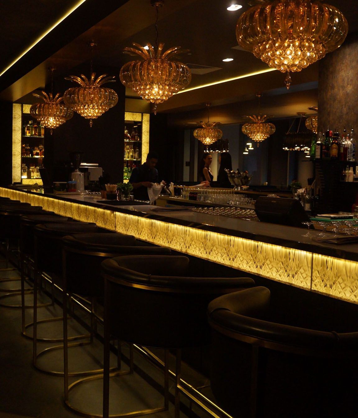 ArchiPro Project Summary - Innovative lighting design for Hilton Bournemouth, featuring bright and airy public spaces complemented by a moody sky bar, created in collaboration with Scott Brownrigg and Ted Baker.