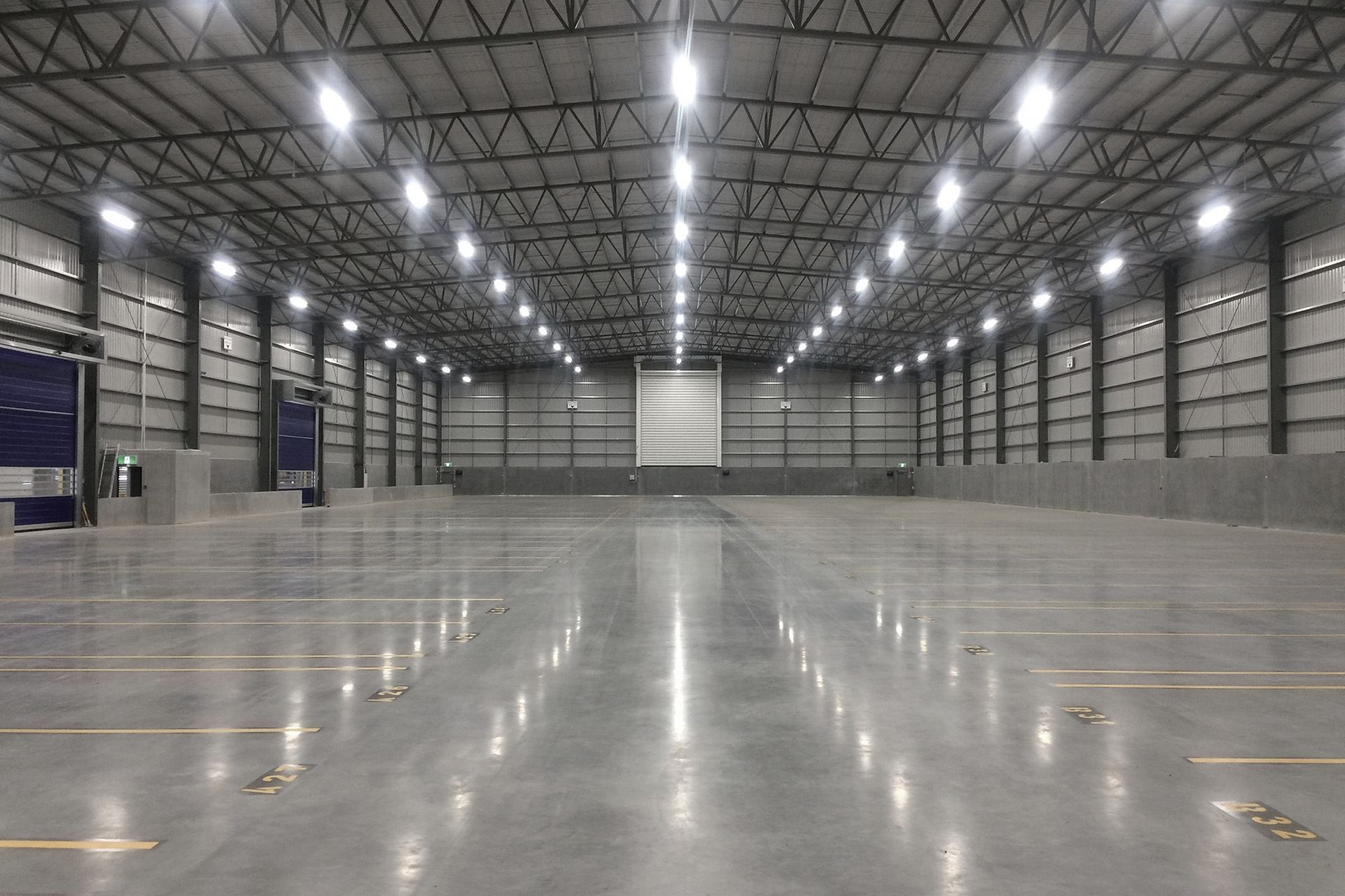 ArchiPro Project Summary - Hilton Haulage: A 4141m² warehouse with a 1740m² lean-to, featuring six loading docks, high-speed roller doors, and fire-rated walls, designed to meet MPI food storage regulations and enhance safety and efficiency in loading operations.