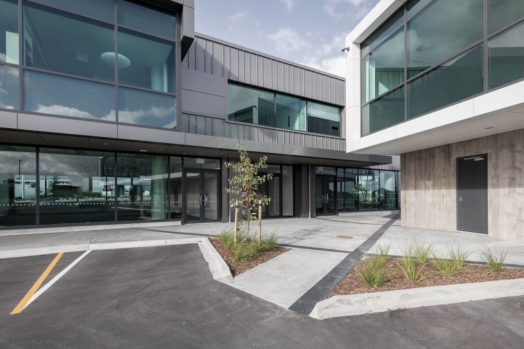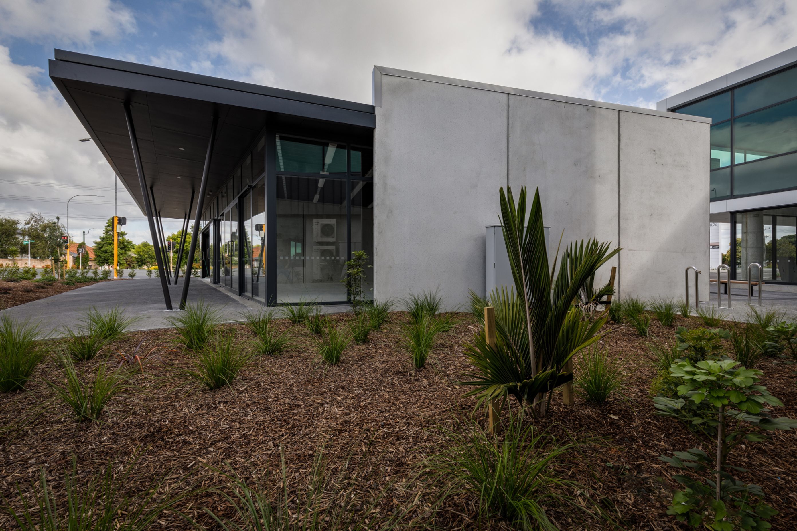 ArchiPro Project Summary - A striking retail development featuring eight versatile units, office spaces, and café facilities in the vibrant Hobsonville area, designed by Ashton Mitchell for Kea Property Group Limited, with a total investment of $7.6M.