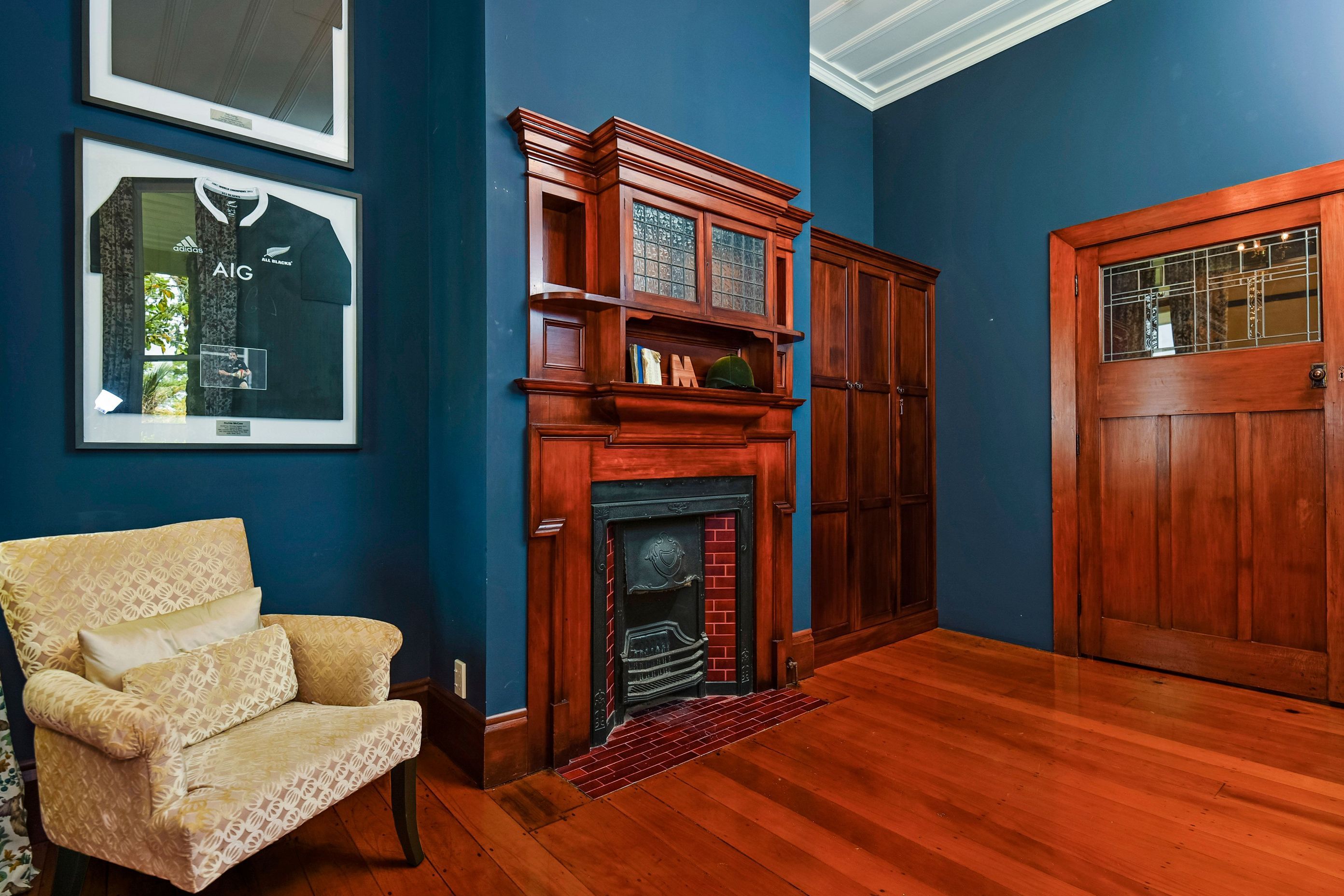 ArchiPro Project Summary - A beautifully designed Home Office that combines functionality with a sophisticated aesthetic, featuring a blue palette and elegant furnishings.