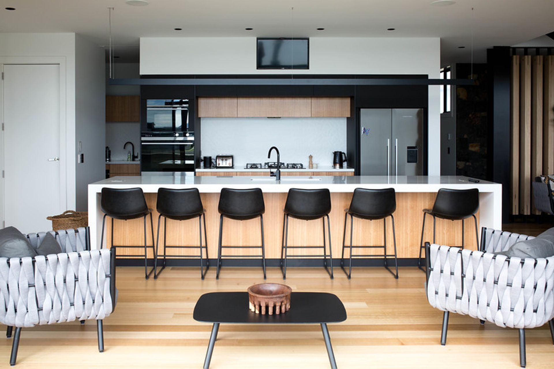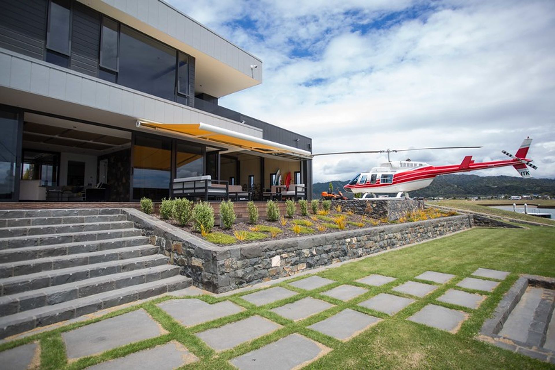 ArchiPro Project Summary - Exceptional Whitianga property featuring a stunning kitchen with a central island and a helipad, offering seamless indoor-outdoor living.