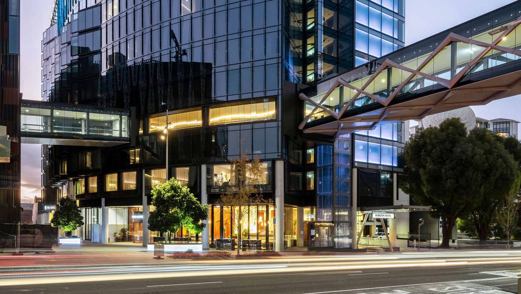 ArchiPro Project Summary - Horizon Hotel: A contemporary 12-storey, 300-room five-star hotel designed for SkyCity Entertainment Group, featuring an iconic design that enhances the Sky City complex while providing a seamless connection to the New Zealand International Convention Centre.