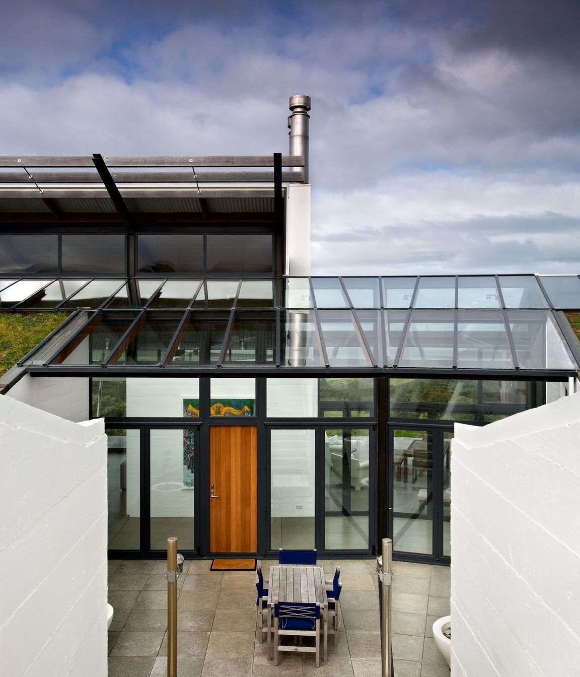 ArchiPro Project Summary - Contemporary house at Pounui Ridge featuring turf roofs, sunlit galleries, and stunning views, designed to harmonize with the natural landscape.