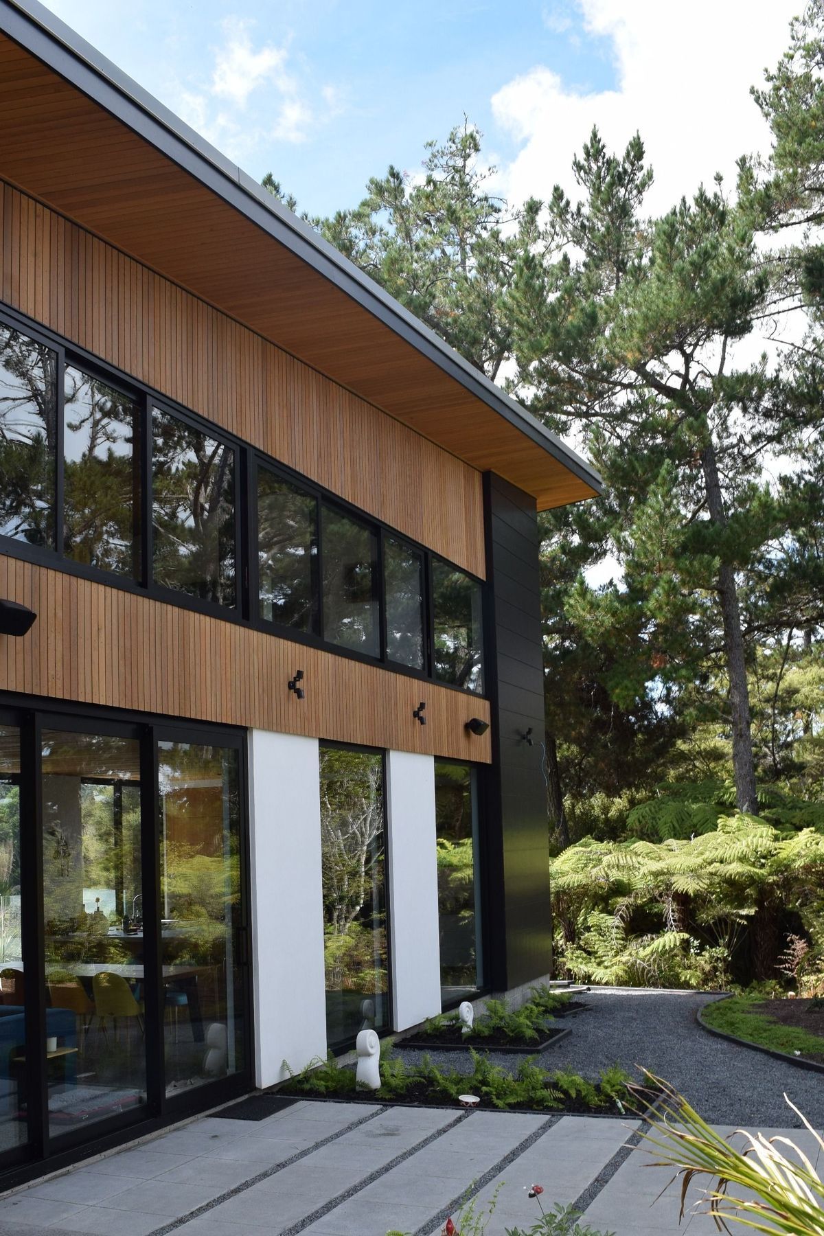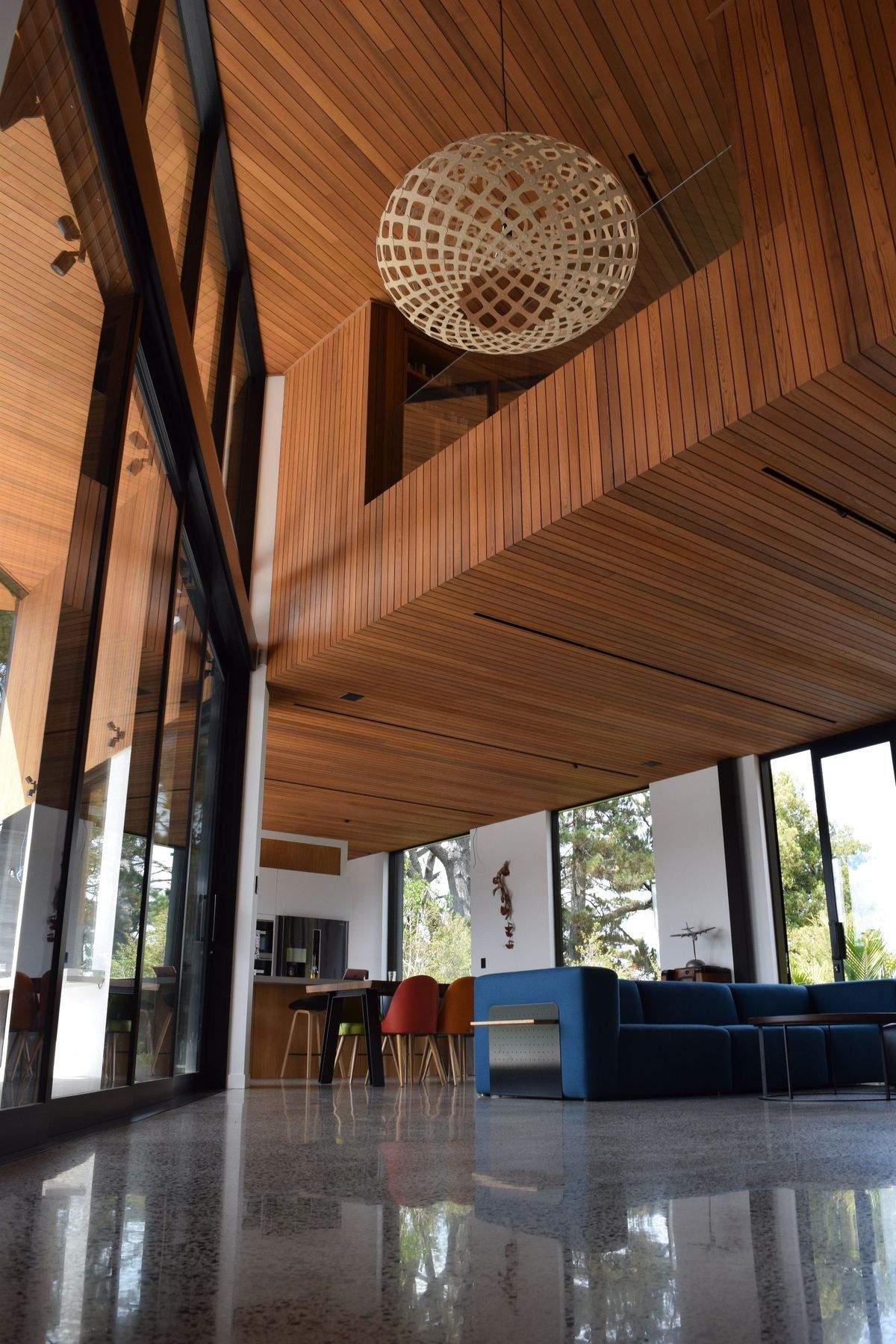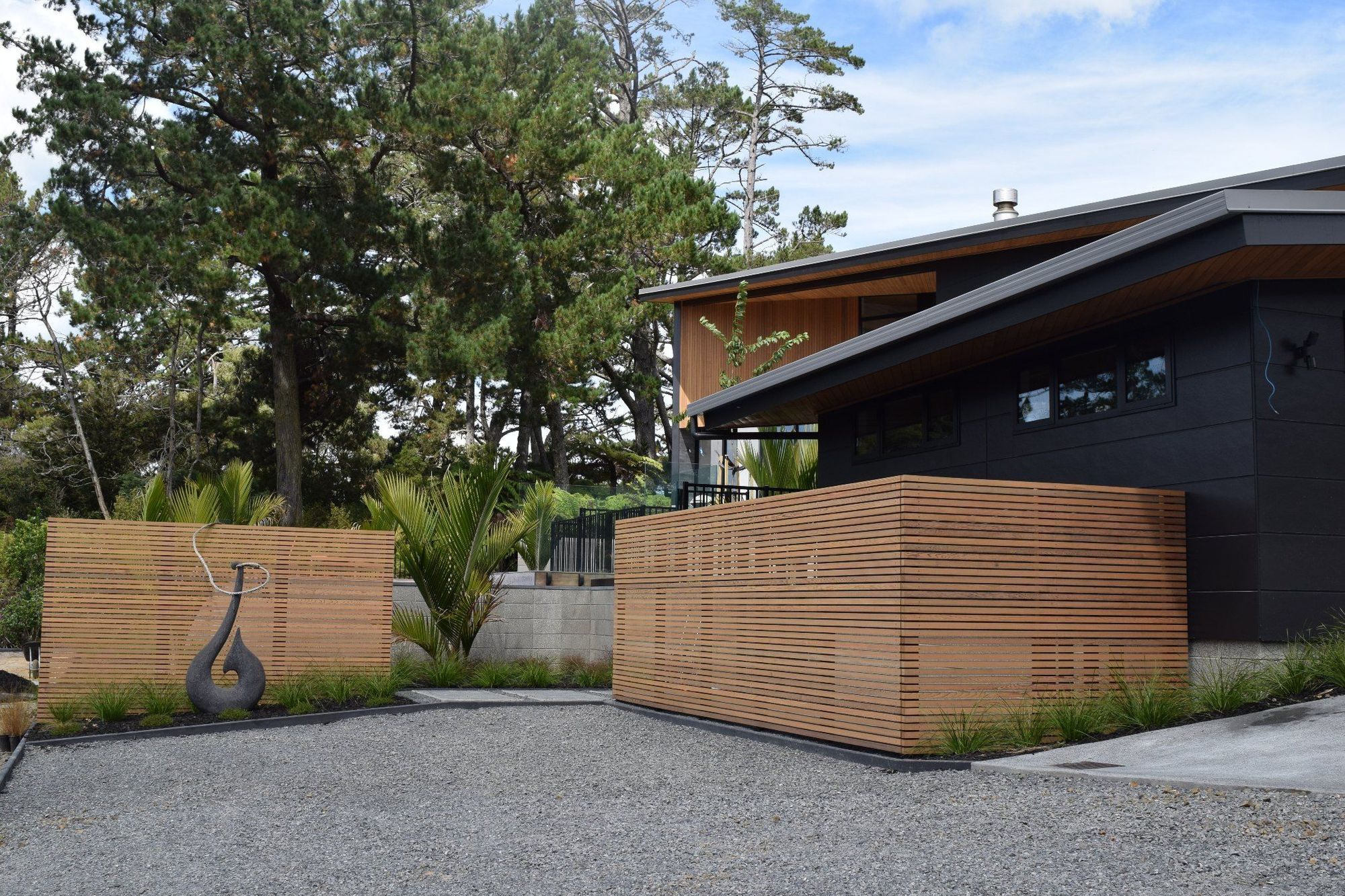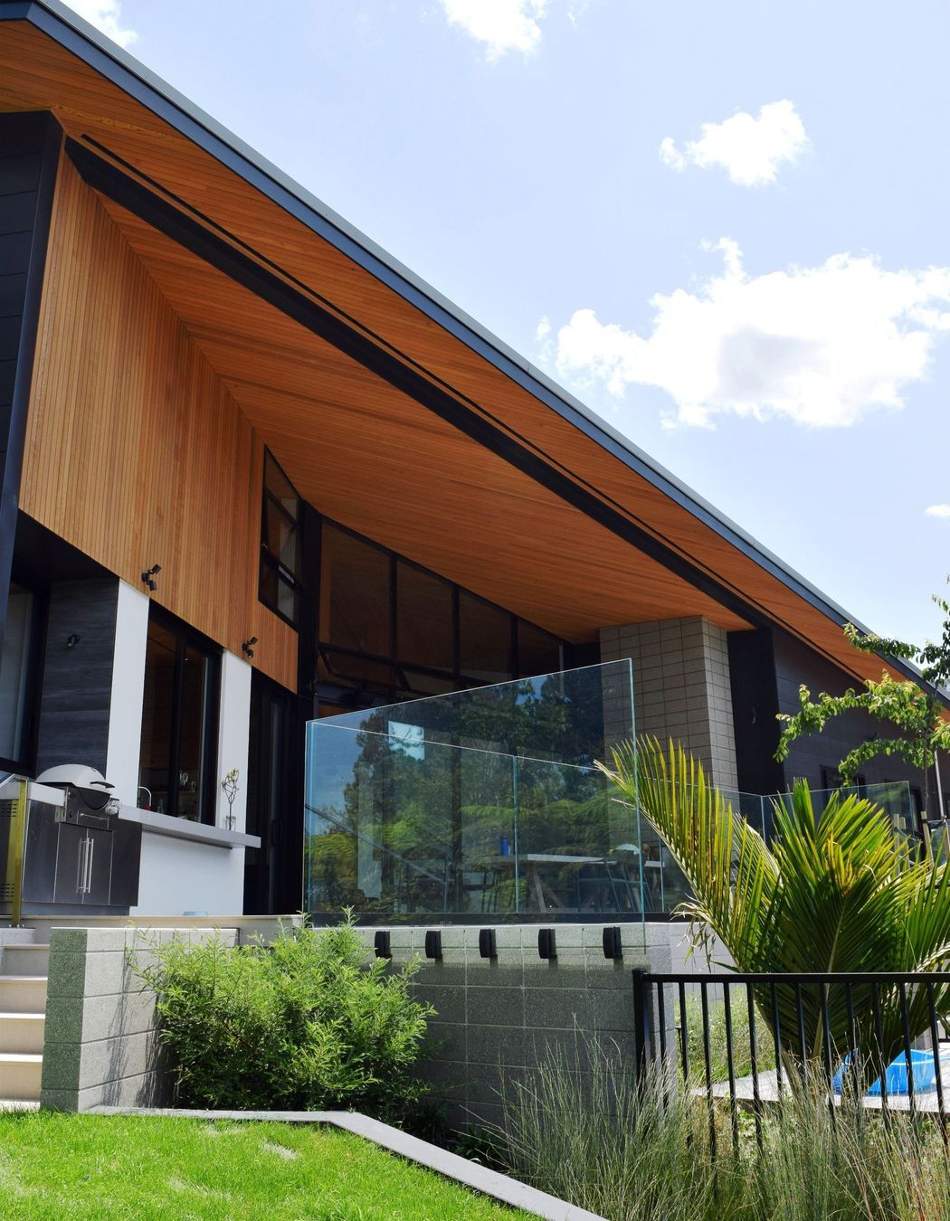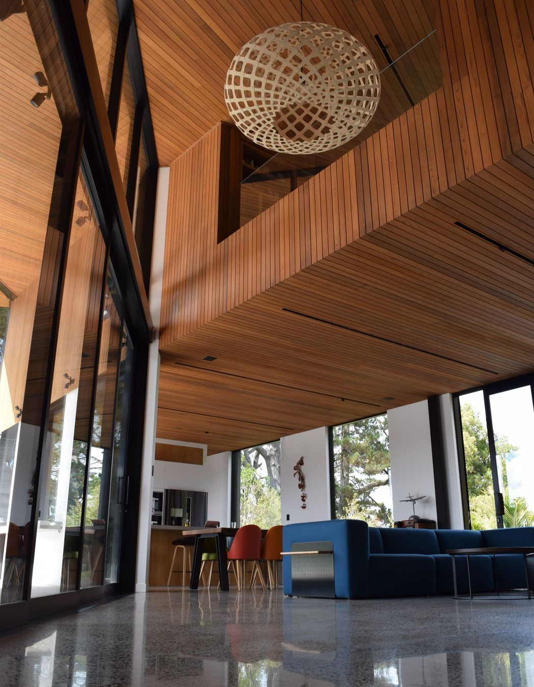 ArchiPro Project Summary - Elegant home at Riverhead featuring expansive outdoor areas, stunning estuary views, and a striking double-height roof that enhances both indoor and outdoor living spaces.