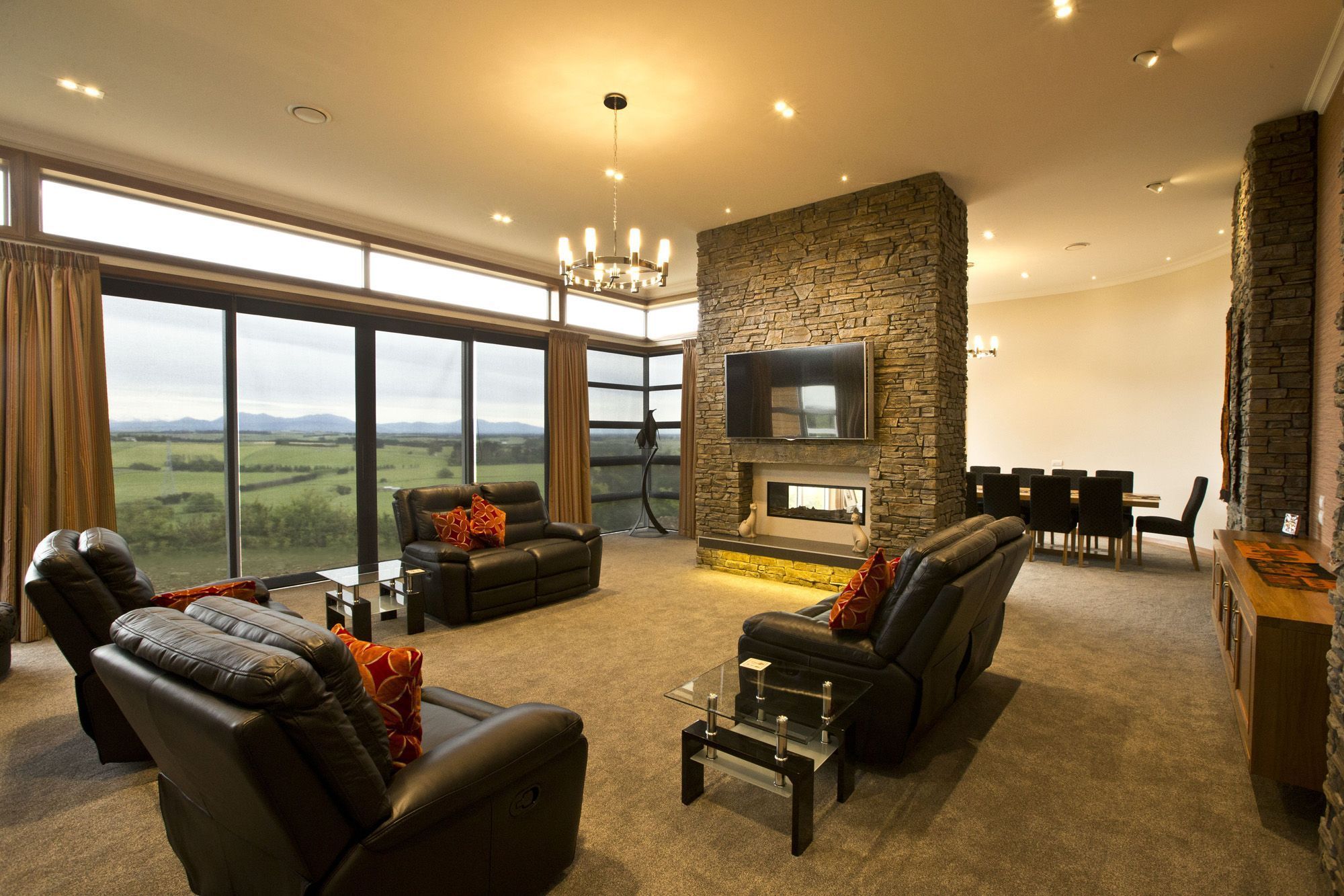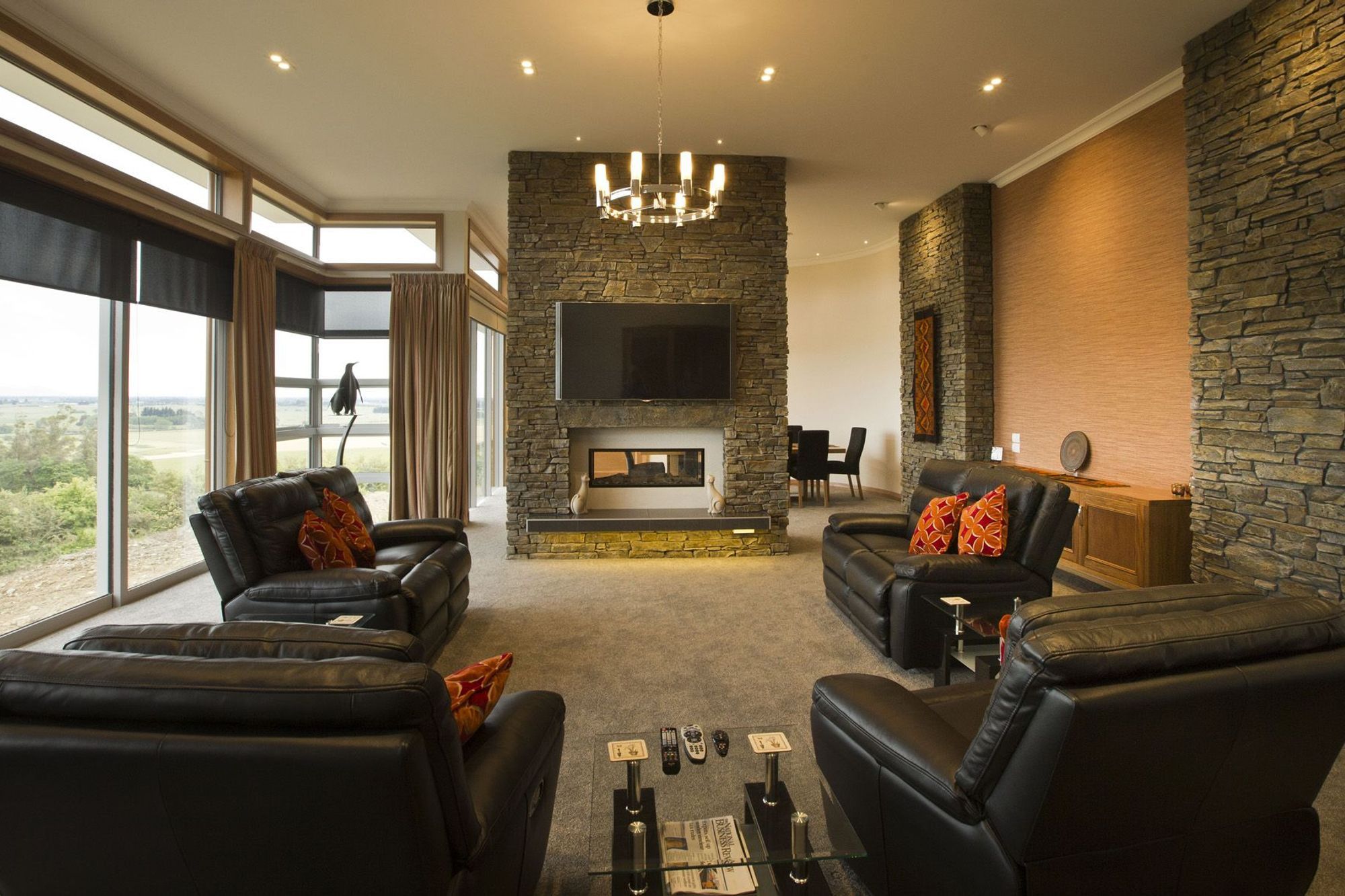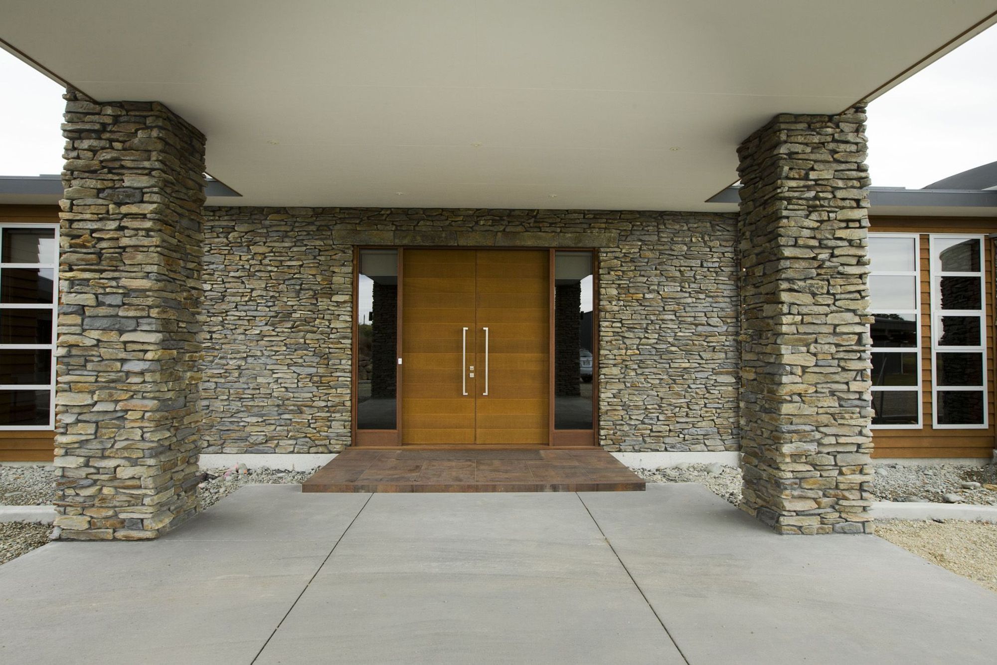 ArchiPro Project Summary - Modern home in Timaru featuring stunning 360-degree views of the Southern Alps and the sea, completed in 2014 for client Washington, showcasing a harmonious blend of stonework and timber textures.