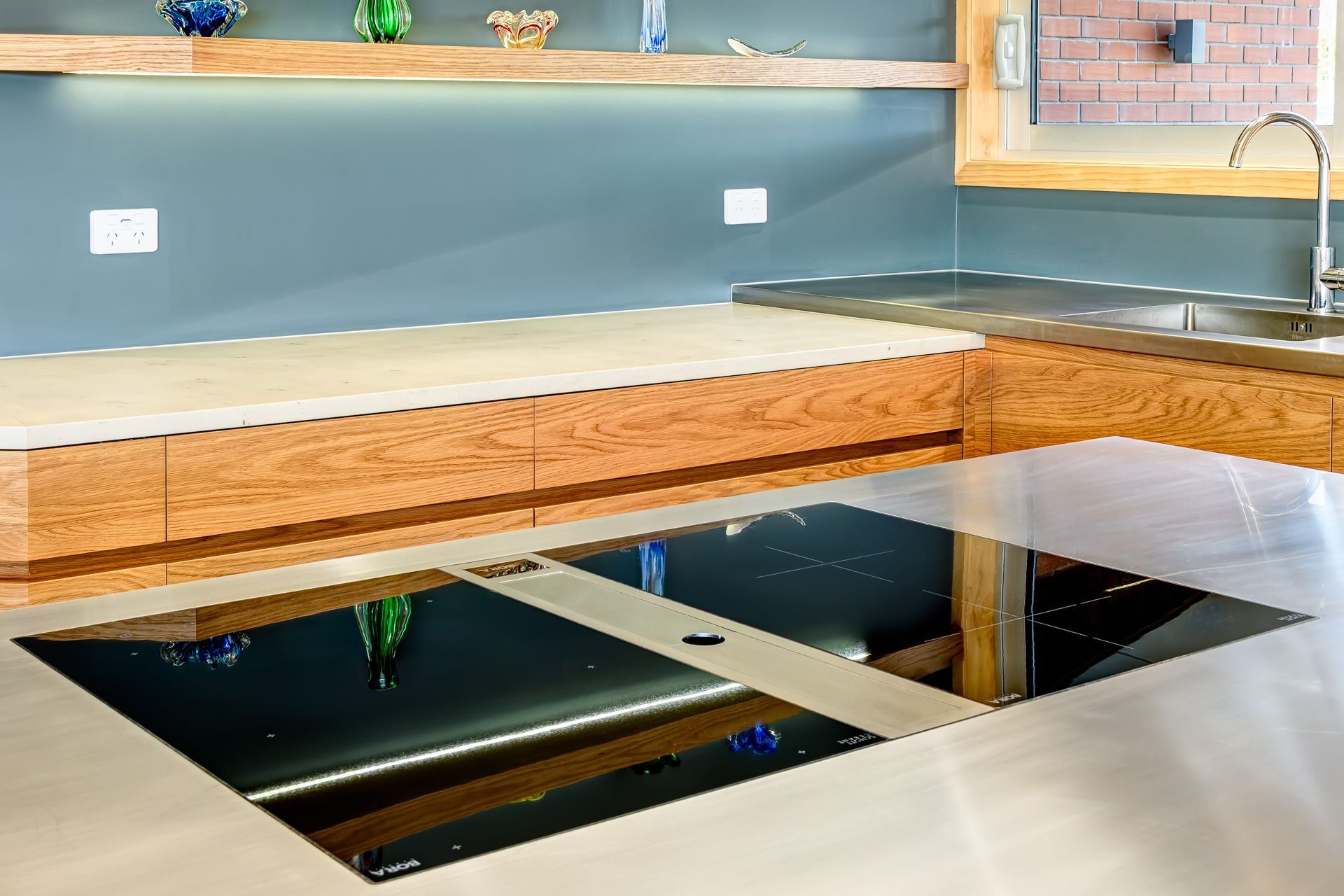 ArchiPro Project Summary - A dynamic kitchen design featuring a BORA cooktop with downdraft in an entertainer's island, complemented by a cleverly concealed Blum Space tower and thoughtfully designed lighting.