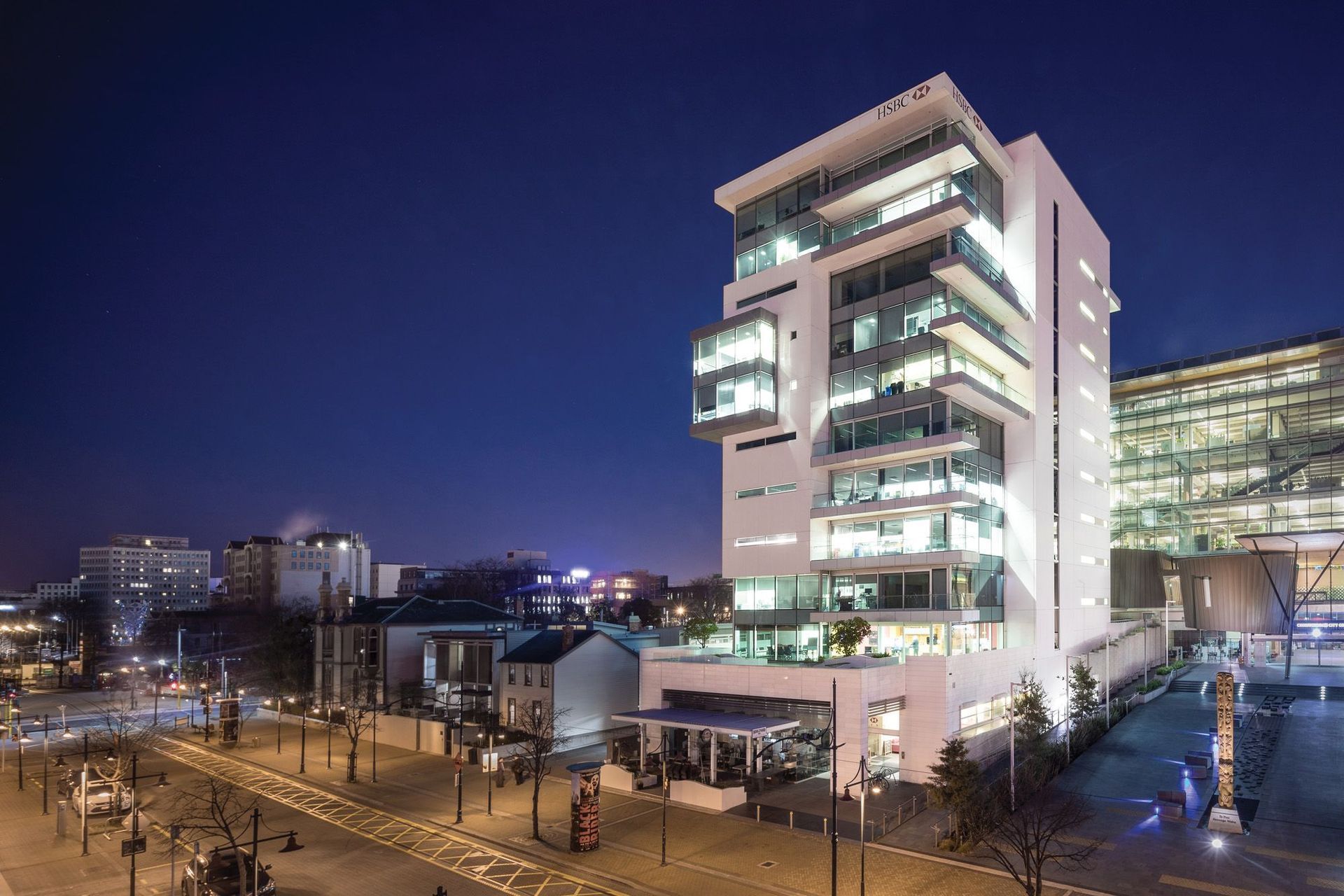 ArchiPro Project Summary - HSBC Building: A landmark 40-metre A-Grade office tower in Christchurch, featuring 13 stories, sustainable design elements, and the South Island's first 5-star rated Green Star certification, fostering a collaborative environment with ample natural light and flexible office spaces.