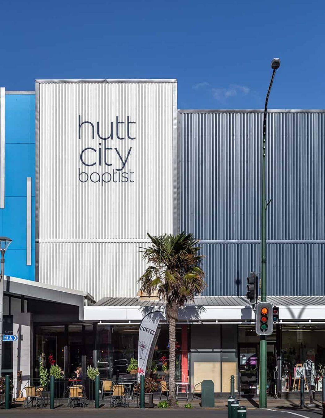 ArchiPro Project Summary - Revitalization of Hutt Baptist Church: Transforming a former cinema into a modern urban identity with a welcoming façade and enhanced community presence in the heart of Lower Hutt.