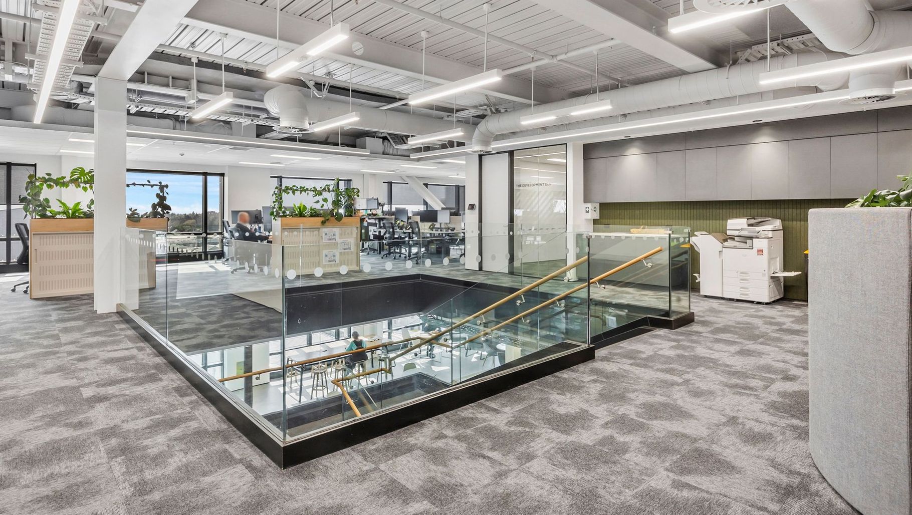 ArchiPro Project Summary - HW Richardson Group Tower: Invercargill’s tallest contemporary building featuring eight levels of retail and office spaces, designed by Unispace, with an industrial aesthetic and biophilic design elements.