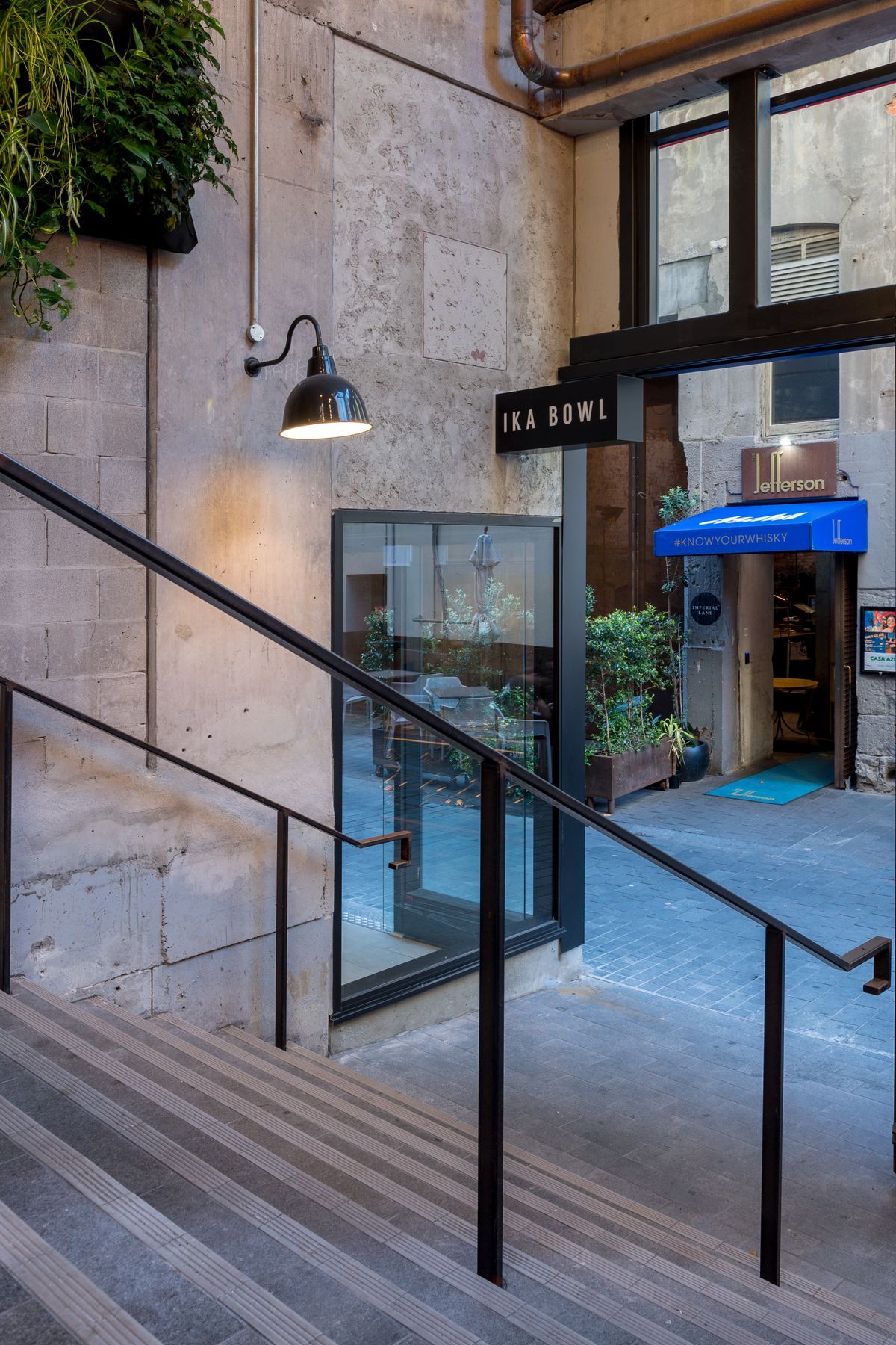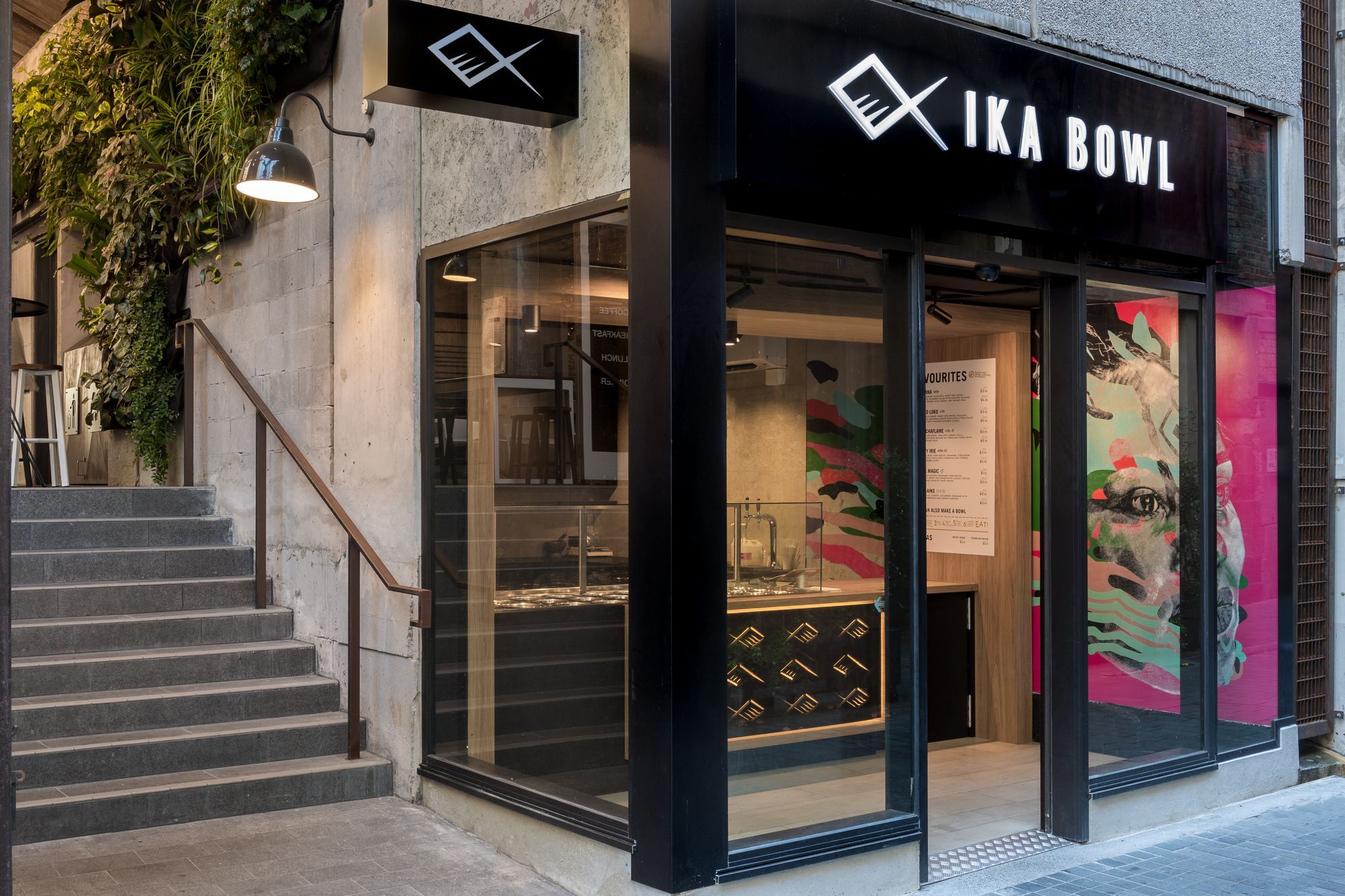 ArchiPro Project Summary - The Ika Bowl project features custom shelving and display cases, enhancing the interior design with rich wood stains and varnish for a warm atmosphere.
