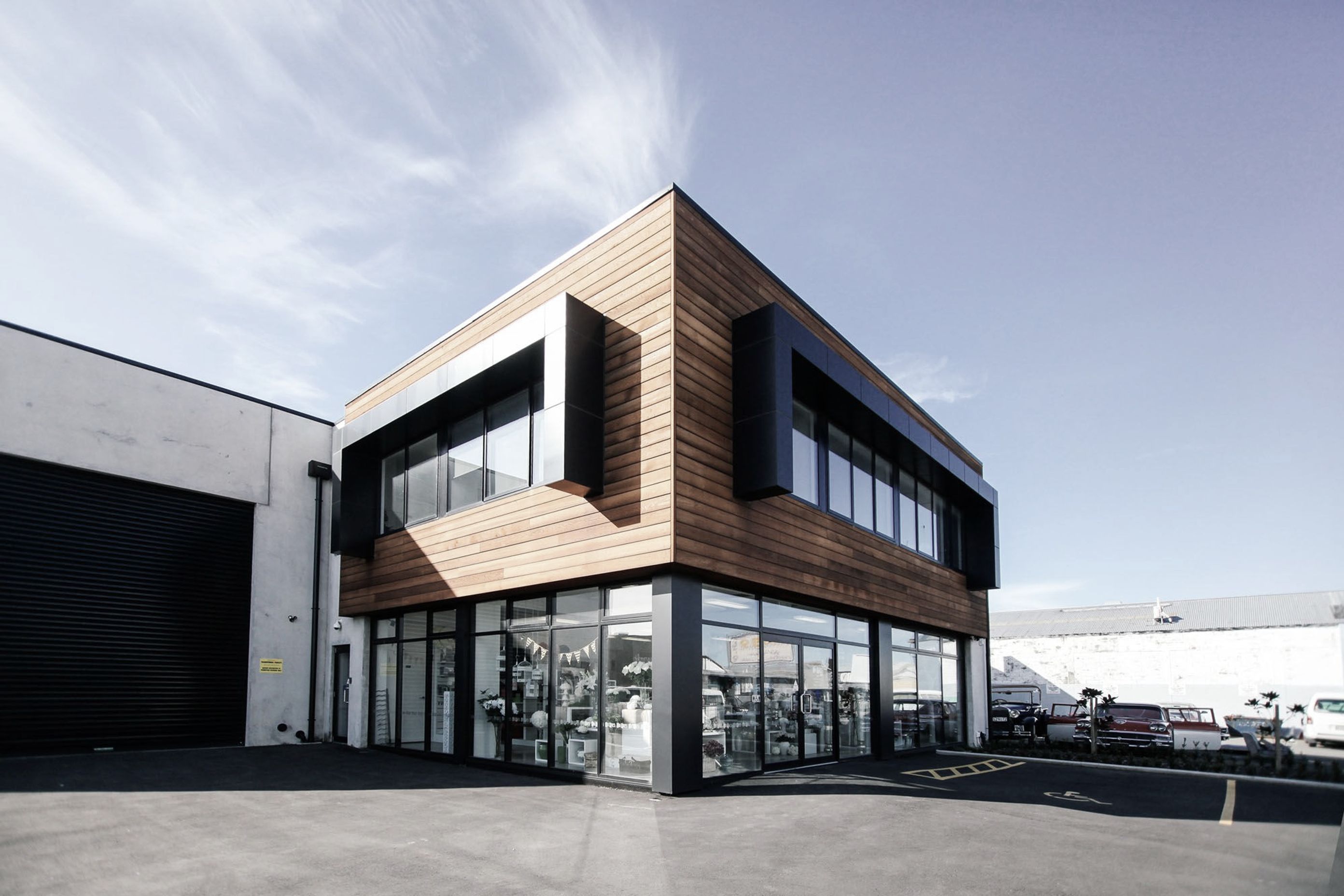 ArchiPro Project Summary - A two-level mixed-use commercial building in central Christchurch, featuring a timber-clad façade and metal-clad ‘eyebrows’ that enhance upper window views of the Port Hills, designed to meet specific office functionality requirements for the owner-operator.
