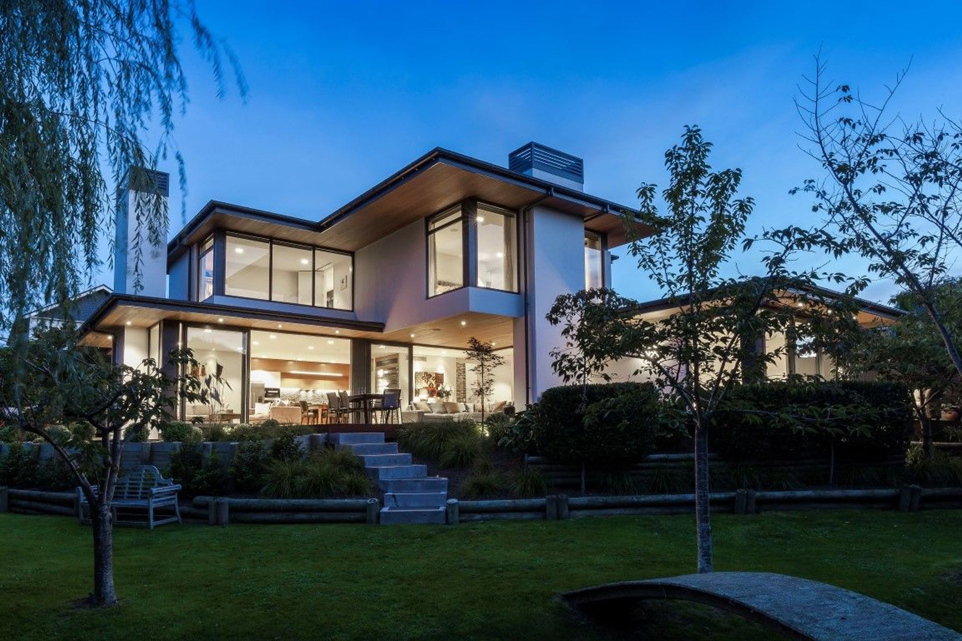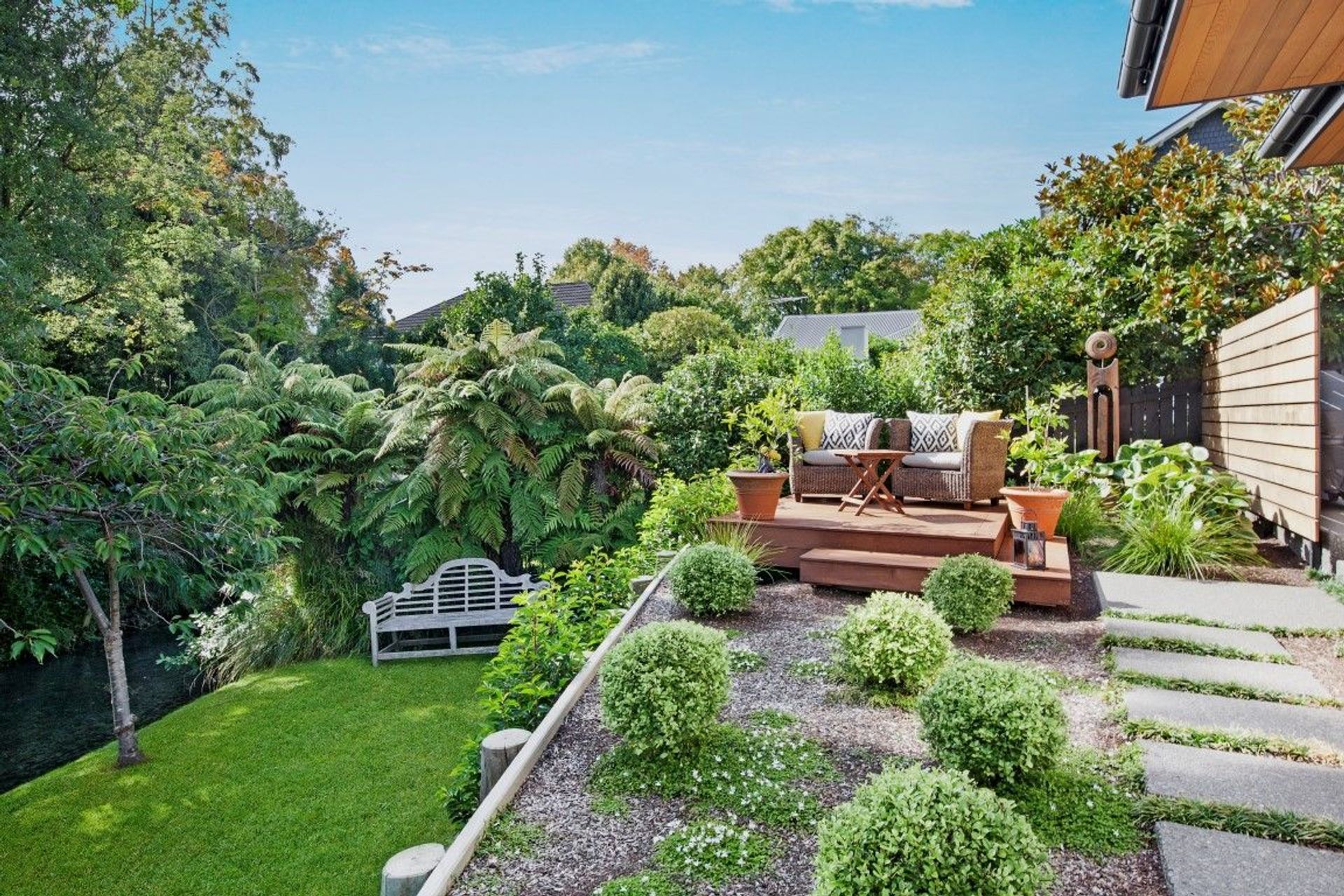 ArchiPro Project Summary - A harmonious blend of indoor and outdoor living, featuring terraced gardens, expansive decking, and a cozy gas fireplace, all set against the picturesque backdrop of the Ilam Stream.