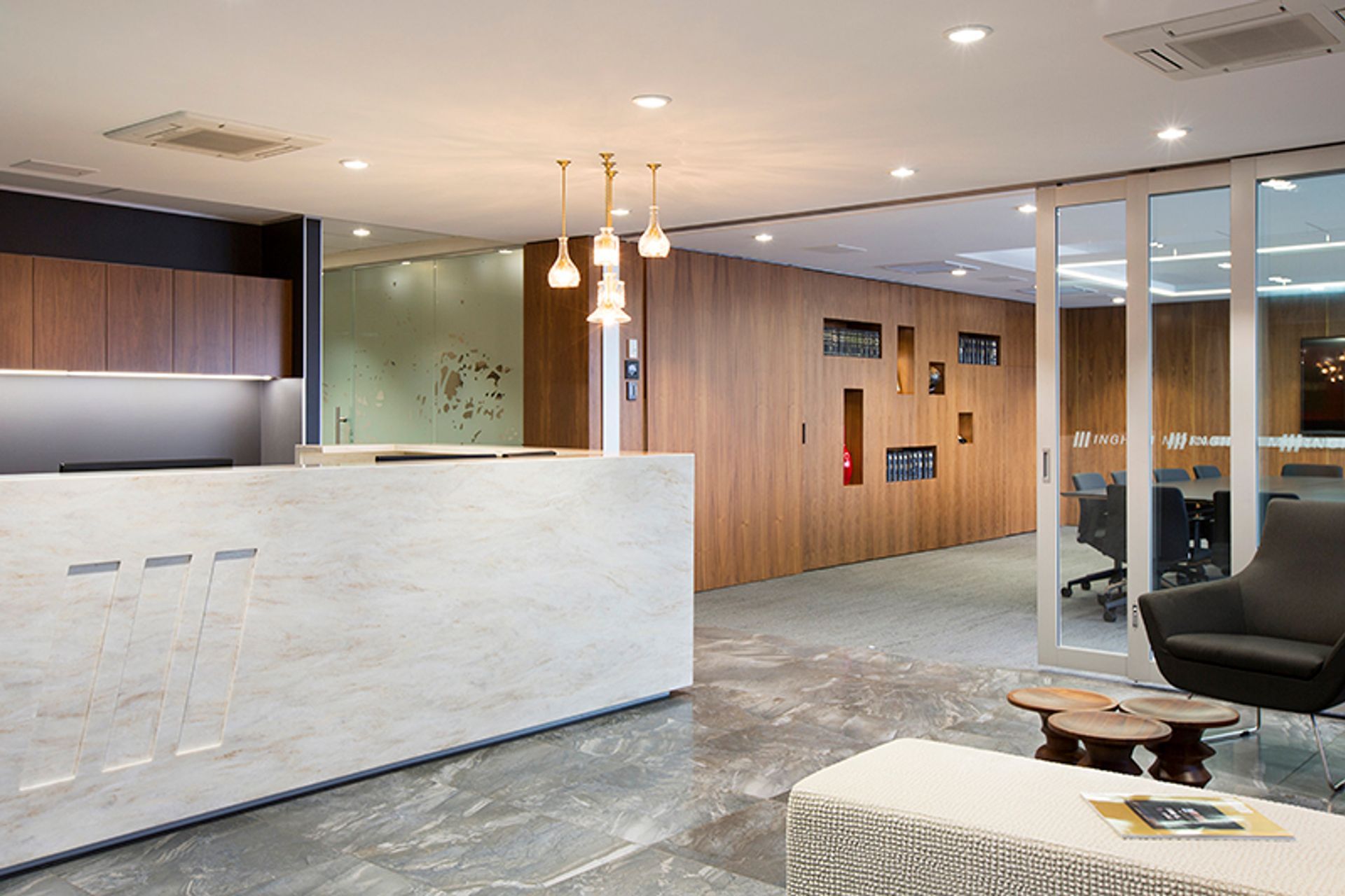 ArchiPro Project Summary - Ingham Mora's front-of-house areas received a stunning face-lift, expertly designed by Bubble Interiors to accommodate a growing team while enhancing functionality and aesthetic appeal.