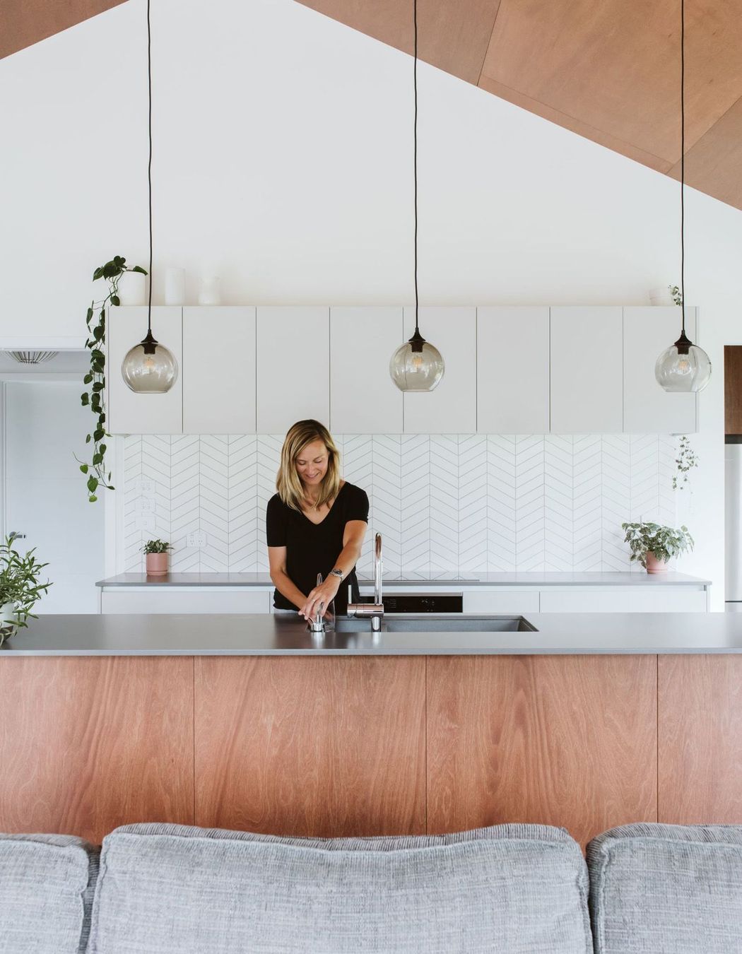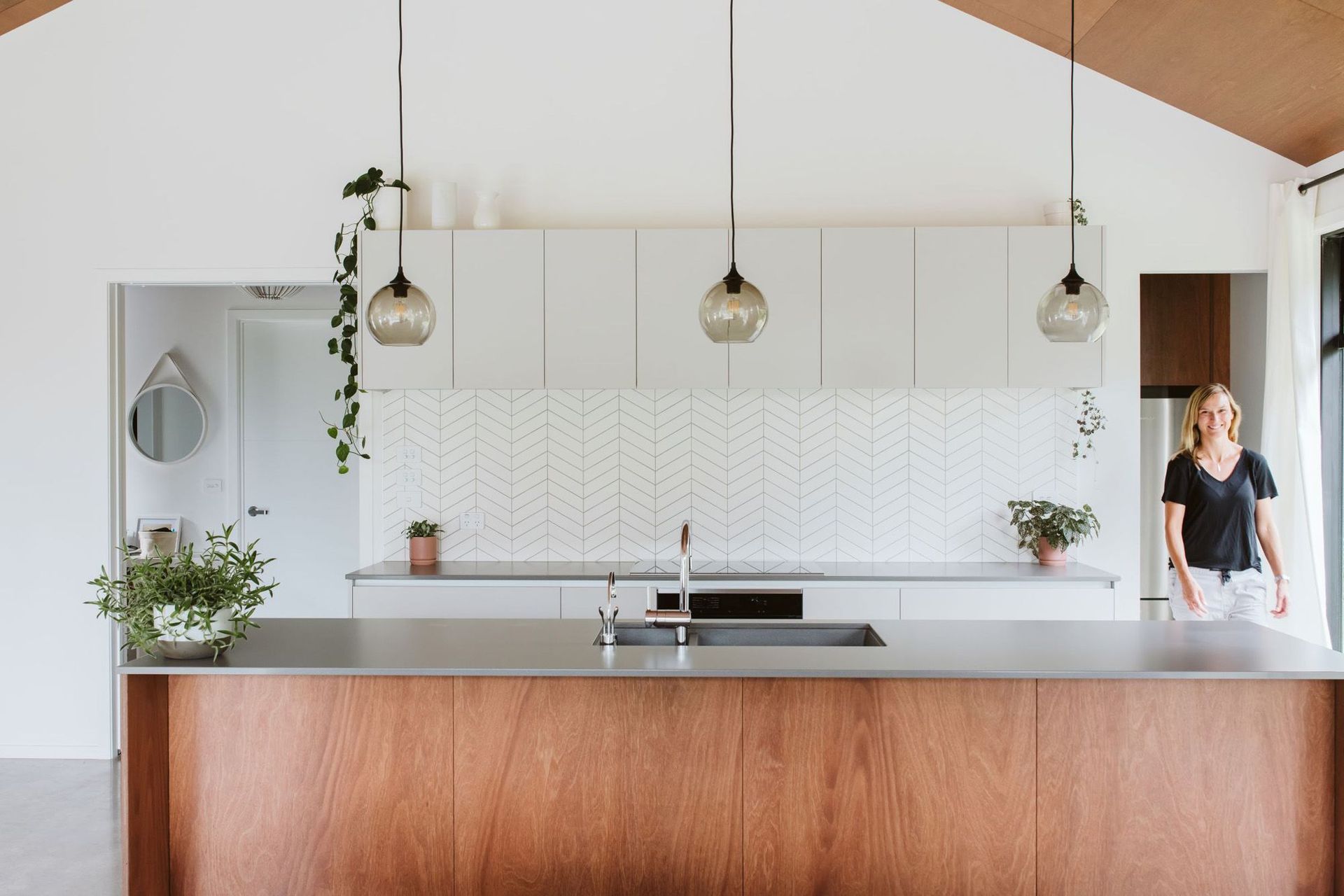 ArchiPro Project Summary - Contemporary kitchen design by Annika Rowson featuring Keruing Brownwood plywood, crafted by Rowson Joinery for client Ingrid Wahlen.