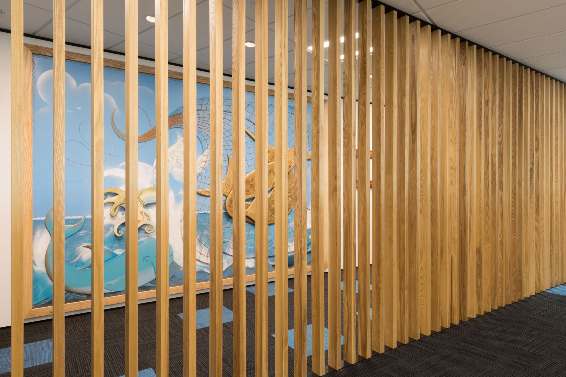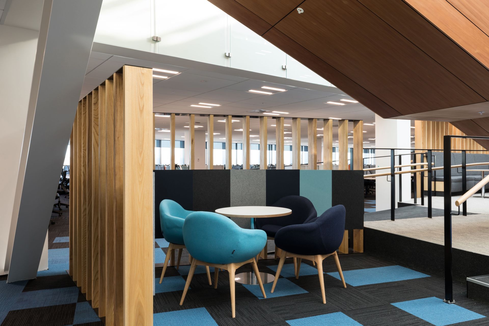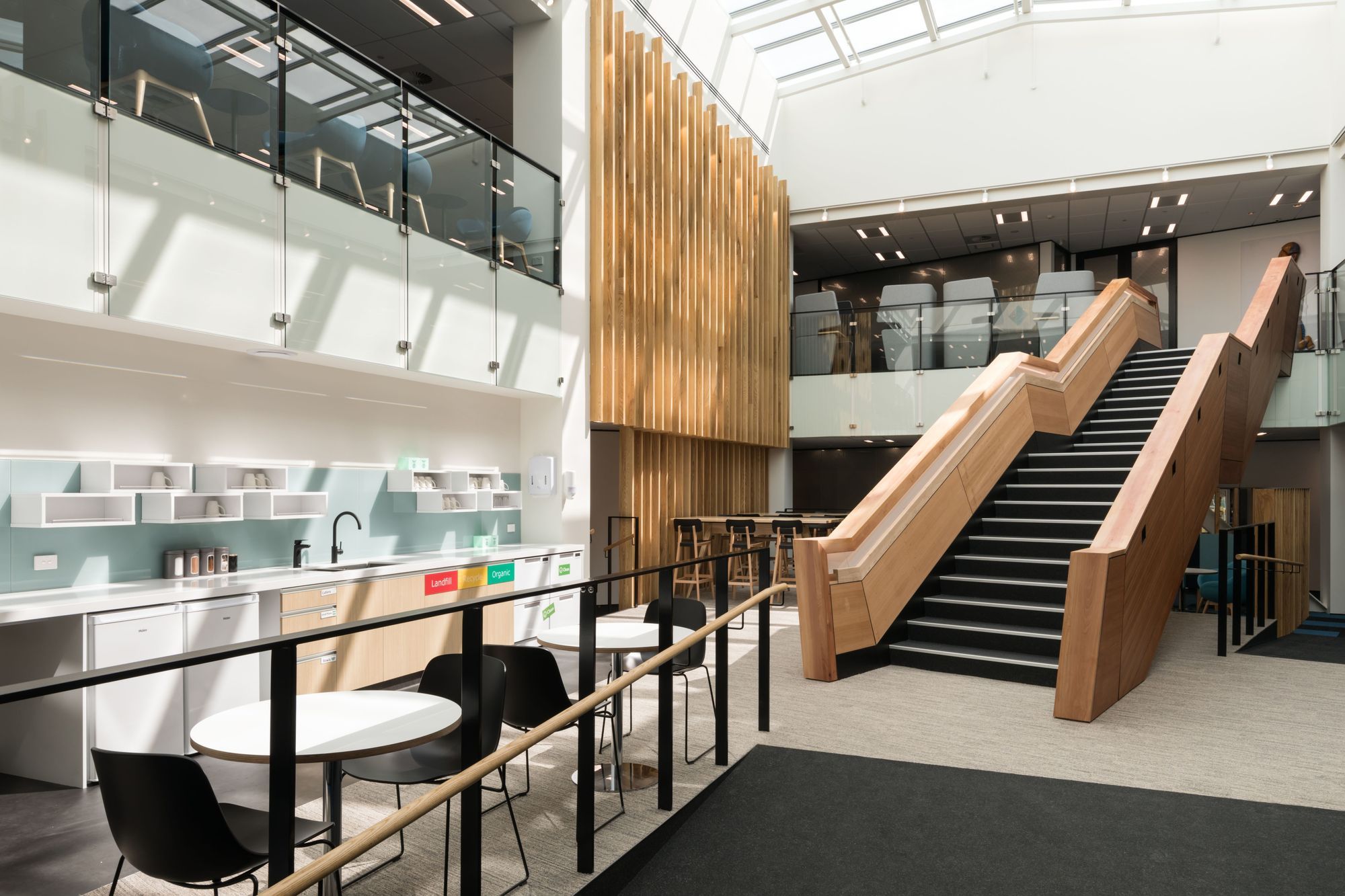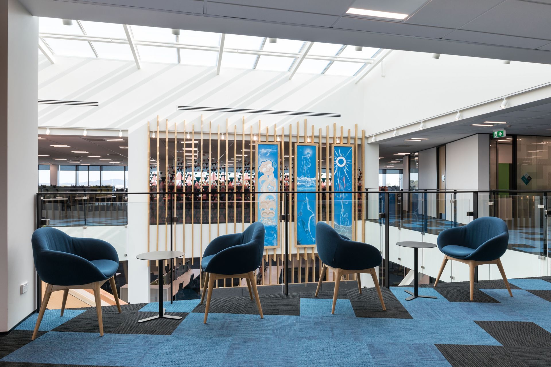 ArchiPro Project Summary - A thoughtfully designed office for Inland Revenue in Te Rapa, Hamilton, integrating the surrounding landscape, Waikato River, and Maori culture, featuring a two-floor layout connected by a naturally lit central hub and stairway.
