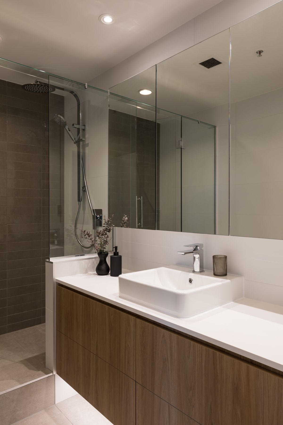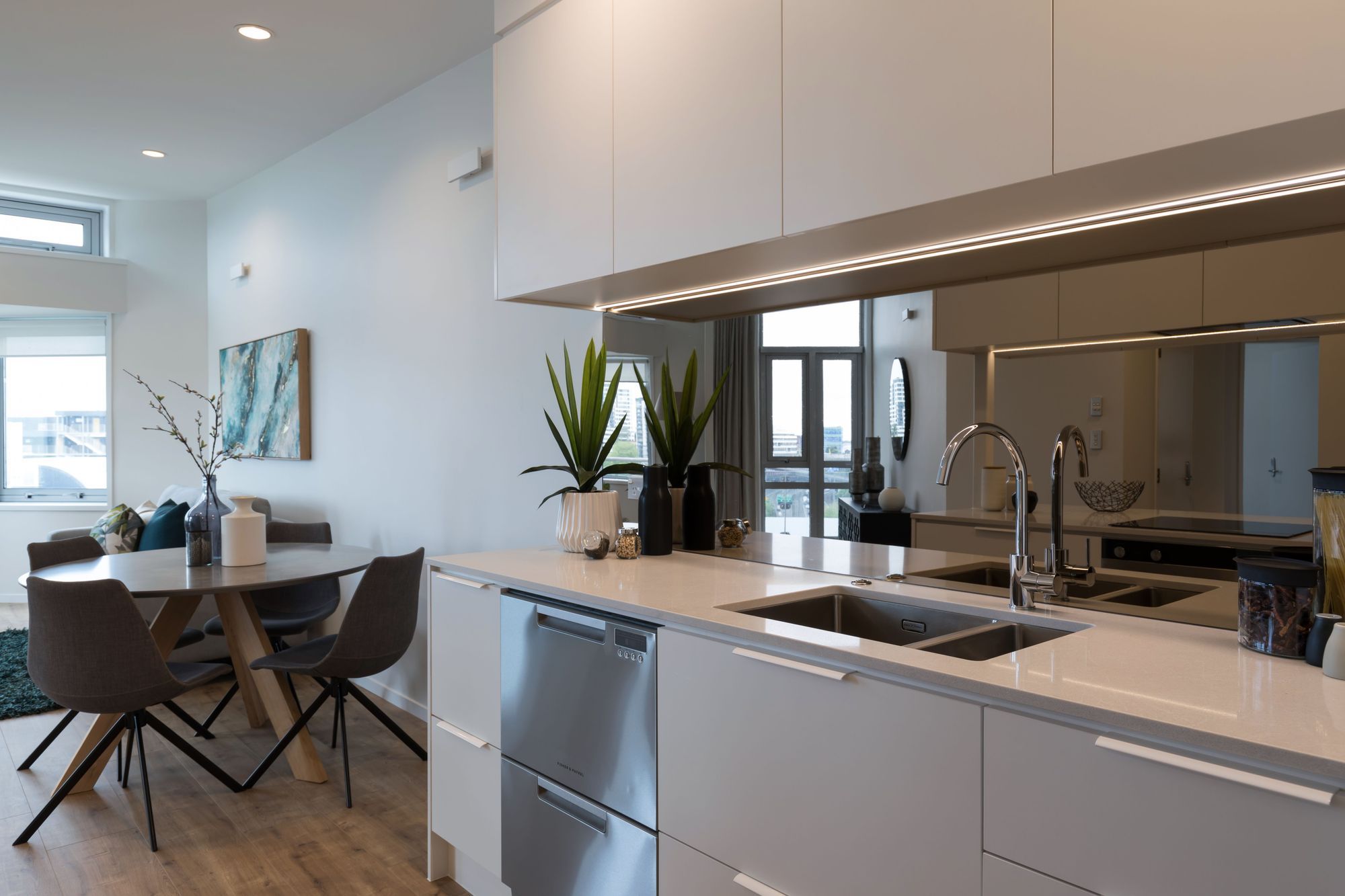 ArchiPro Project Summary - Contemporary renovation of a two-bedroom apartment in central Auckland, featuring an open kitchen design, luxurious bathrooms, and warm neutral tones, completed in 2018 for enhanced living space and future owner customization.