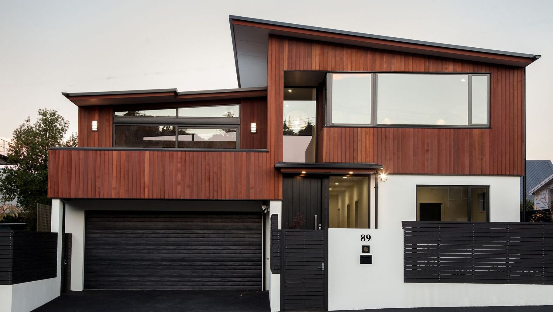 ArchiPro Project Summary - High-quality 4-bedroom townhouse designed as part of an urban renewal project in Dunedin, featuring a split-level layout with cedar and plastered blockwork, replacing an old bungalow on a 400m² site.
