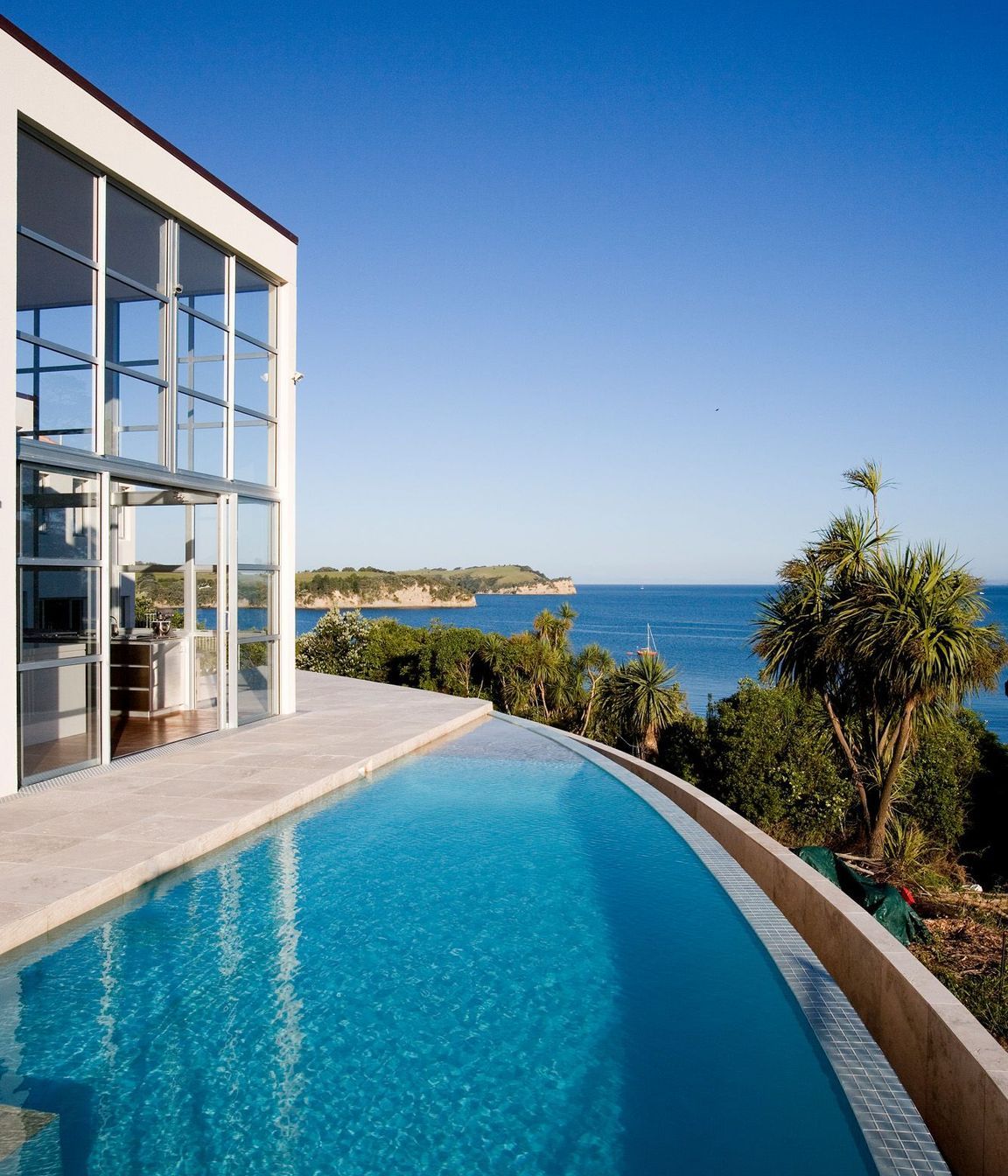 ArchiPro Project Summary - Intellisys House: A cutting-edge clifftop residence featuring advanced automation, security systems, multi-room audio-visual integration, and an acoustically engineered theatre, all designed to enhance comfort and convenience in a stunning New Zealand setting.