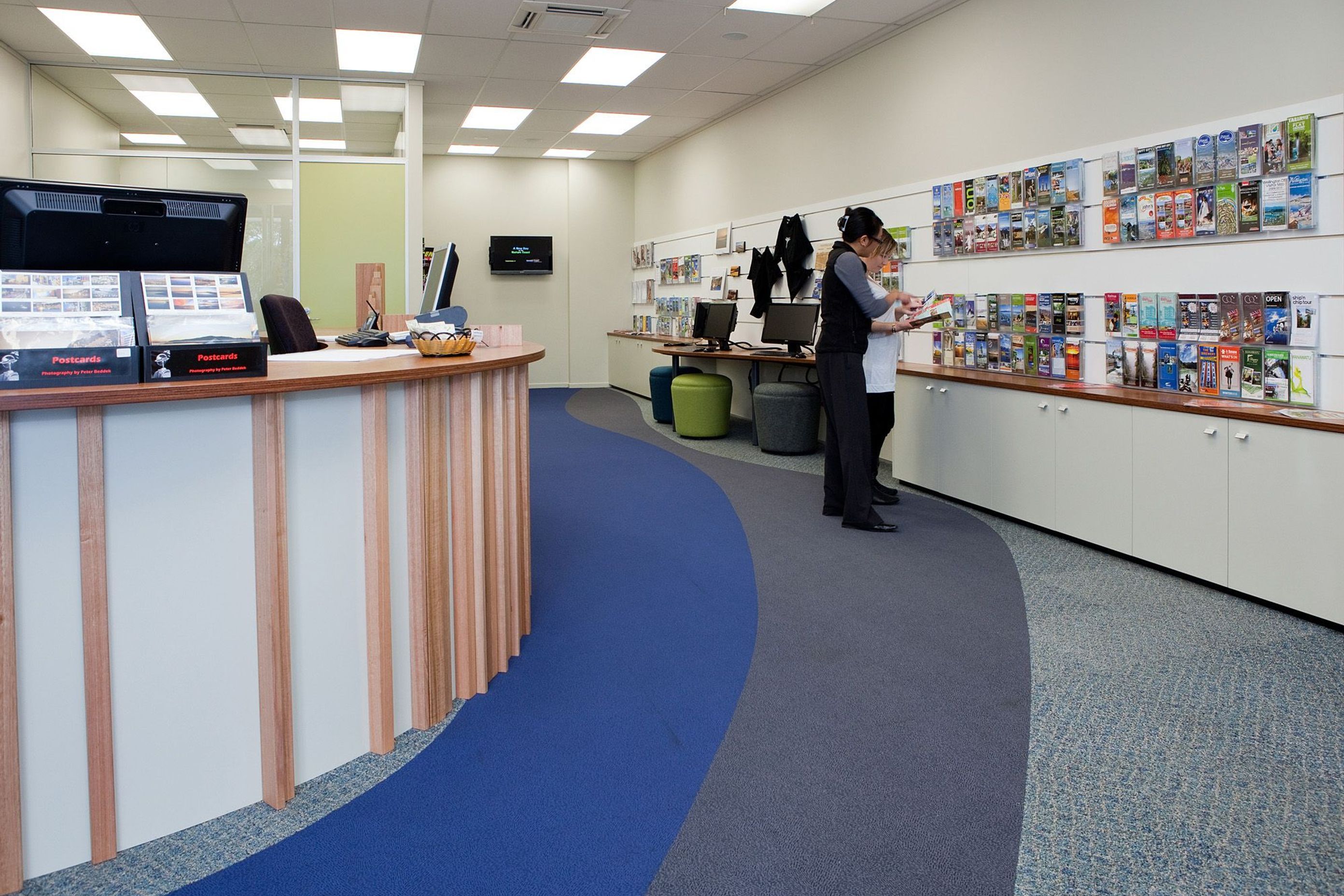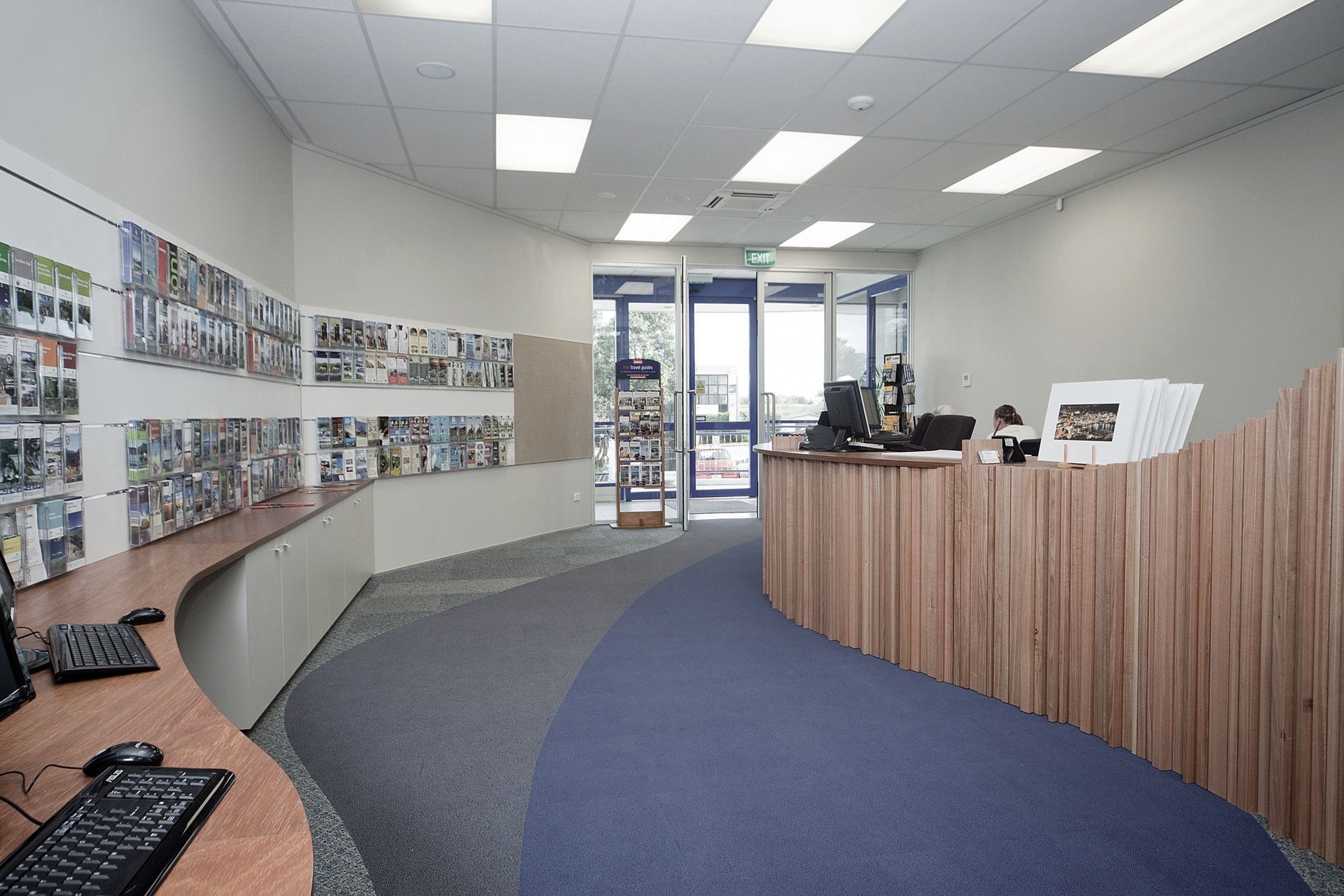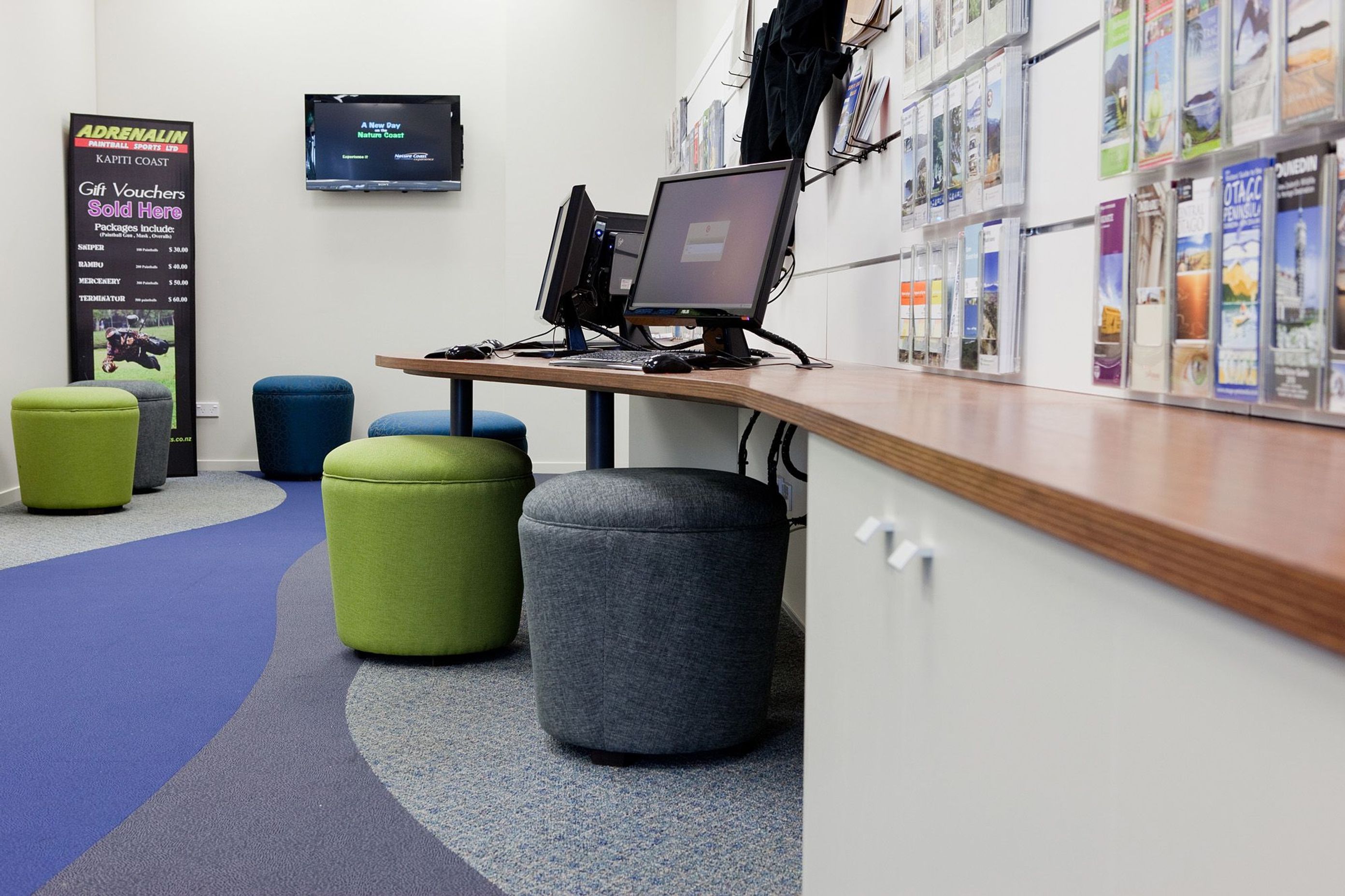 ArchiPro Project Summary - Innovative interior fitout for the Paraparaumu Visitors Centre, inspired by the natural beauty of the Kapiti Coast, featuring a river-themed design that enhances functionality and visitor experience while adhering to budgetary and timing constraints.