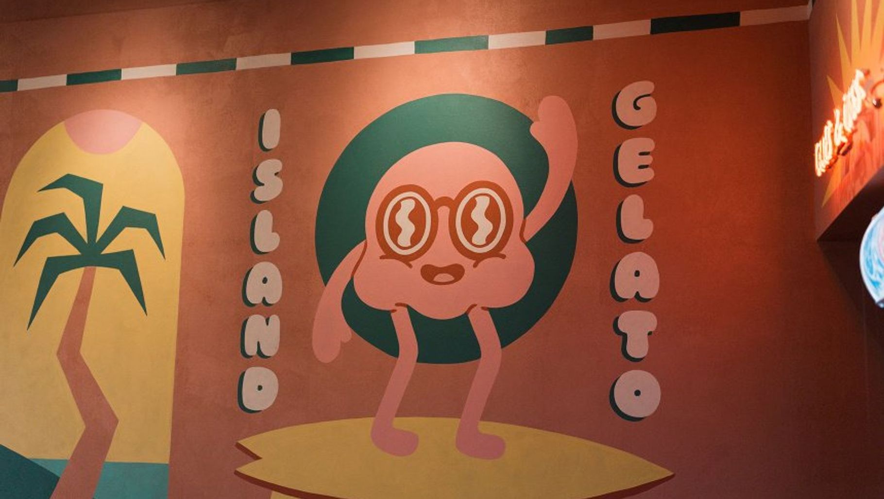 ArchiPro Project Summary - Island Gelato features modern art and graphic design in Mission Bay, creating a vibrant atmosphere for gelato lovers.