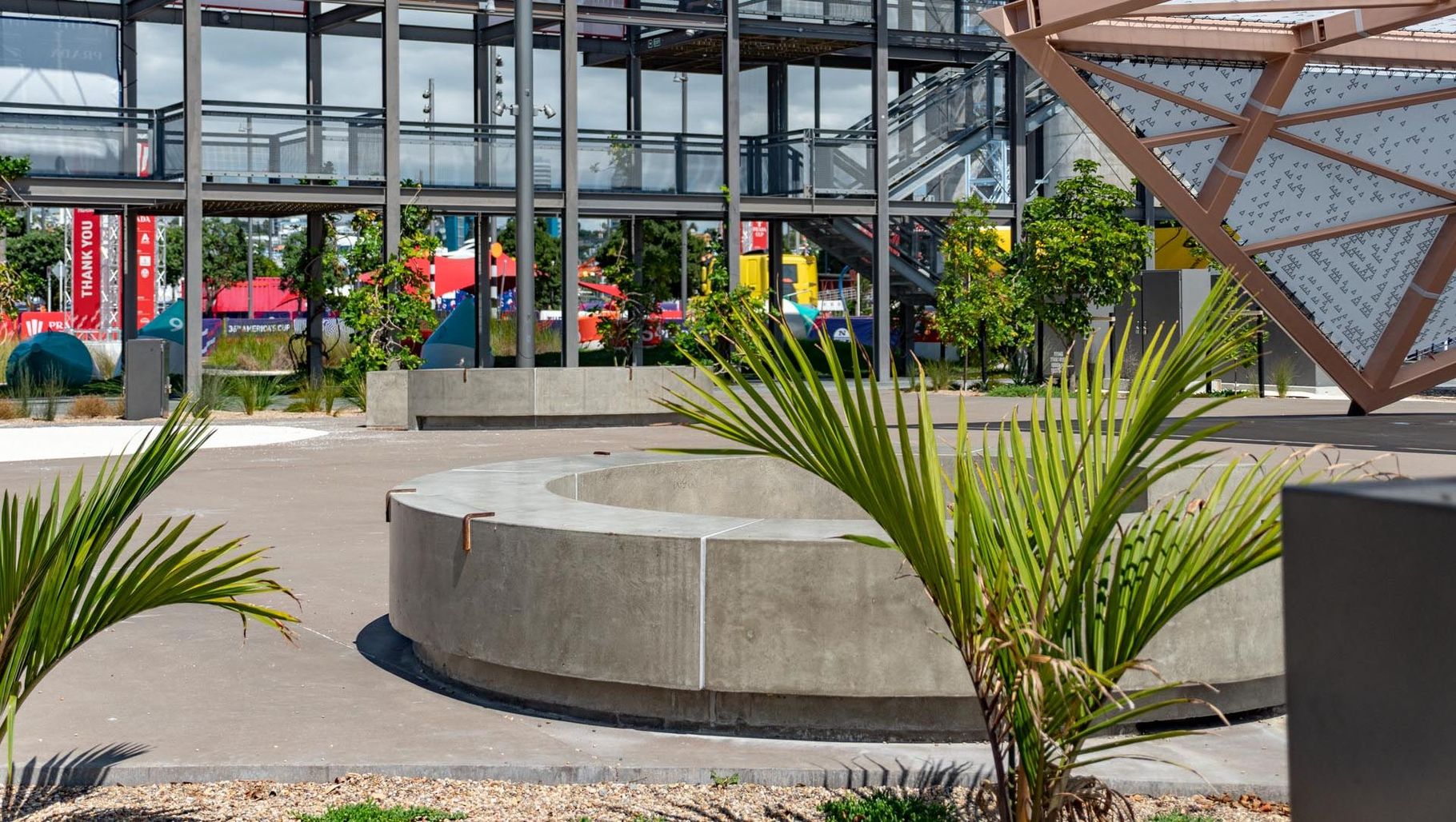 ArchiPro Project Summary - Jagas Paving's mixed-use seating area at Silo Park, Auckland, showcases high-quality construction in a bustling location during the America's Cup, captured through professional photography and video by Construction Photography NZ.