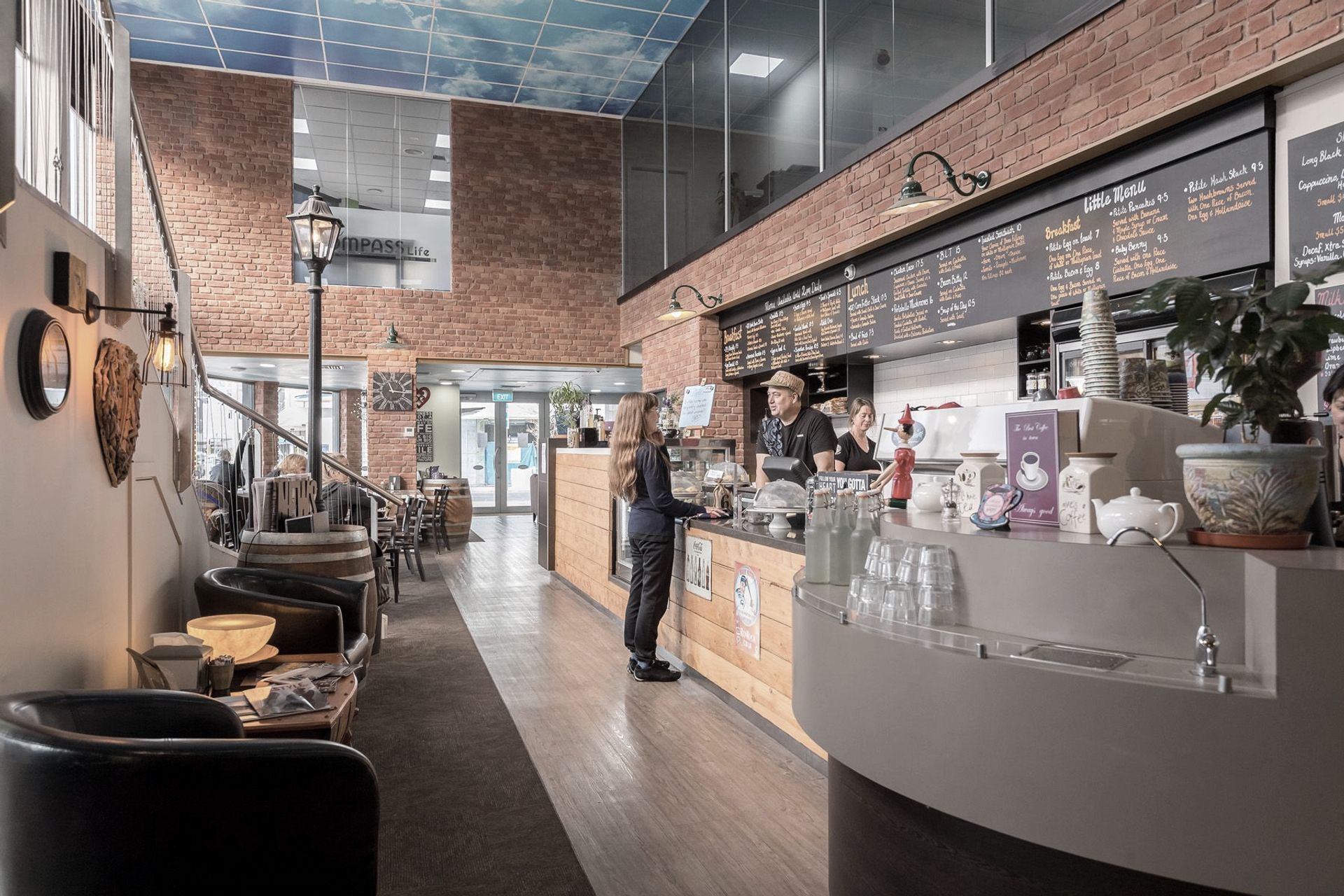 ArchiPro Project Summary - Java Point Cafe features a modern design with warm interiors, promoting relaxation and efficient service in a vibrant atmosphere.
