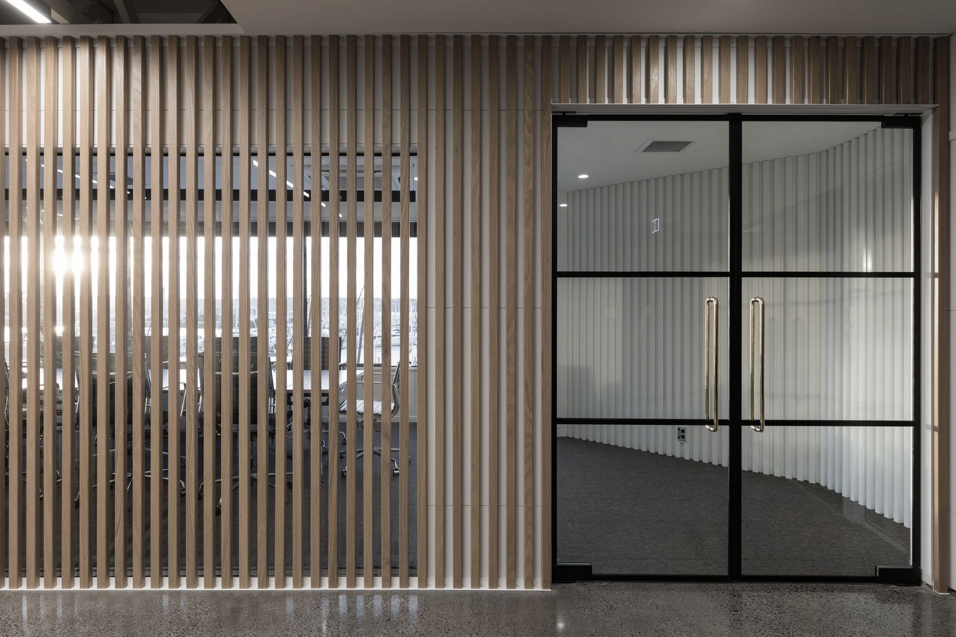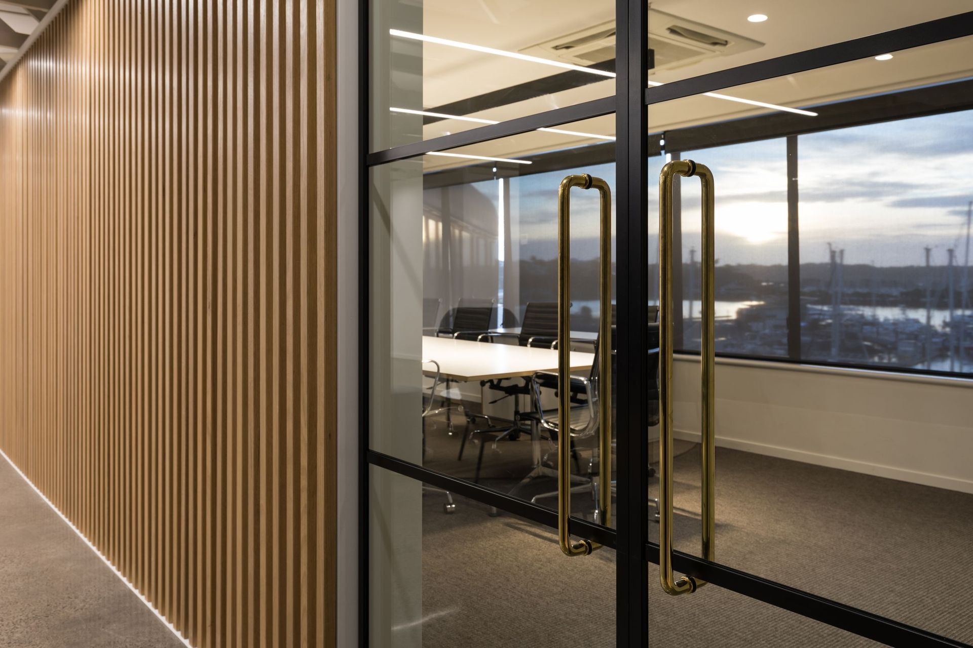 ArchiPro Project Summary - Elegant office fit-out for JC Decaux featuring Halliday & Baillie HB2240 polished brass pull handles for a sophisticated touch.