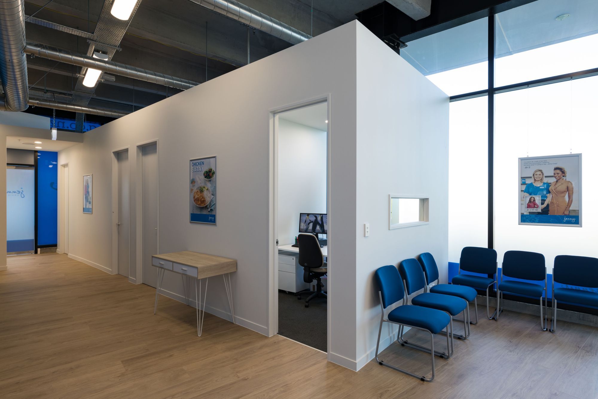 ArchiPro Project Summary - Ground-floor fitout of Jenny Craig weight loss centre in Albany, featuring a contemporary design with exposed services, consultation rooms, and a large food room, completed in eight weeks under a streamlined management process.