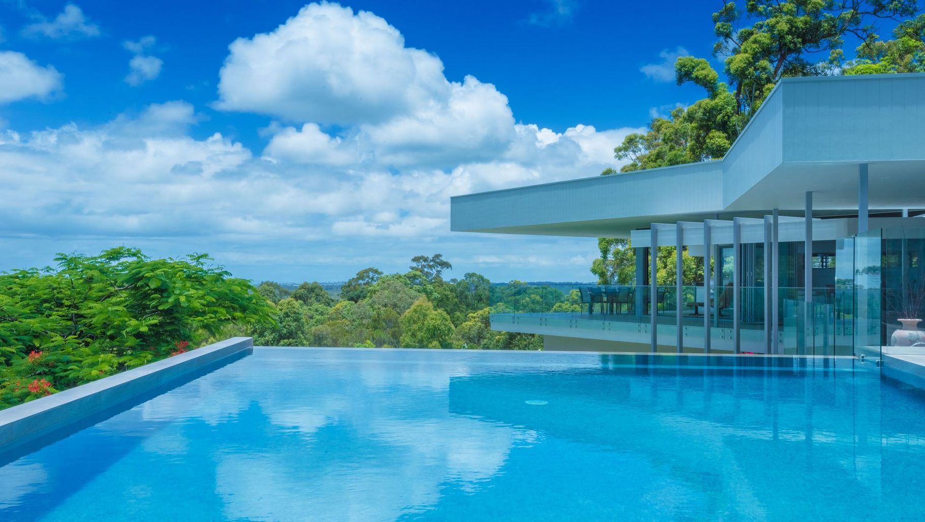ArchiPro Project Summary - A modern cantilevered residence on Buderim Mountain, completed in 2015, featuring panoramic ocean views, seamless indoor-outdoor living, and sustainable design elements that harmonize with the natural landscape.