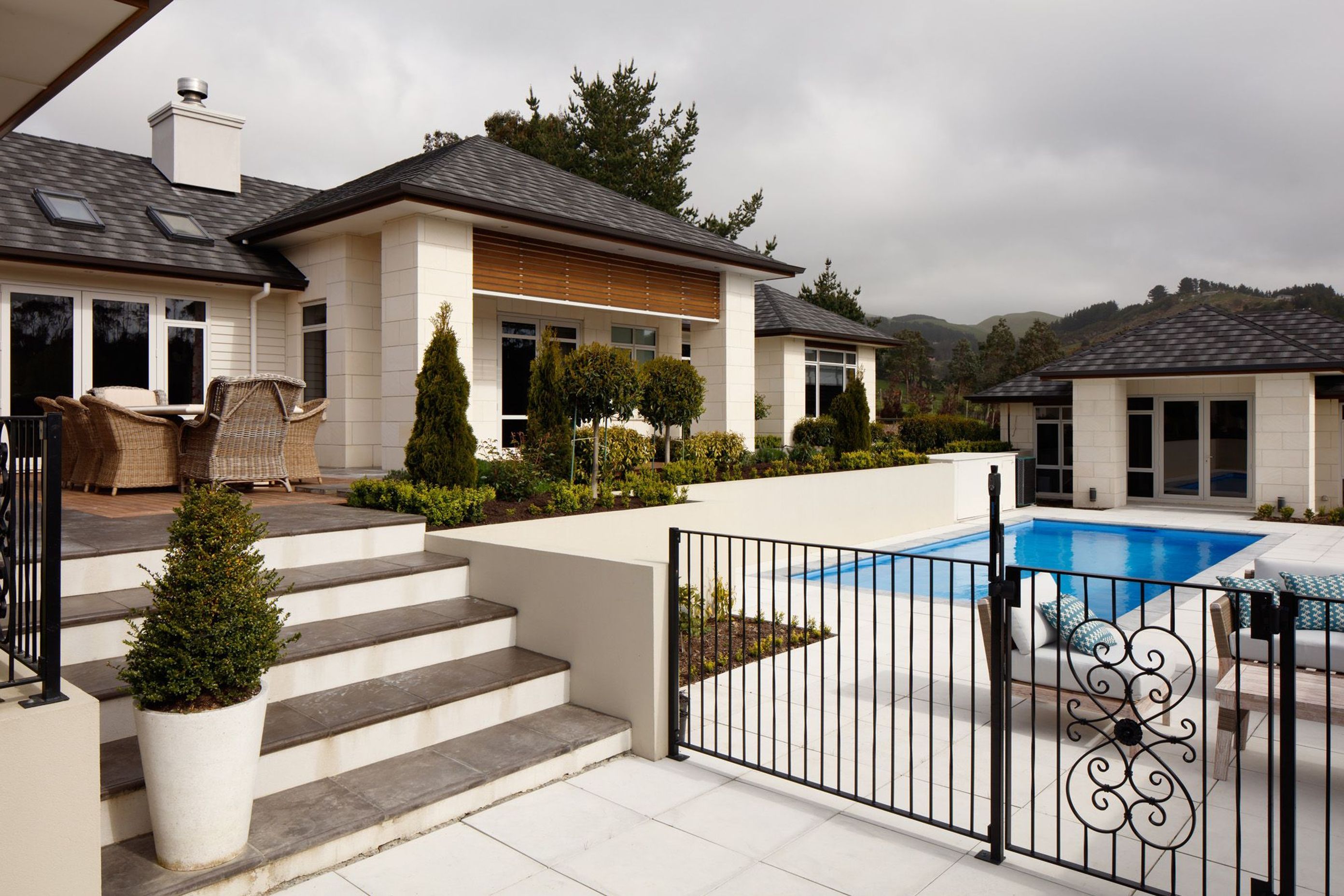 ArchiPro Project Summary - A thoughtfully designed family home in Judgeford, Porirua, featuring a pavilion-style layout, integrated courtyards, and a harmonious blend of natural materials, set within a stunning 4.5-acre landscape.