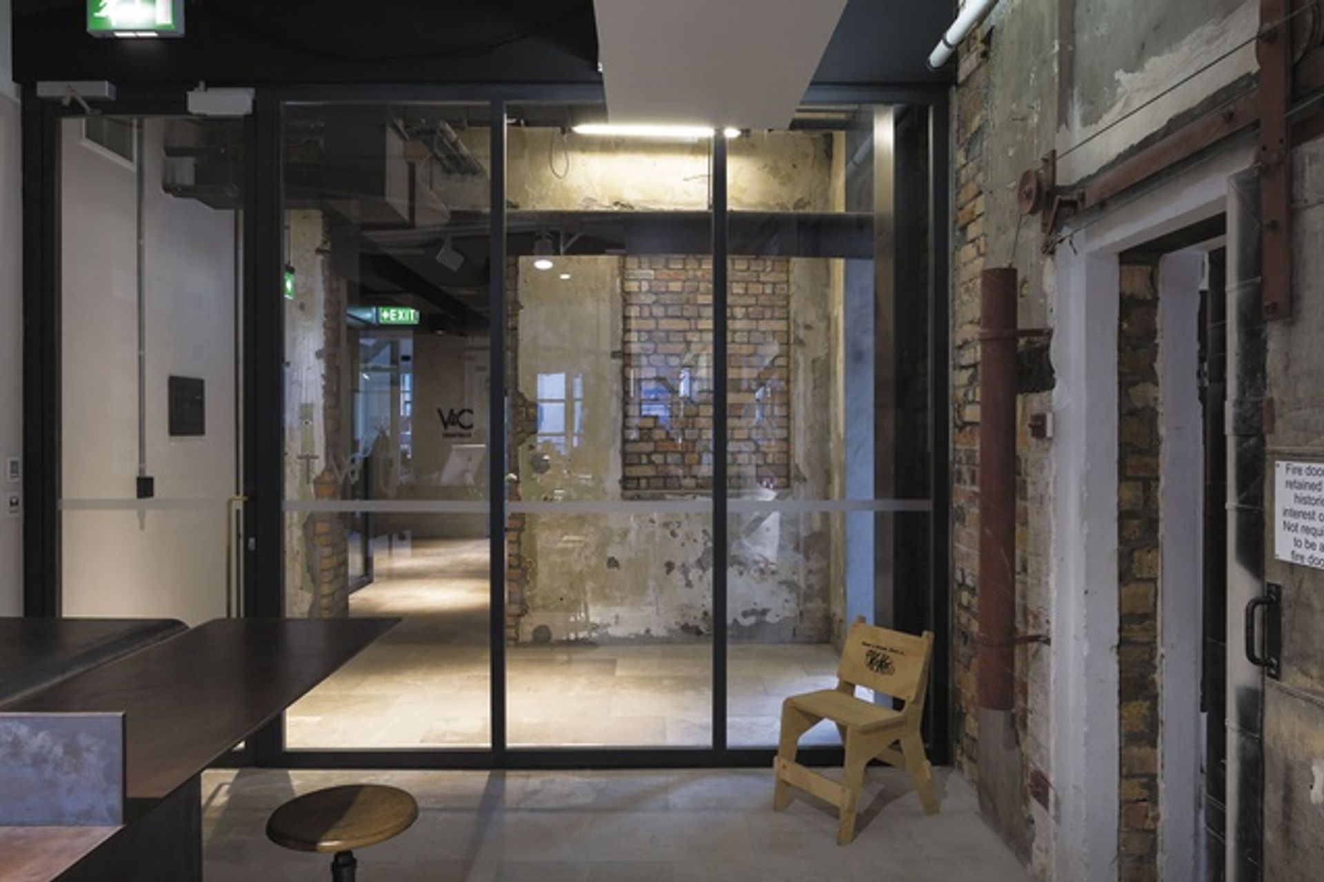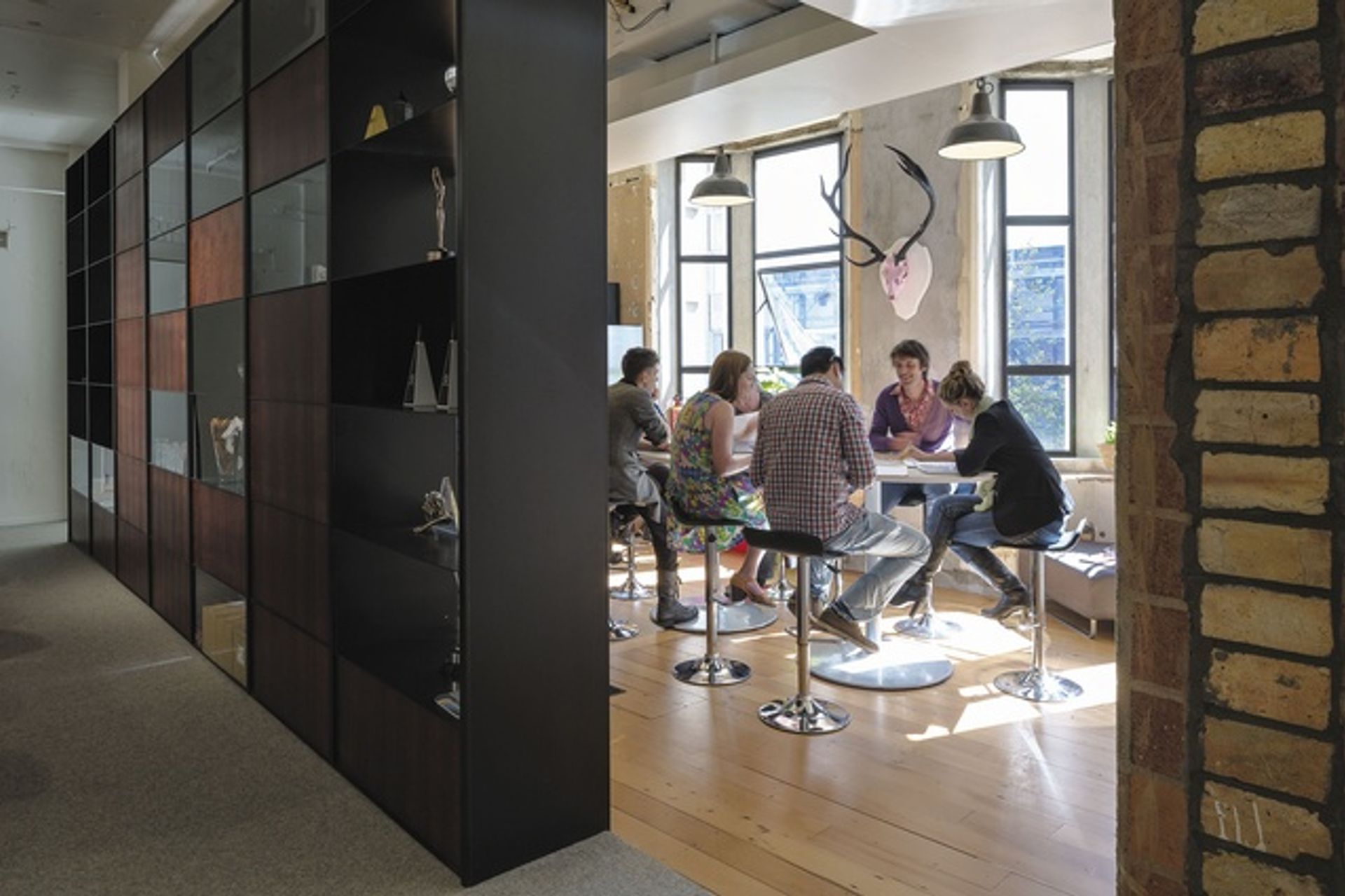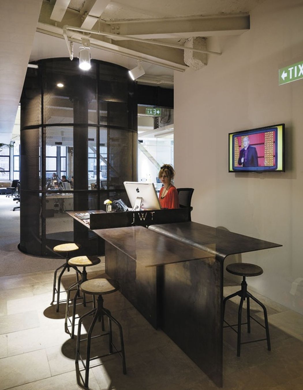 ArchiPro Project Summary - A harmonious blend of historic and contemporary design, the JWT fitout features an open plan layout with flexible collaboration zones, custom iron reception, and vibrant graphics, creating an industrial yet inviting workspace.