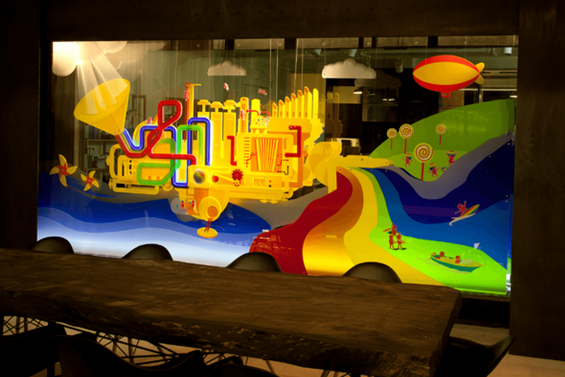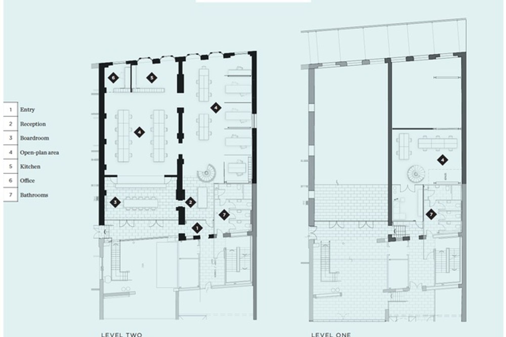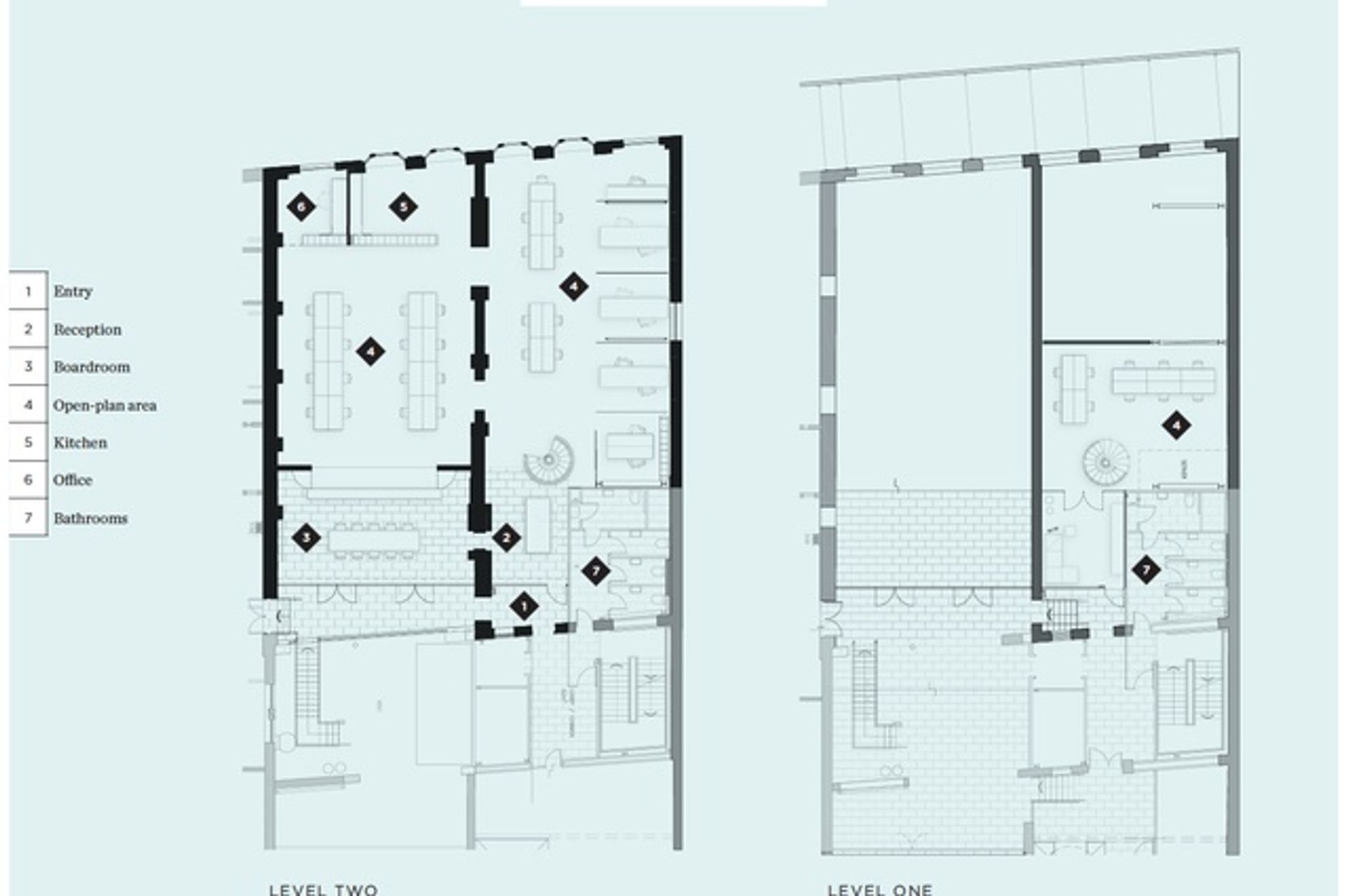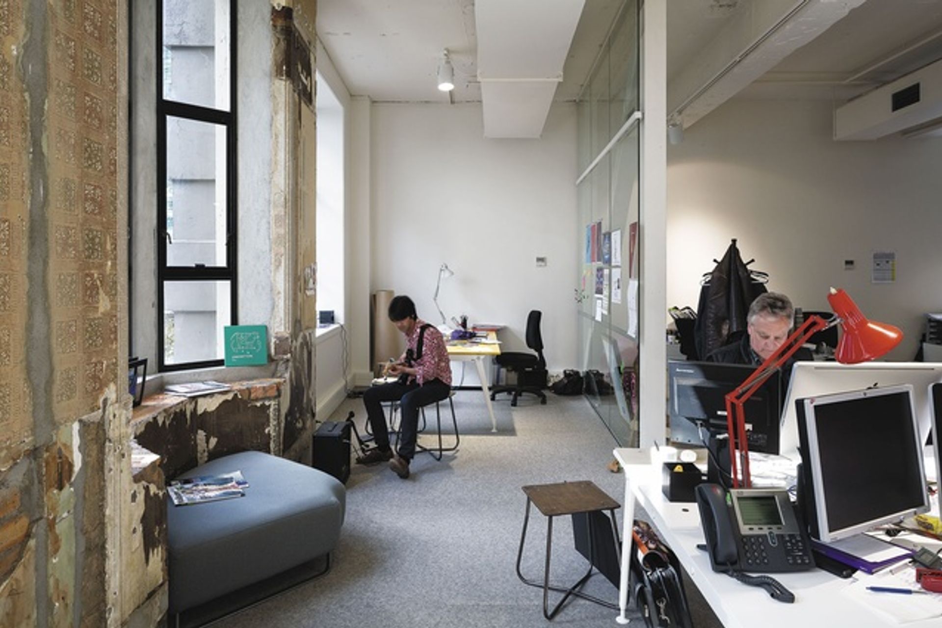 ArchiPro Project Summary - A harmonious blend of historic and contemporary design, the JWT fitout features an open plan layout with flexible collaboration zones, custom iron reception, and vibrant graphics, creating an industrial yet inviting workspace.
