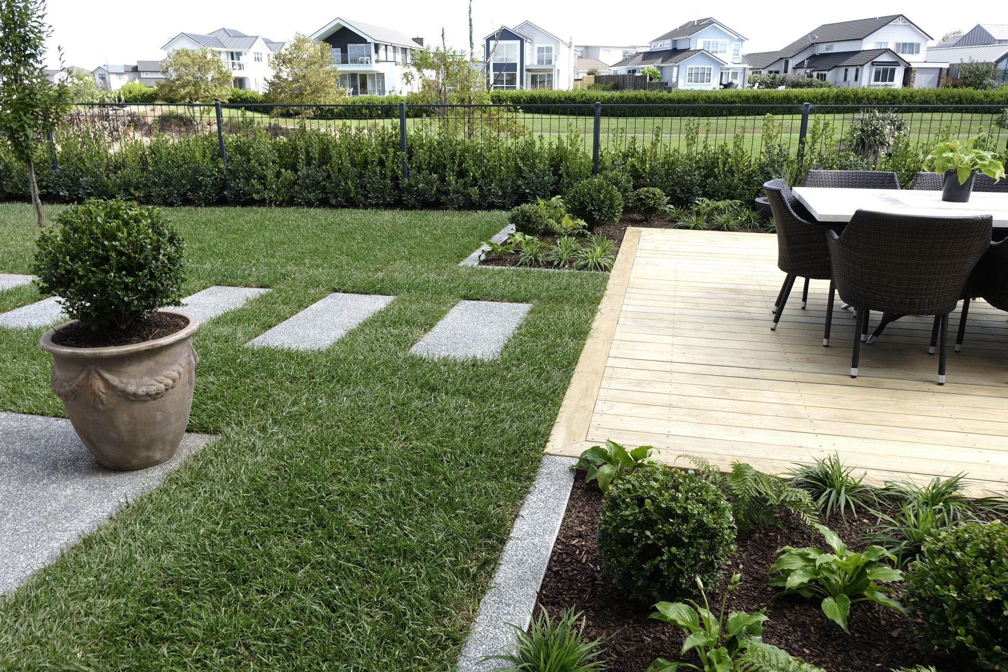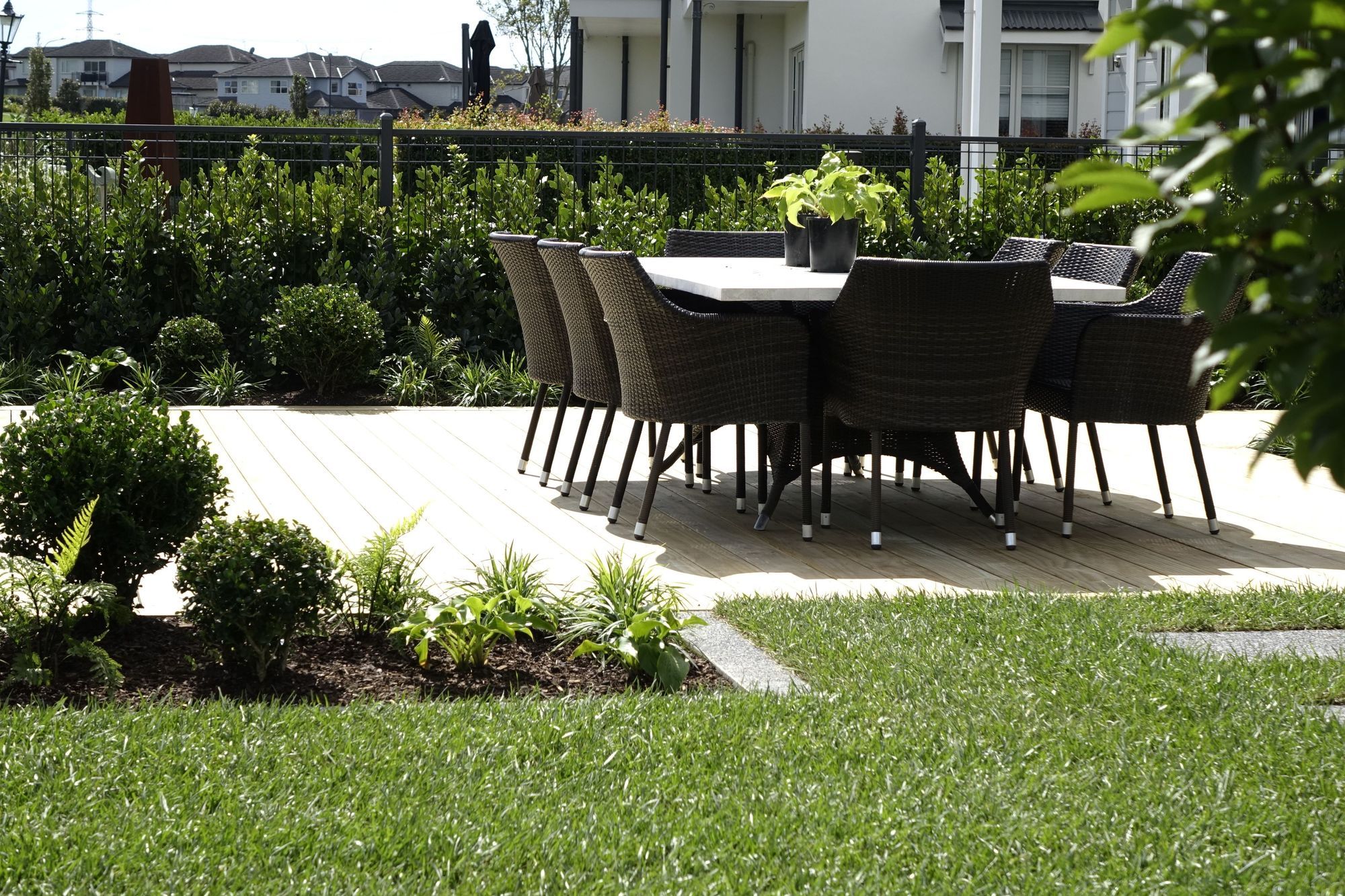 ArchiPro Project Summary - A sophisticated transformation of a backyard in Karaka, Auckland, featuring a European outdoor design that harmonizes with the home's architecture and landscape, creating an elegant and intimate setting praised by the client and neighbors.