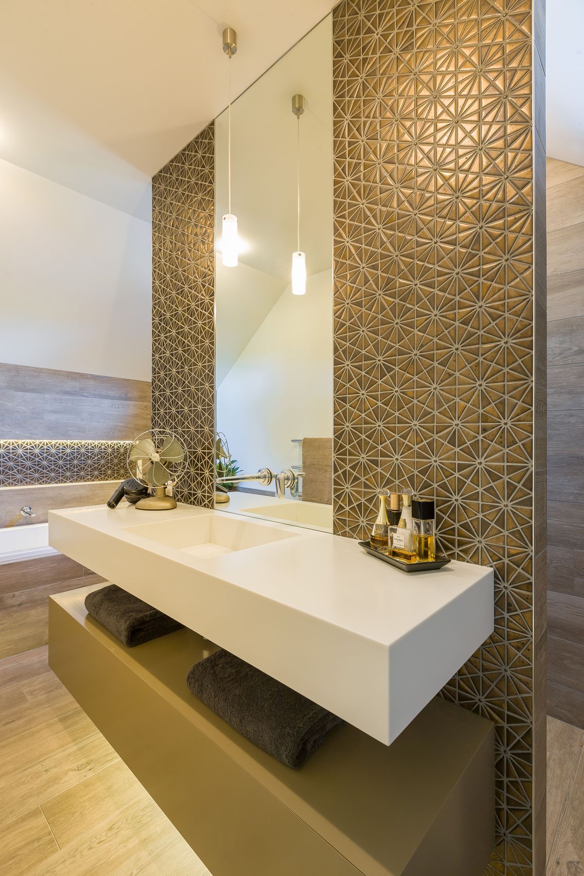 ArchiPro Project Summary - Award-winning guest bathroom designed by Celia Visser, featuring a stunning use of color, texture, and materials, recognized for its innovative built-in bathtub and exceptional design in a competitive field.
