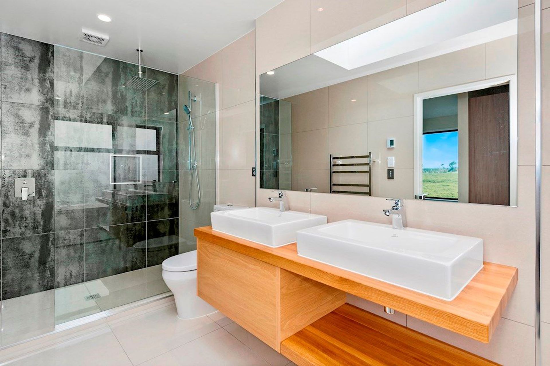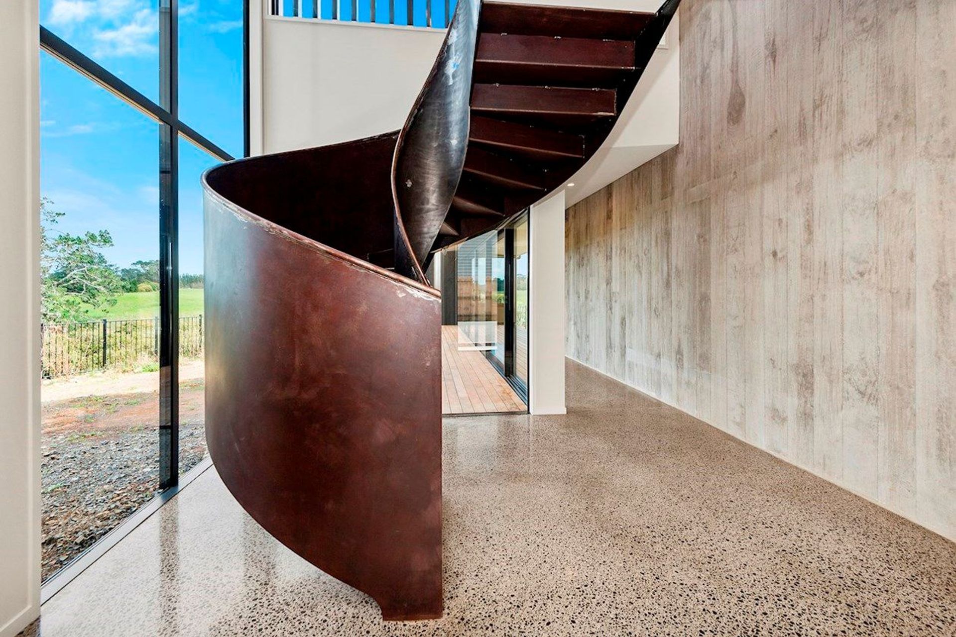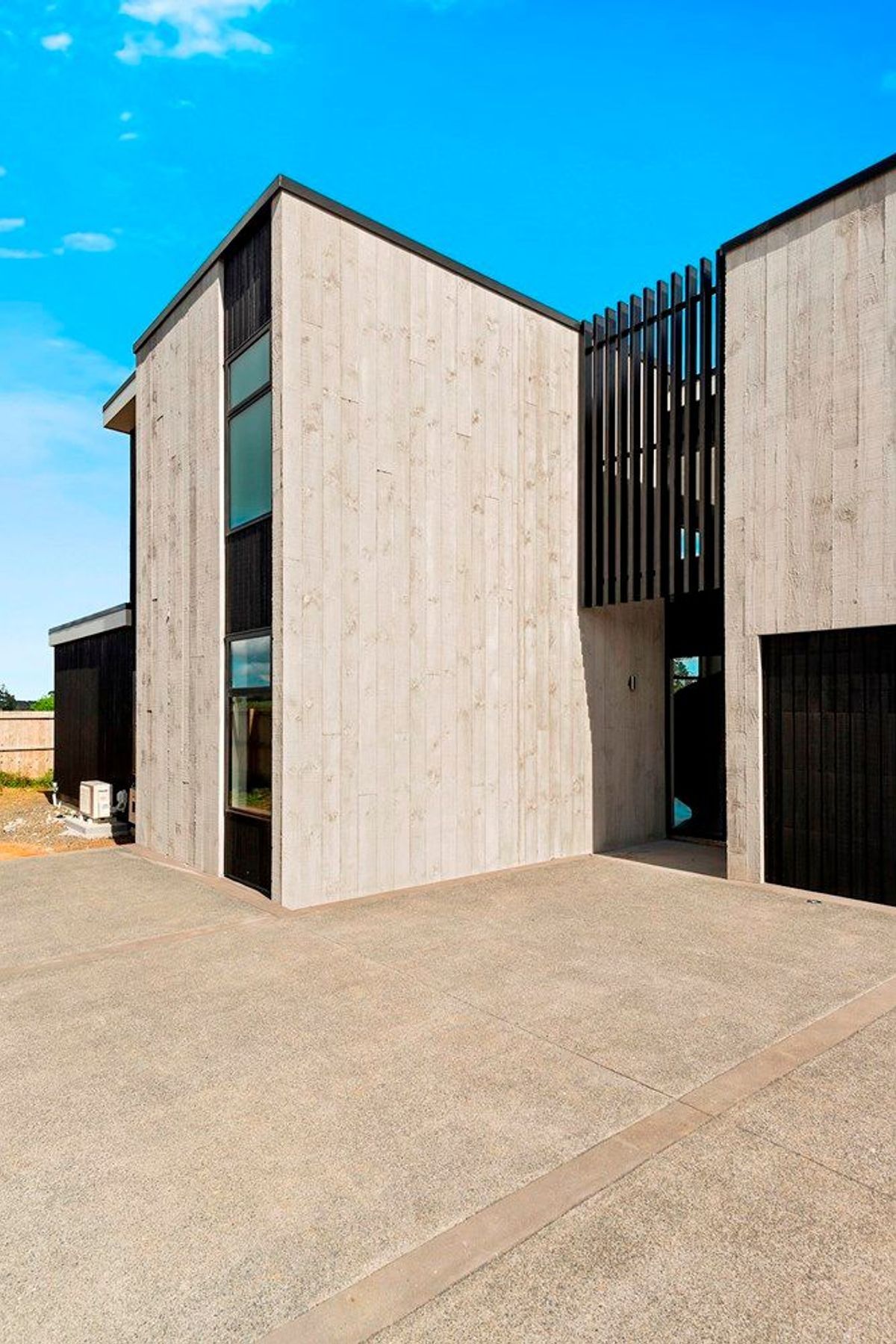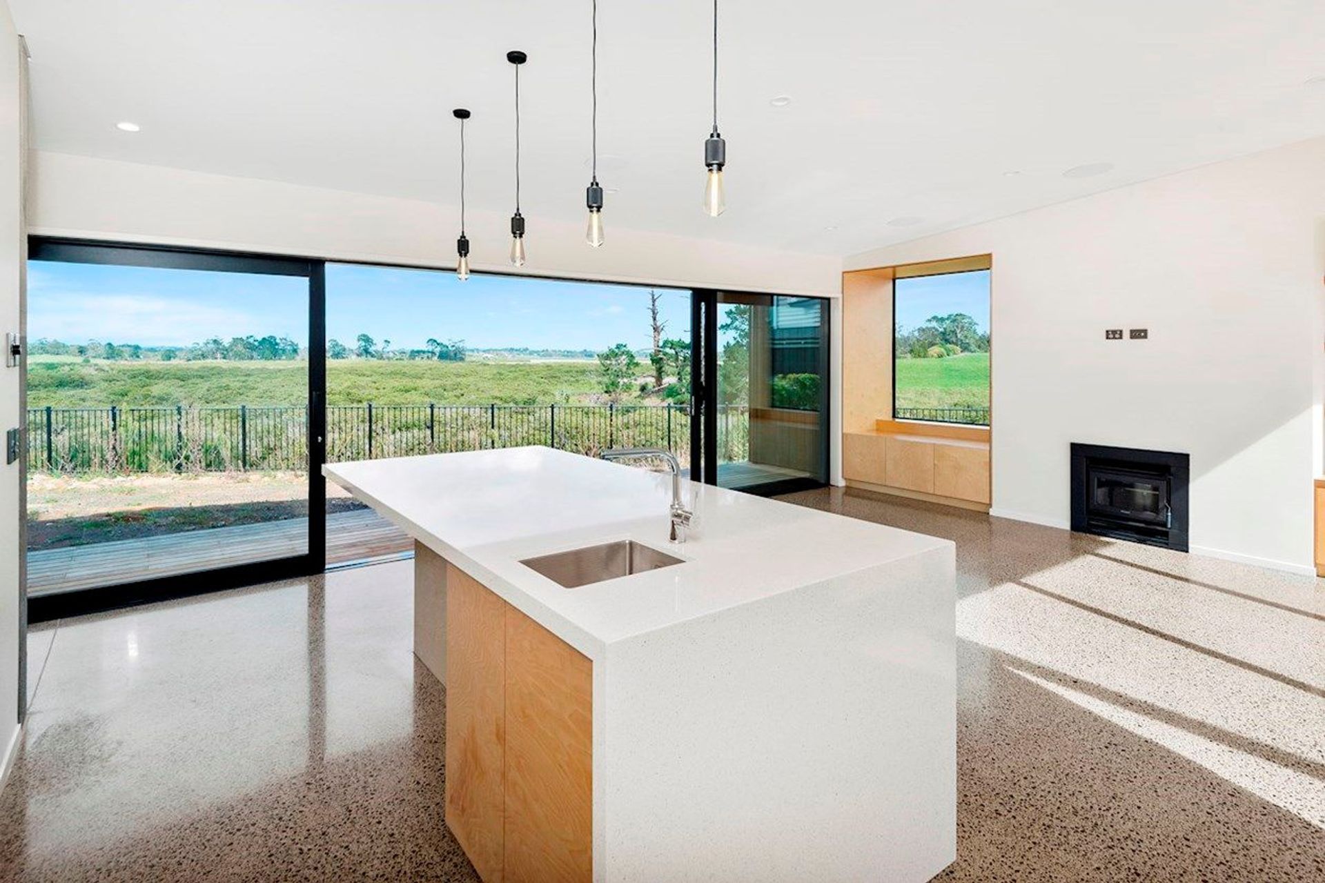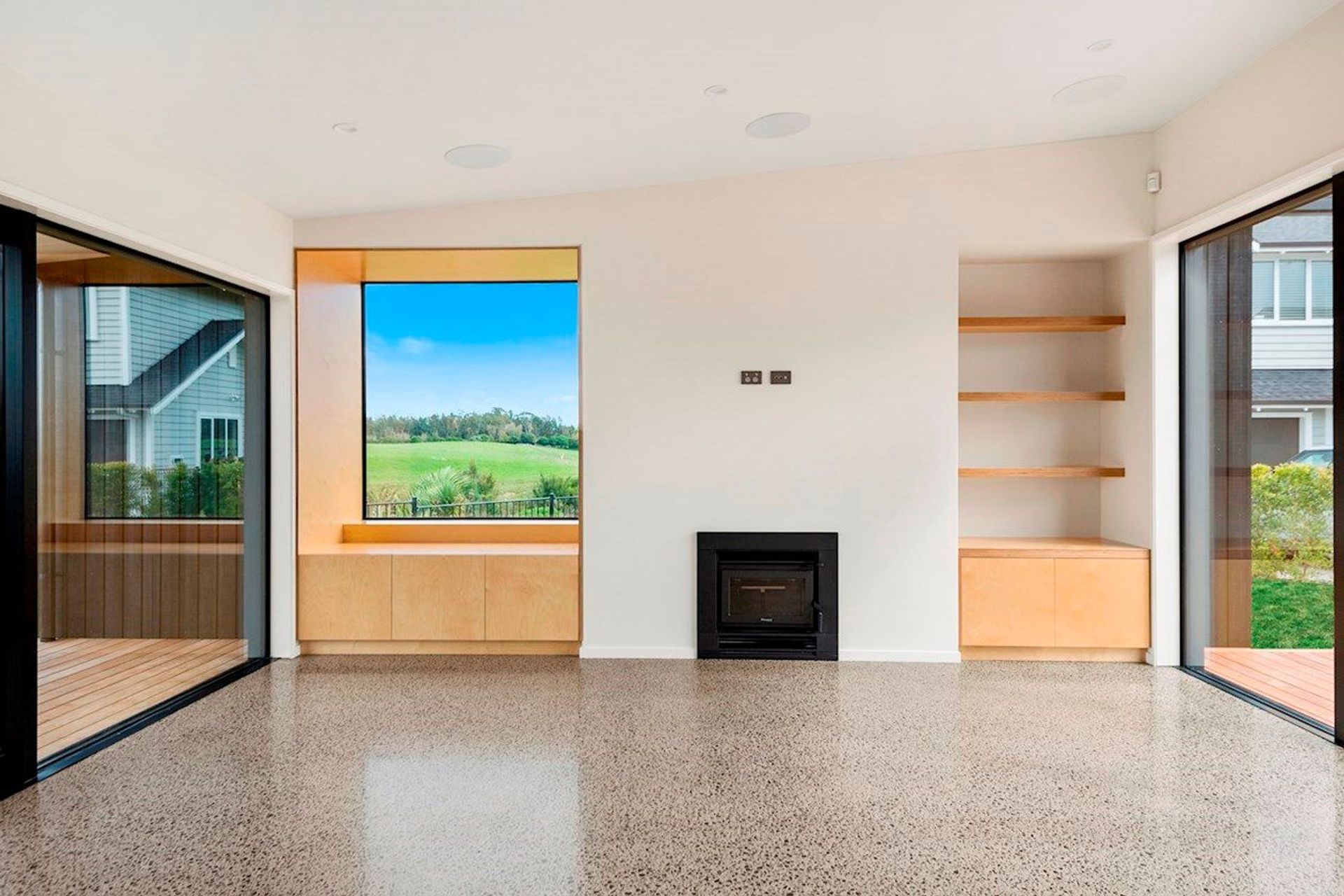 ArchiPro Project Summary - A stunning five-bedroom, three-bathroom family home in Karaka Lakes, Auckland, featuring polished concrete, a floating timber staircase, and expansive glass elements that create a seamless connection with the outdoors.
